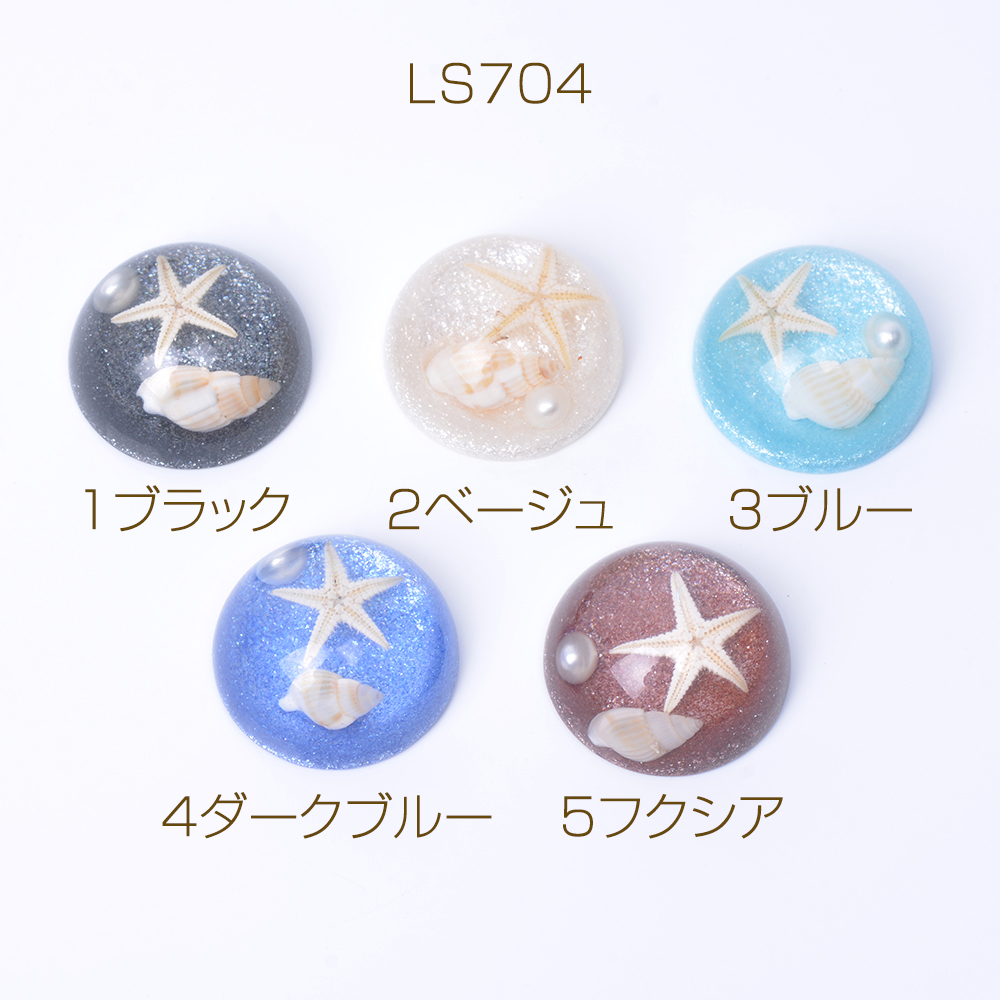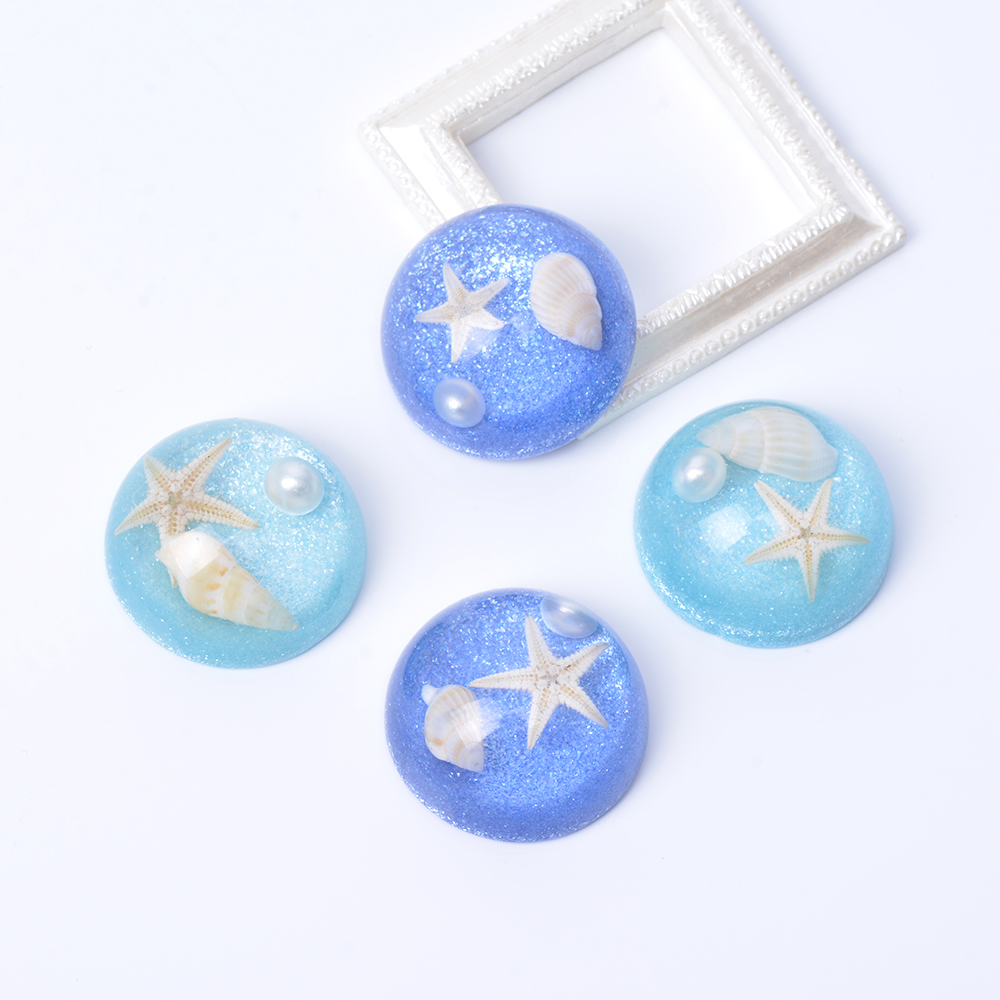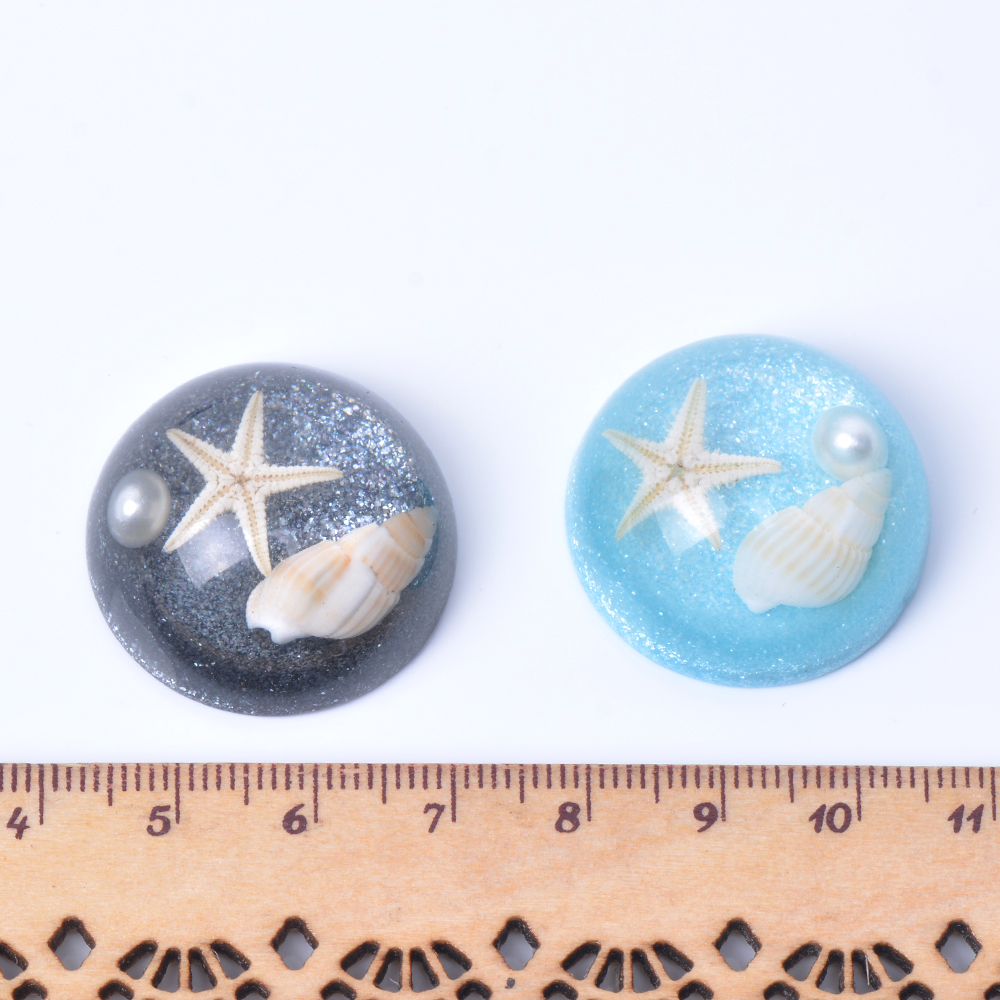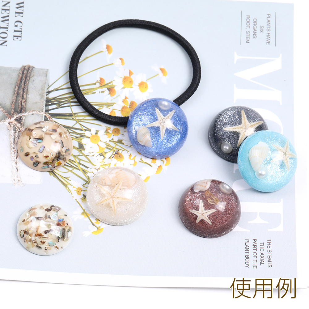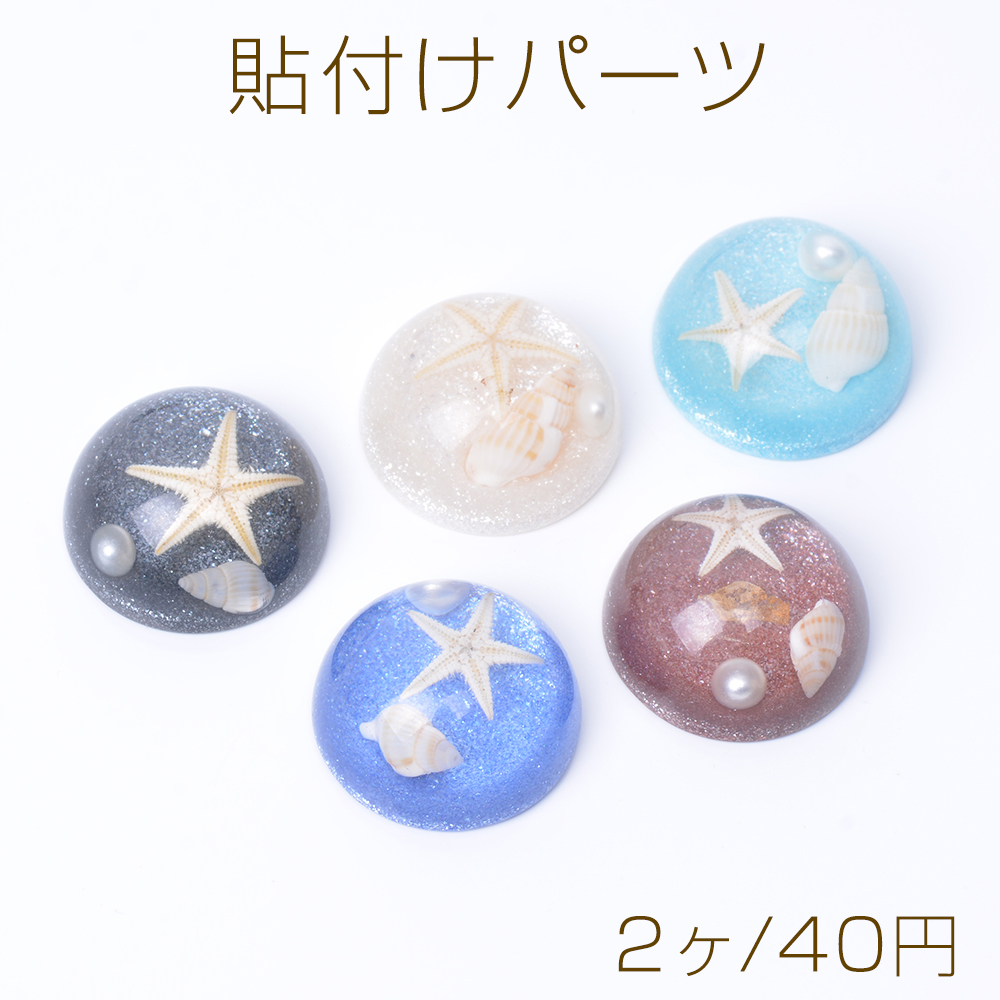 貼付けパーツ 樹脂貼付けパーツ 樹脂カボション 貝殻とヒトデ入り 半円 28mm(2ヶ)