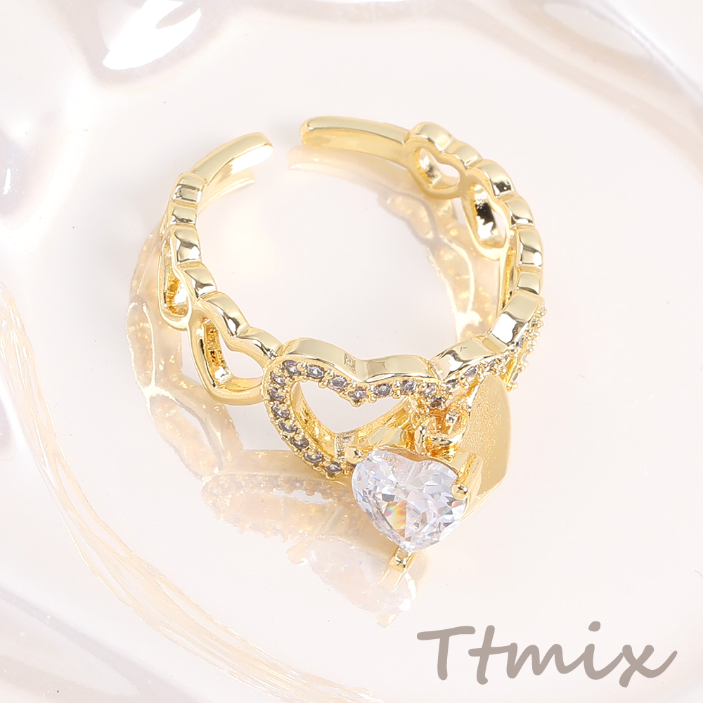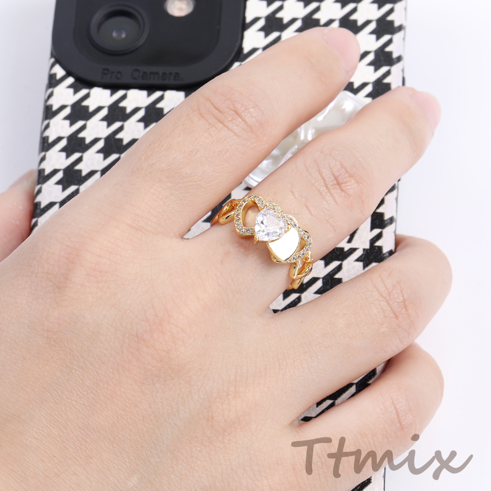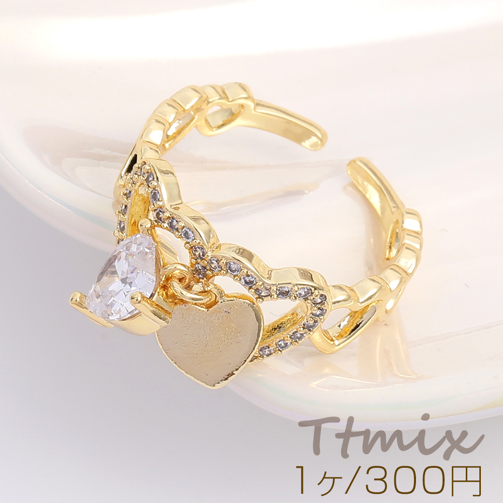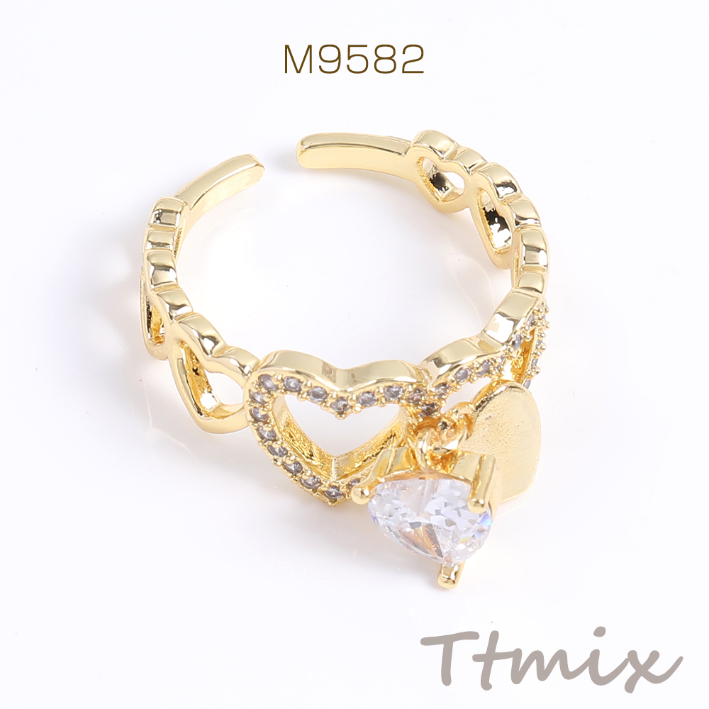 高品質デザインリング 指輪 ジルコニアリング 幅約9mm ゴールド(1ヶ)