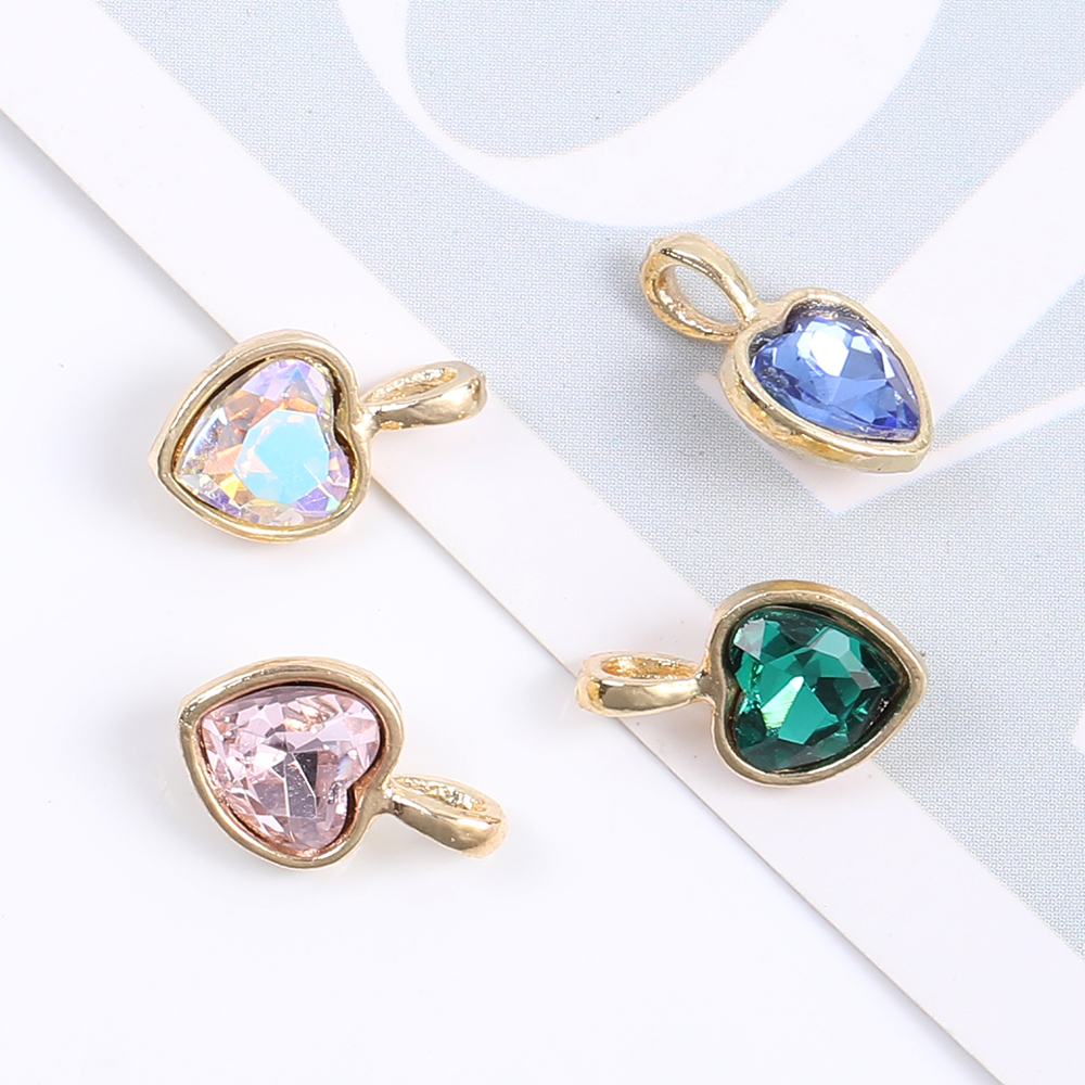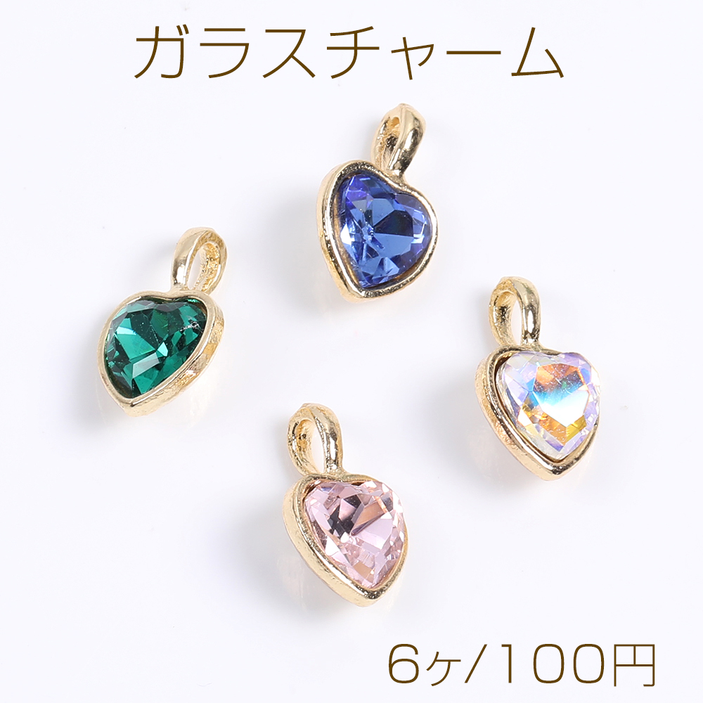ガラスチャーム ハート型 12×8mm ゴールド(6ヶ)