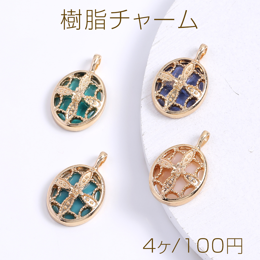 樹脂チャーム 透かしチャーム オーバル 12×20mm ゴールド(4ヶ)