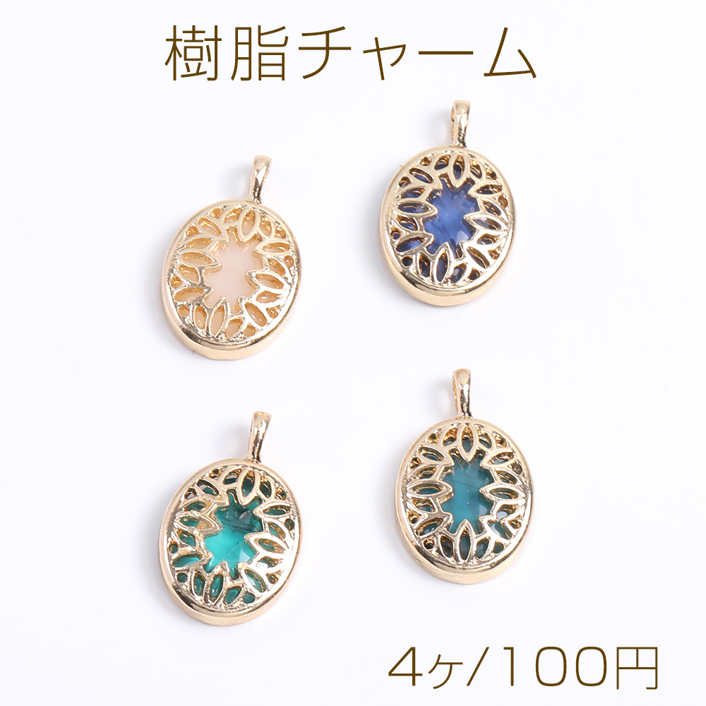 樹脂チャーム 透かしチャーム オーバル 12×20mm ゴールド(4ヶ)