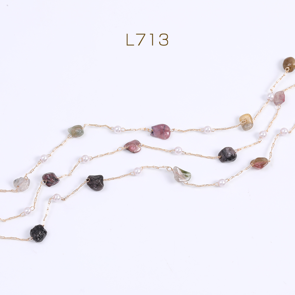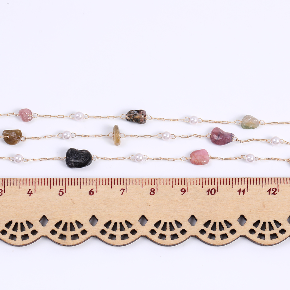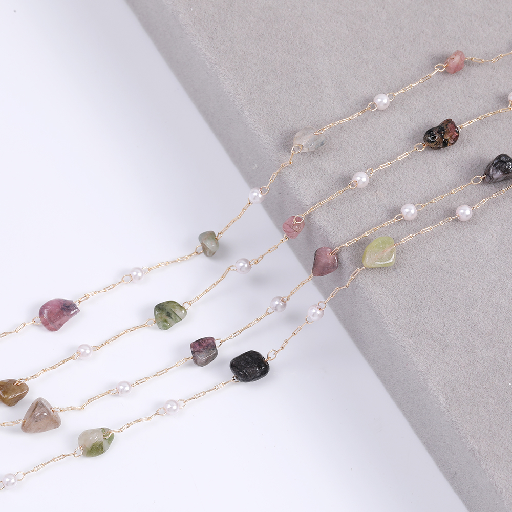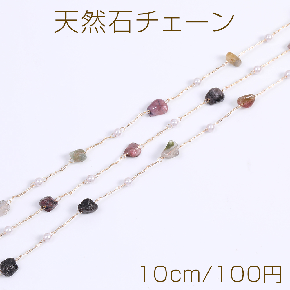 高品質天然石チェーン トルマリン パール付き ハンドメードチェーン ゴールド(10cm)