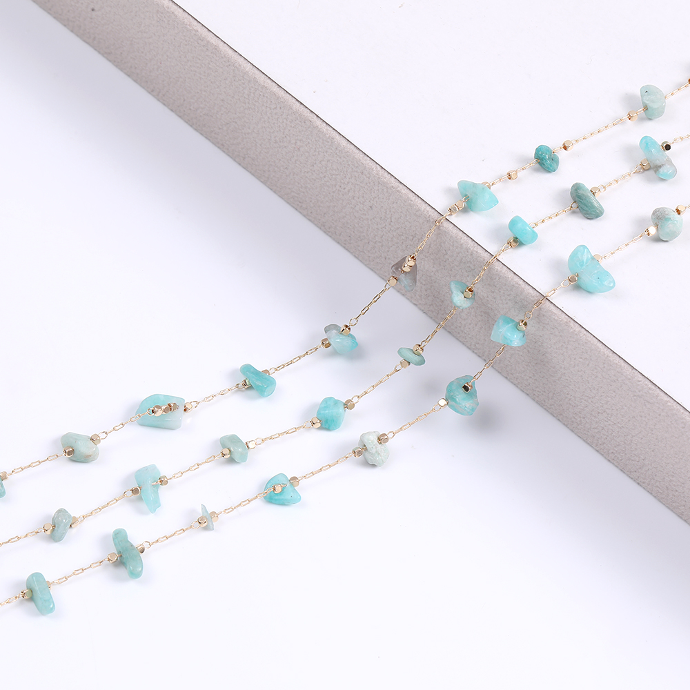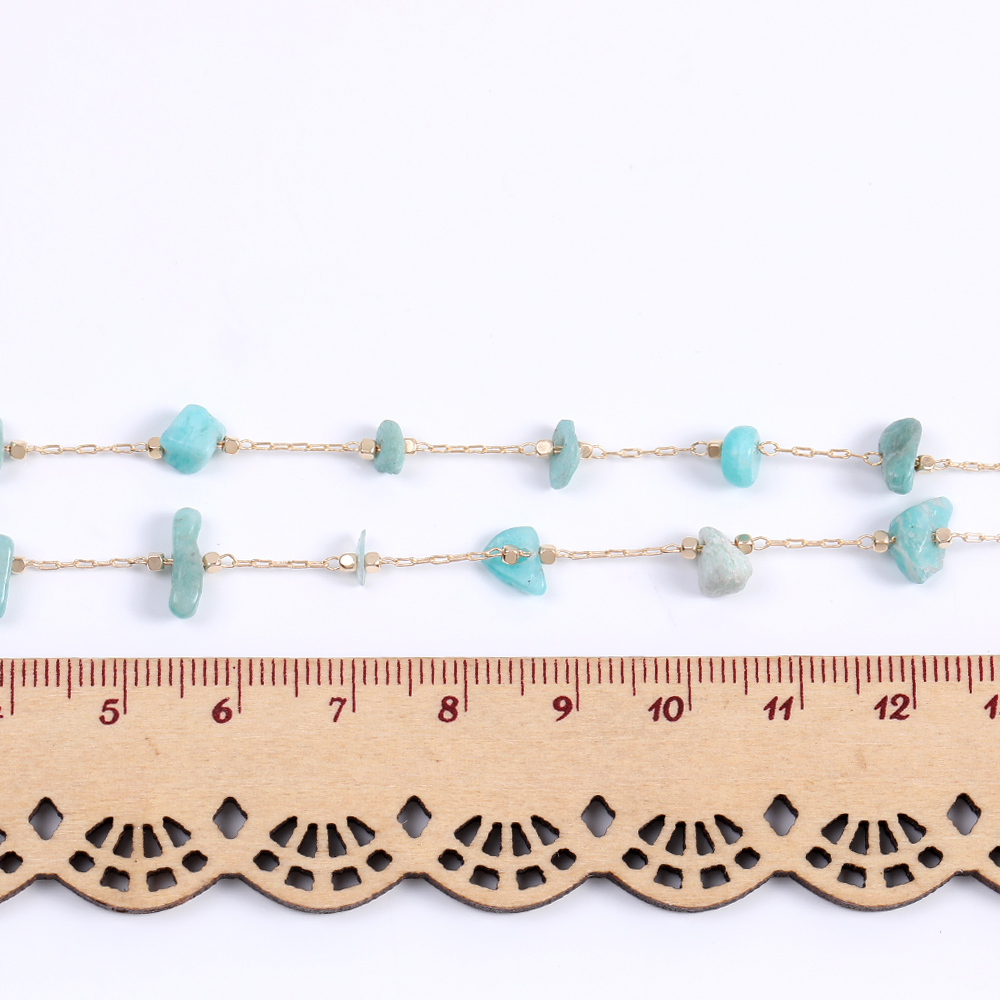 高品質天然石チェーン アマゾナイト ハンドメードチェーン ゴールド(10cm)