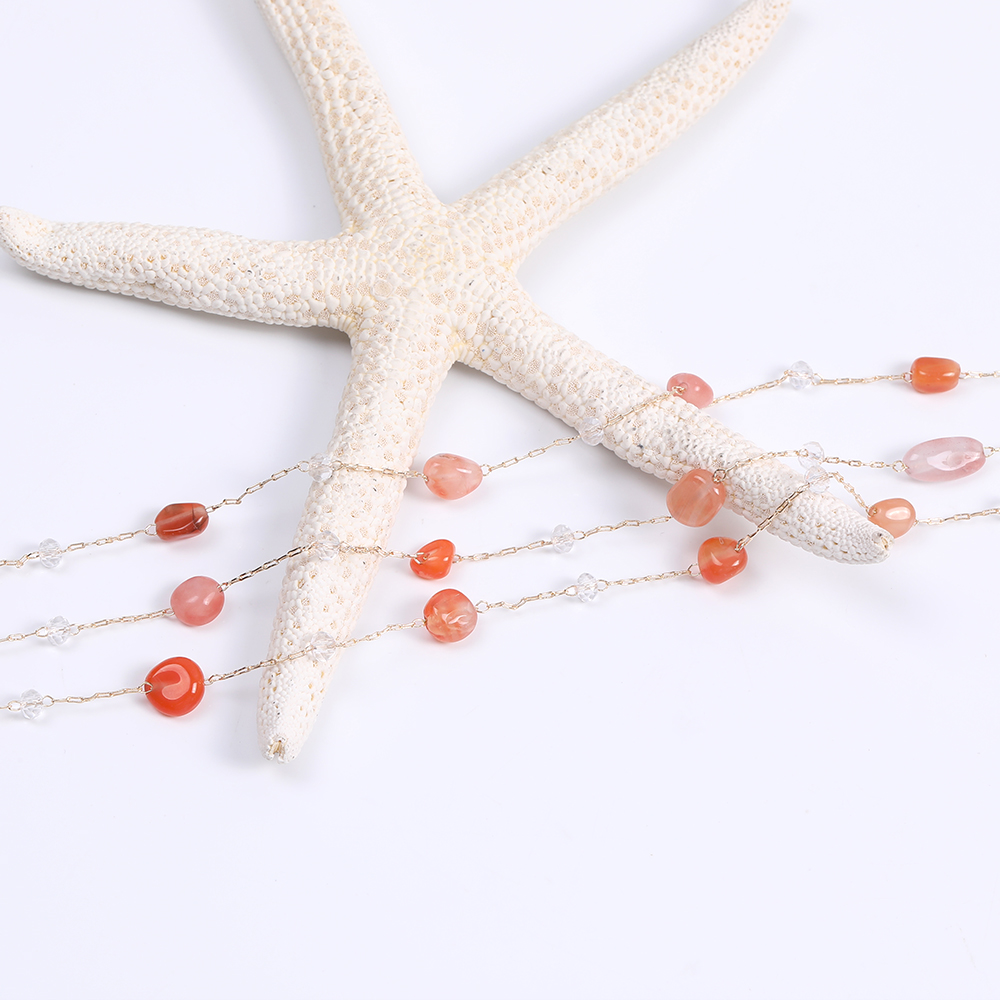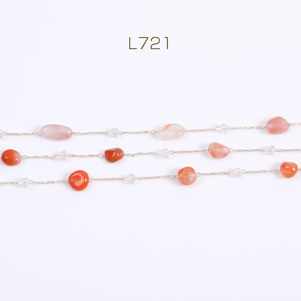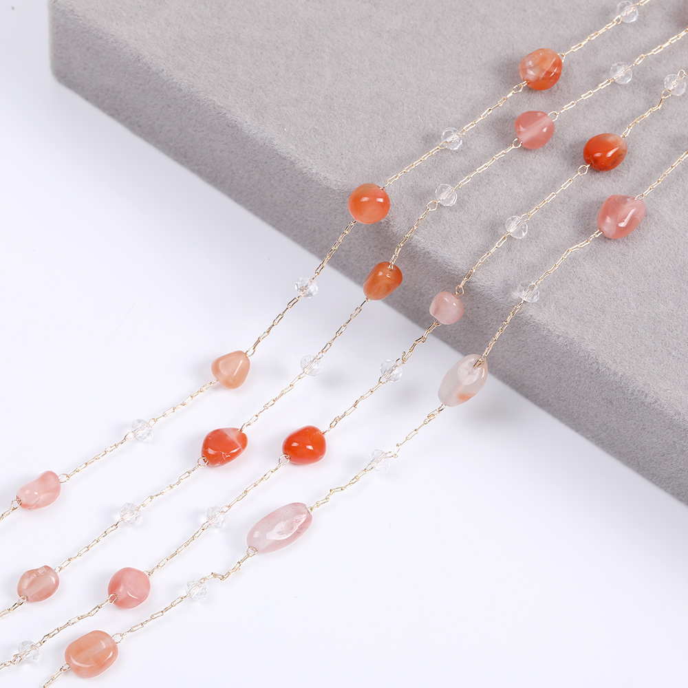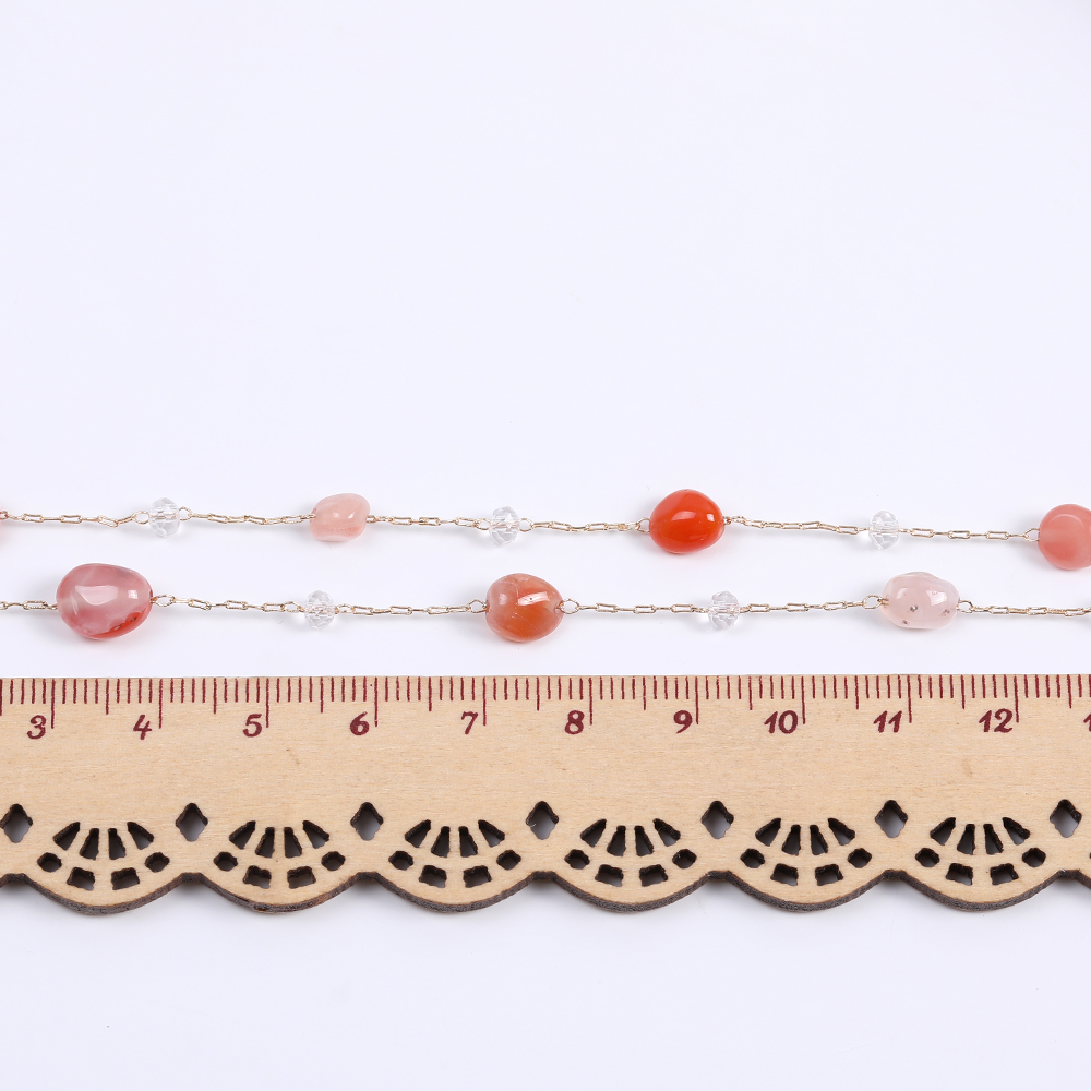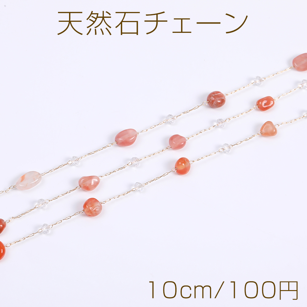 高品質天然石チェーン レッドアベンチュリン ガラスビーズ付き ハンドメードチェーン ゴールド(10cm)