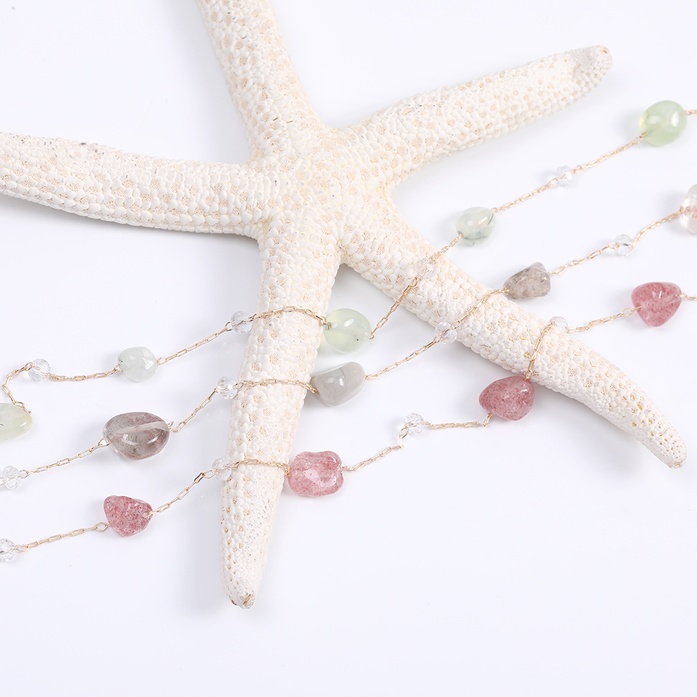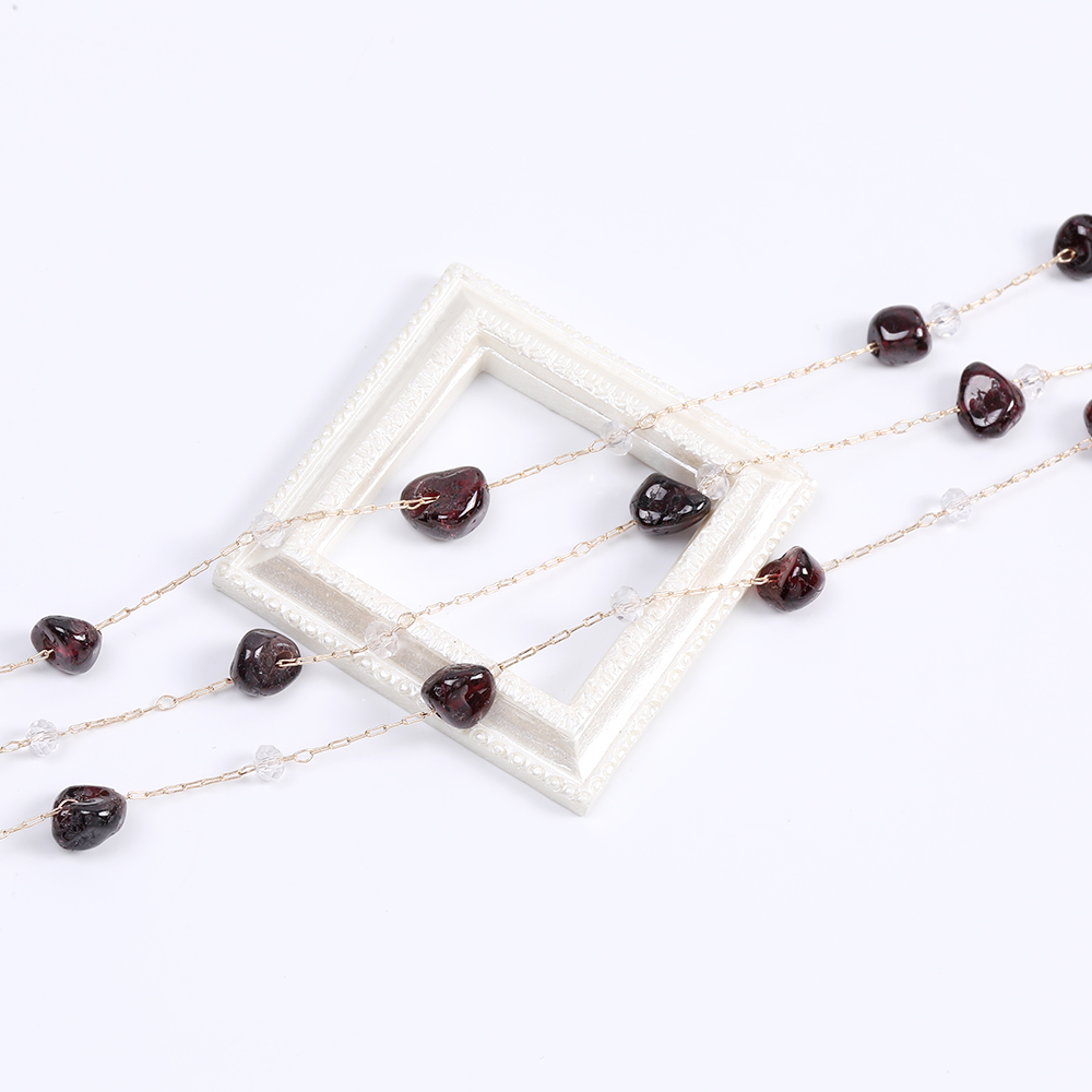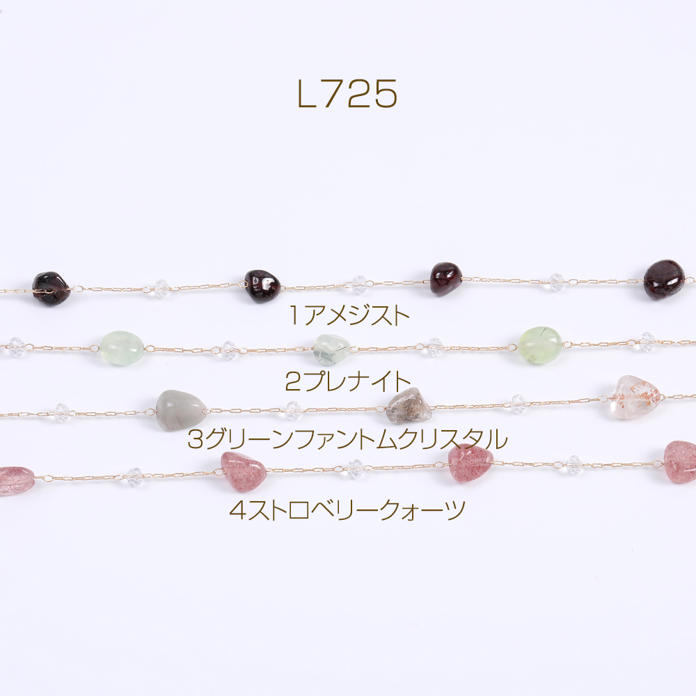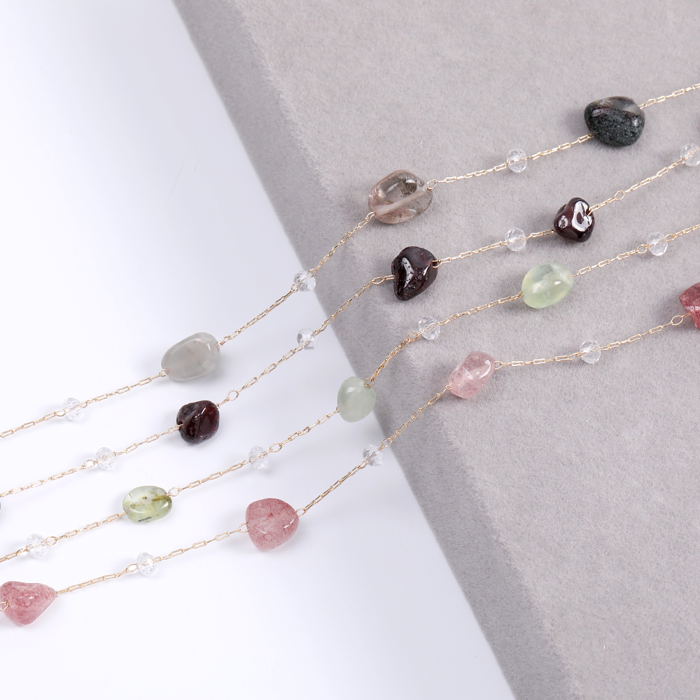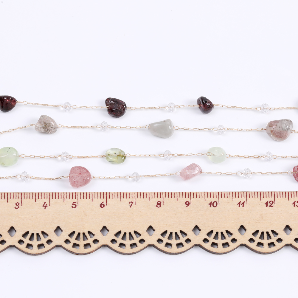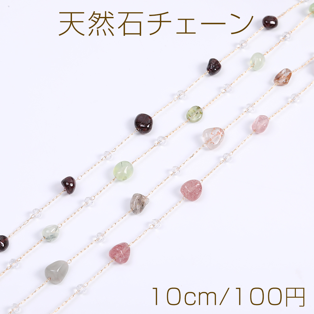 高品質天然石チェーン ガラスビーズ付き ハンドメードチェーン ゴールド(10cm)