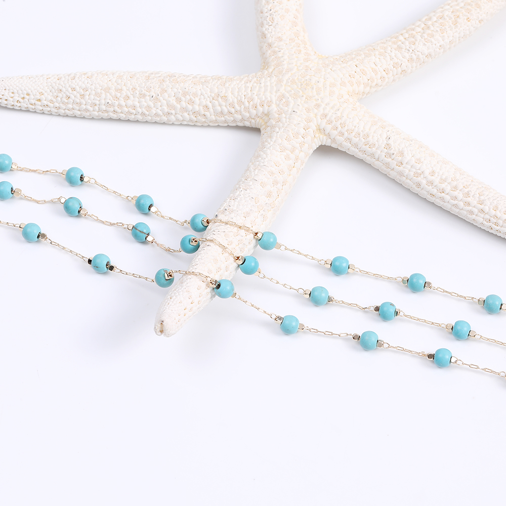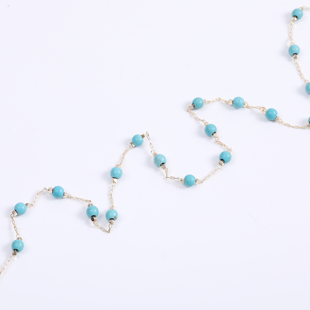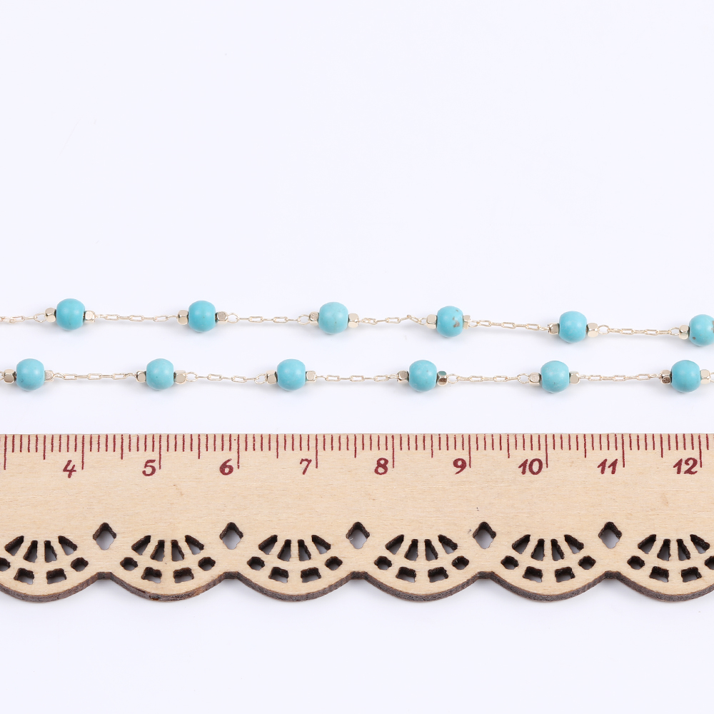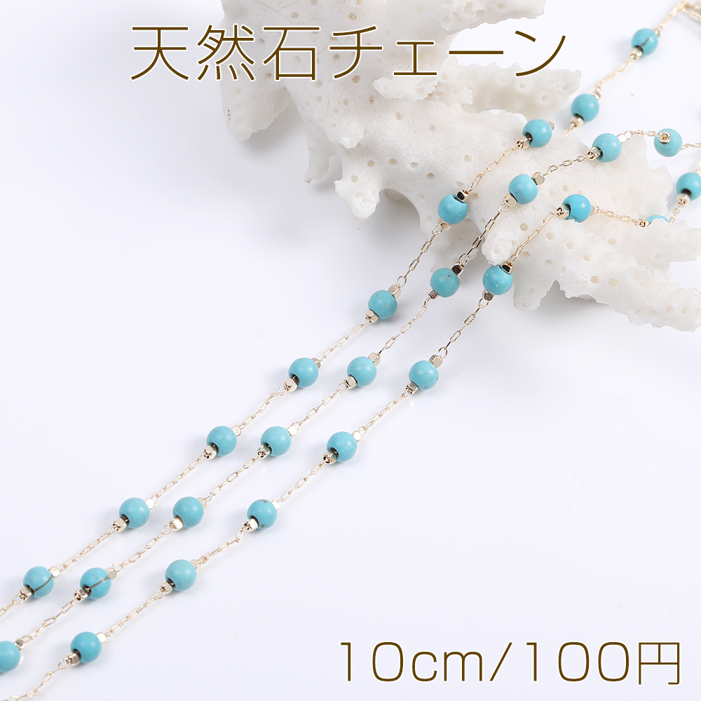 高品質天然石チェーン ターコイズ ハンドメードチェーン ゴールド(10cm)