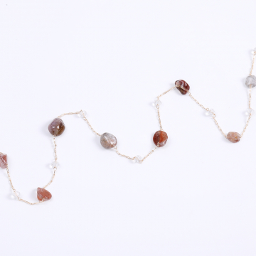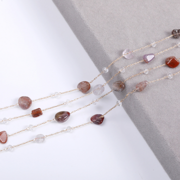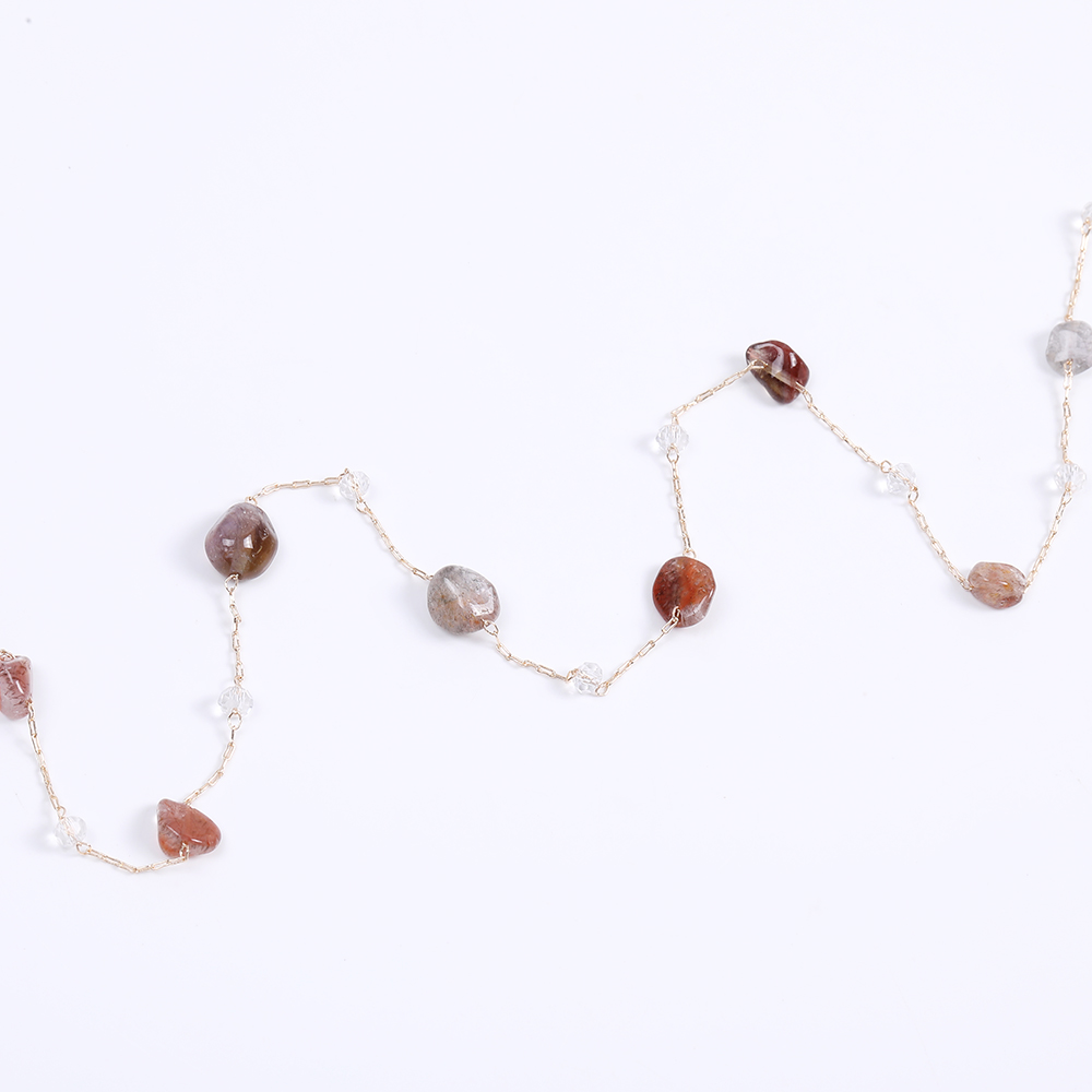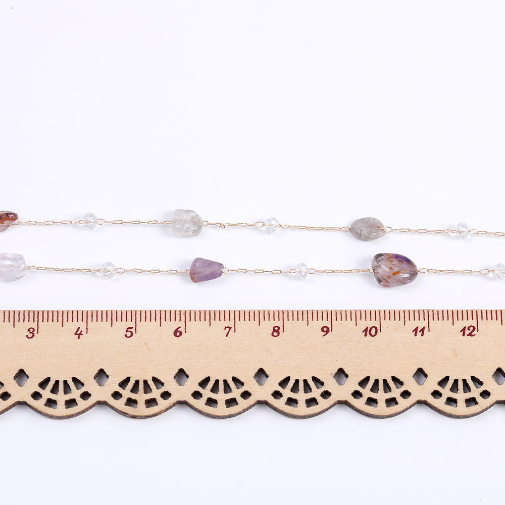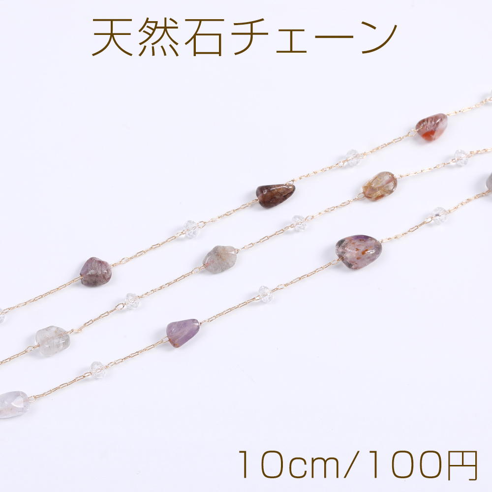 高品質天然石チェーン ライトアメジスト ガラスビーズ付き ハンドメードチェーン ゴールド(10cm)