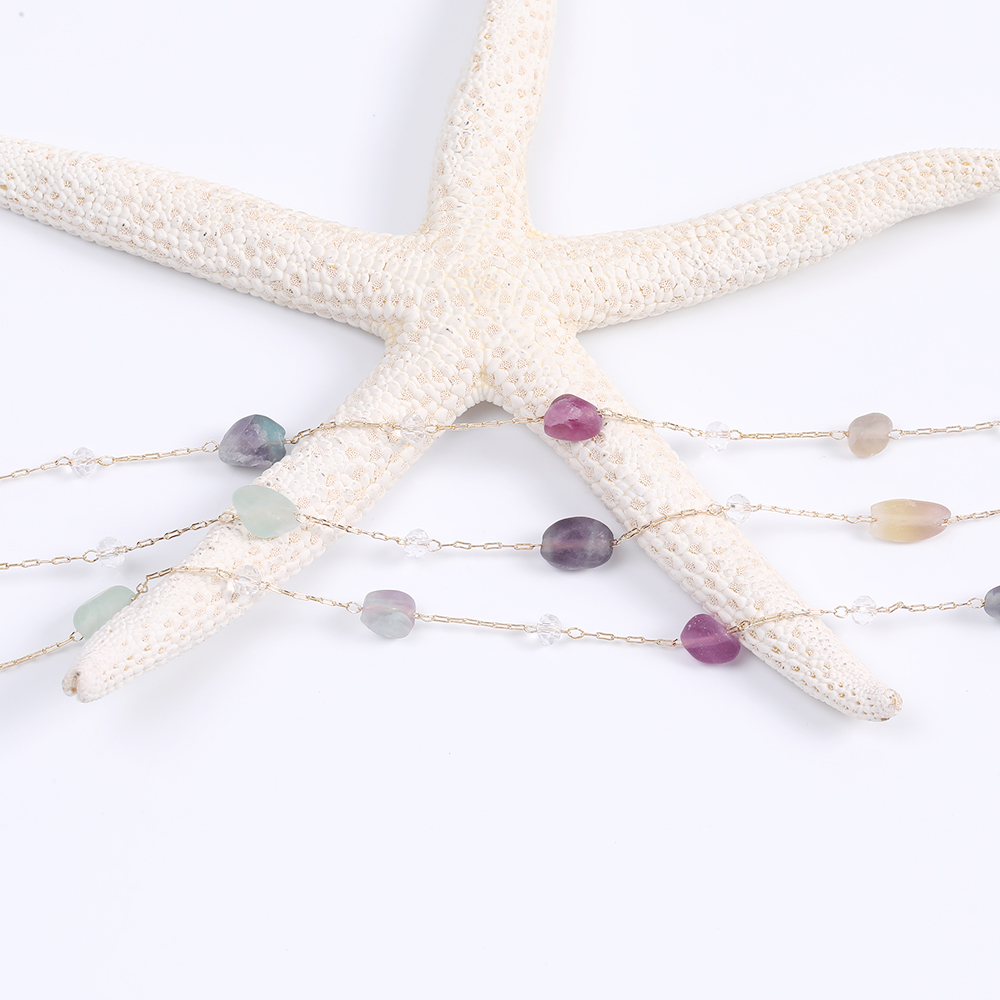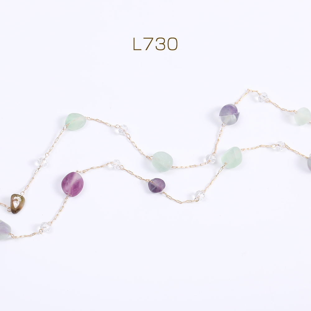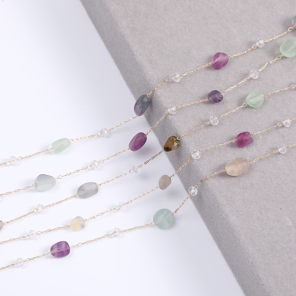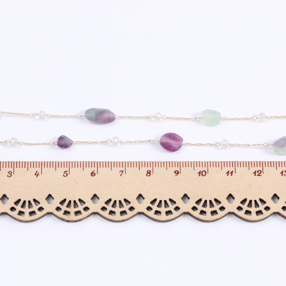 高品質天然石チェーン パープルアクアマリン ガラスビーズ付き ハンドメードチェーン ゴールド(10cm)