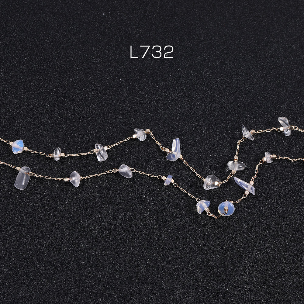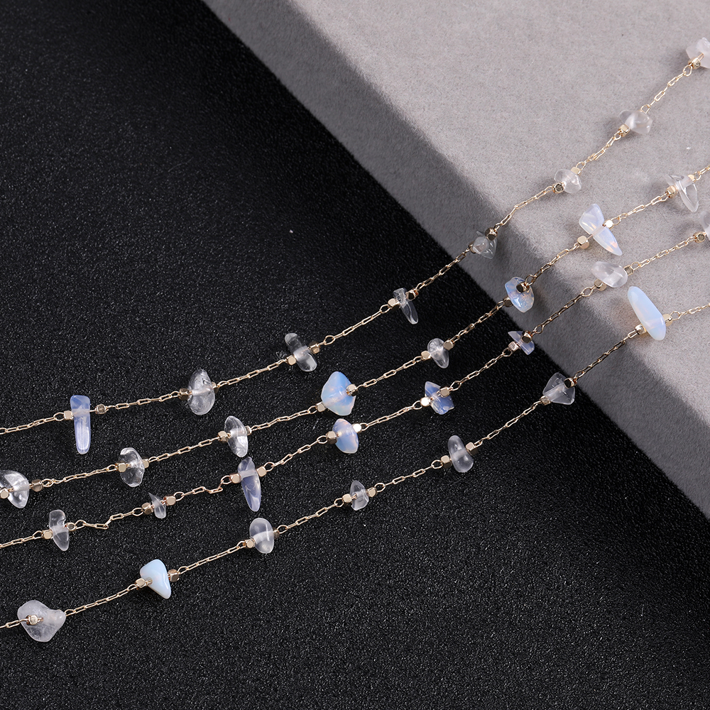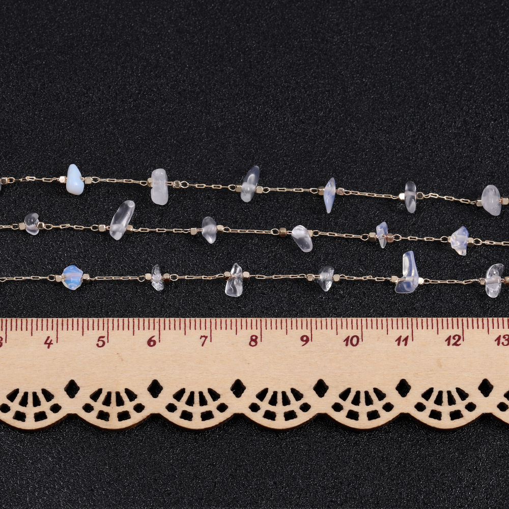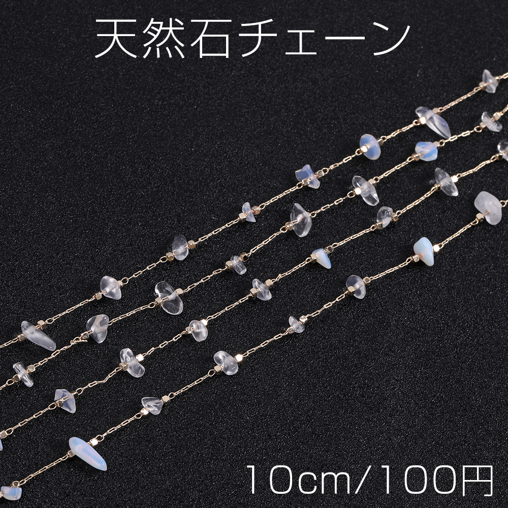 高品質天然石チェーン ホワイトオパール ハンドメードチェーン ゴールド(10cm)
