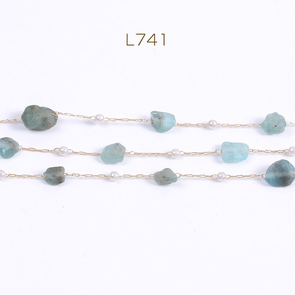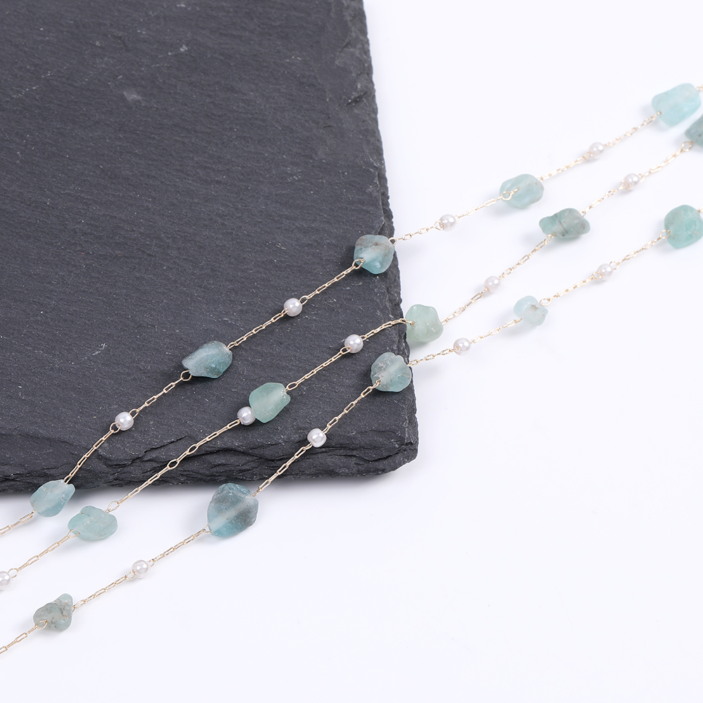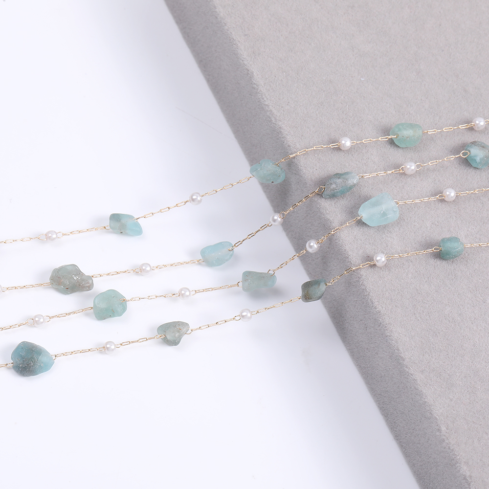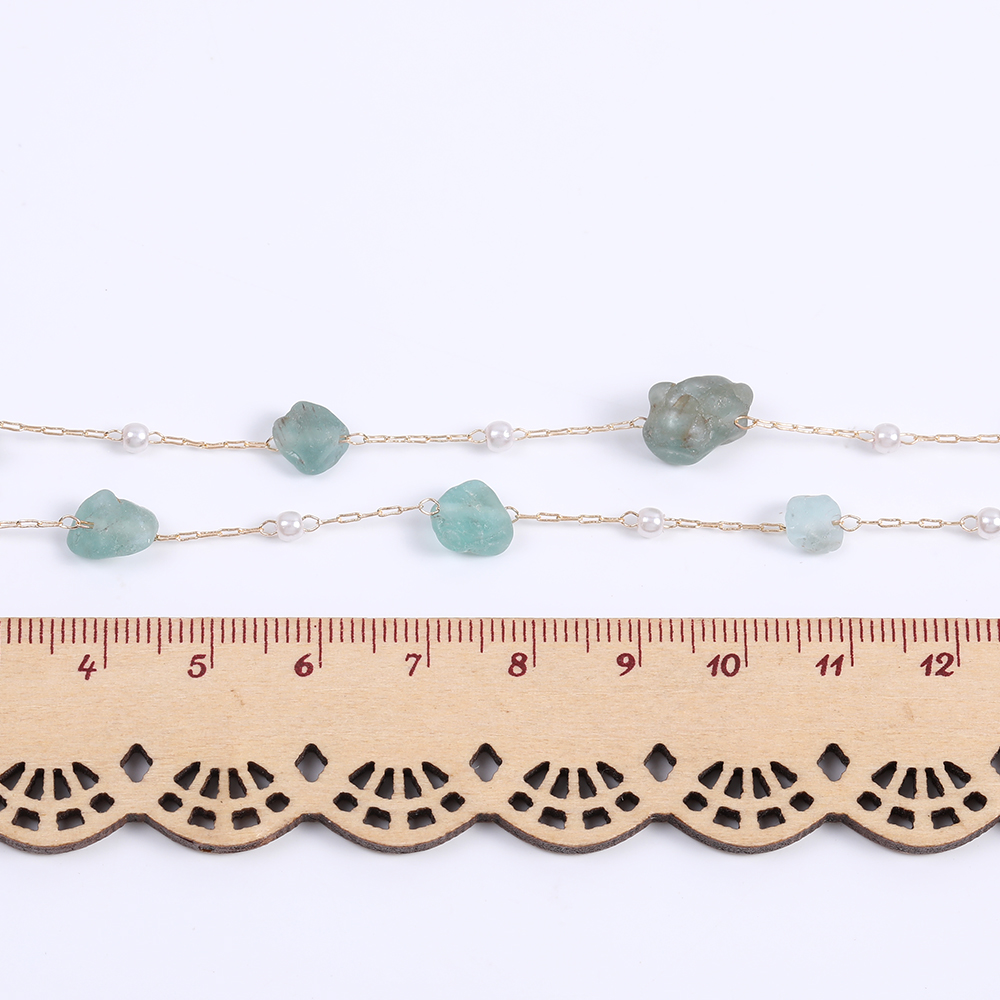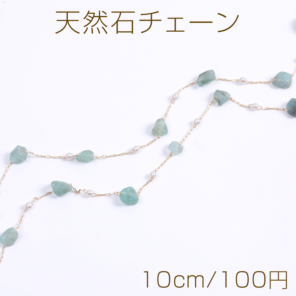 高品質天然石チェーン アマゾナイト パール付き ハンドメードチェーン ゴールド(10cm)
