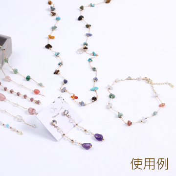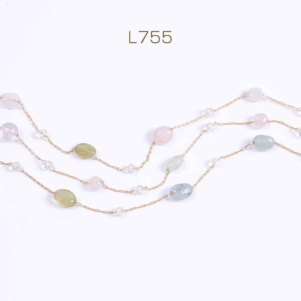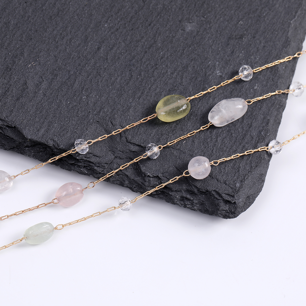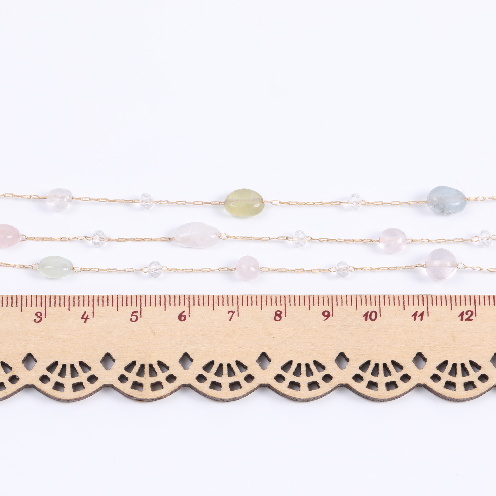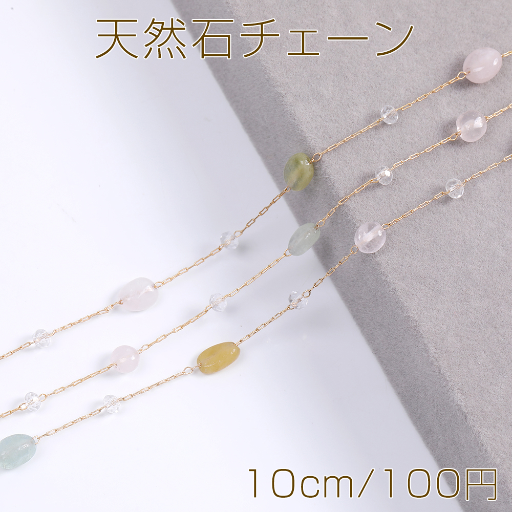 高品質天然石チェーン モルガナイト ガラスビーズ付き ハンドメードチェーン ゴールド(10cm)