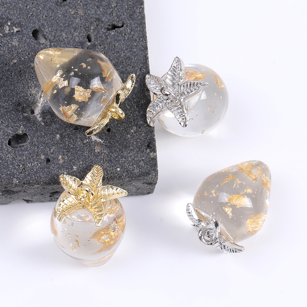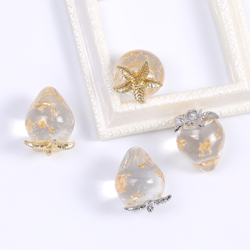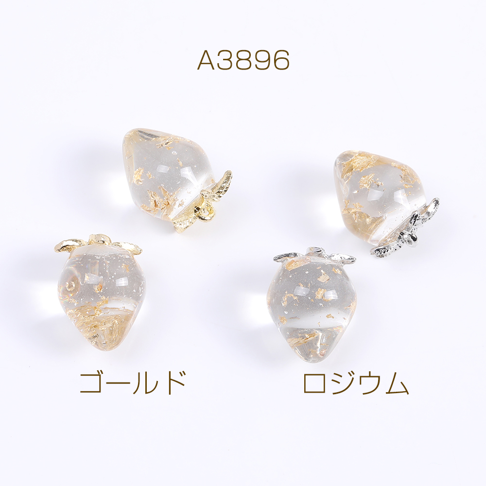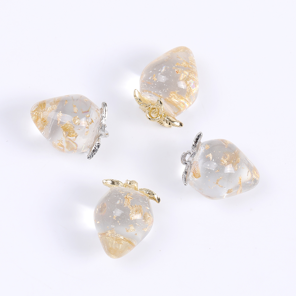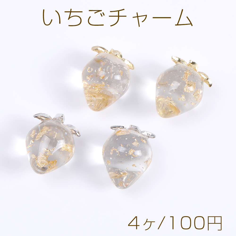 いちごチャーム 樹脂製イチゴチャーム かわいいフルーツチャーム 苺 金箔封入 12×16mm クリア(4ヶ)