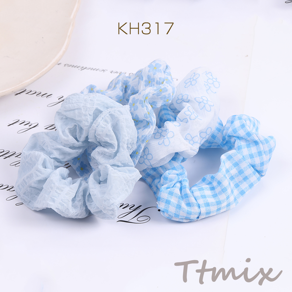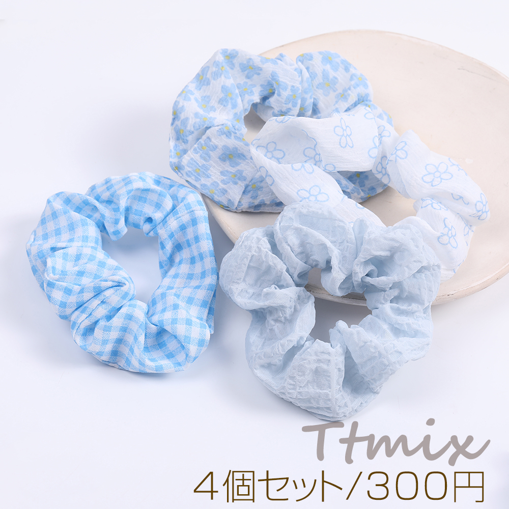 シュシュセット ヘアアクセサリー ブルー系(4個セット)
