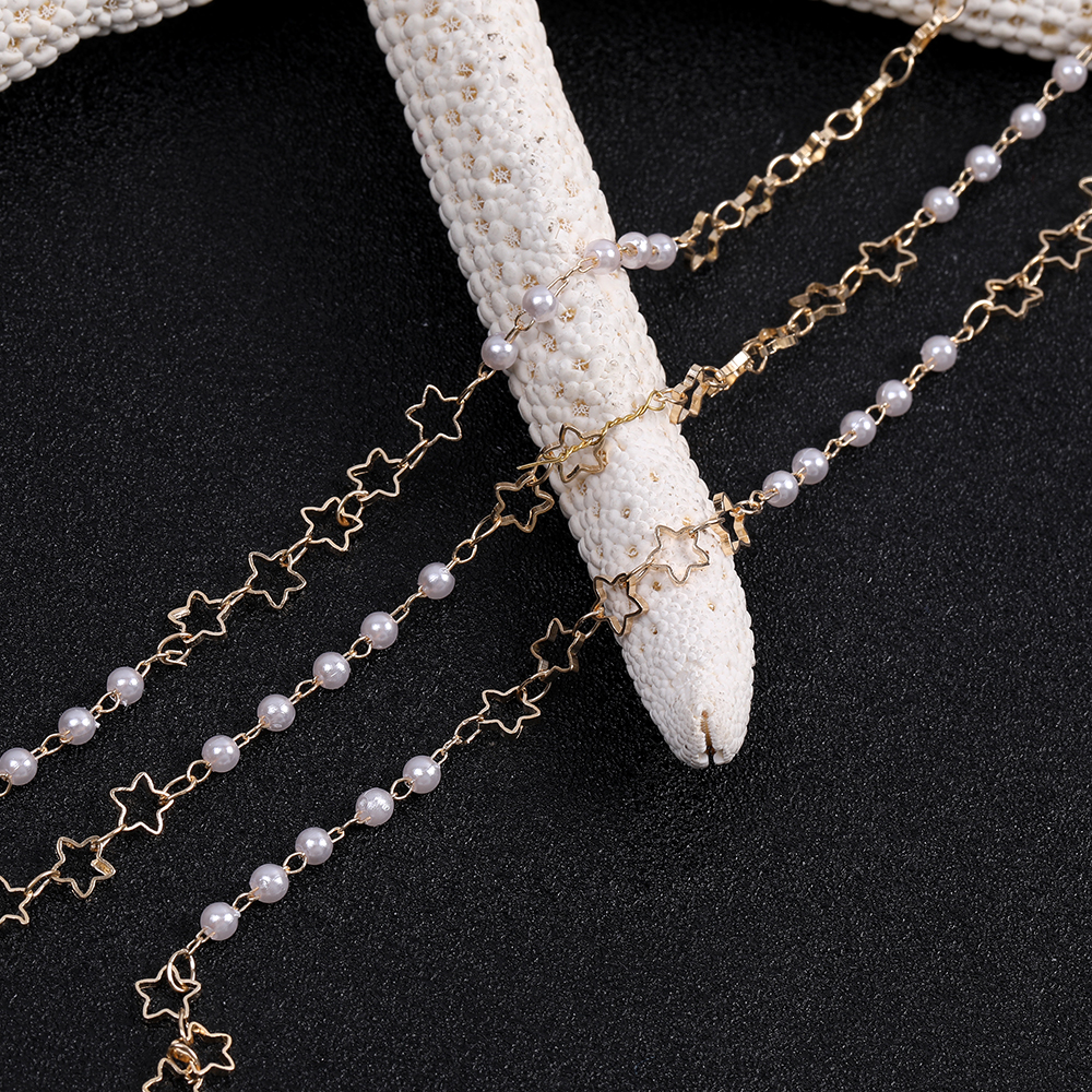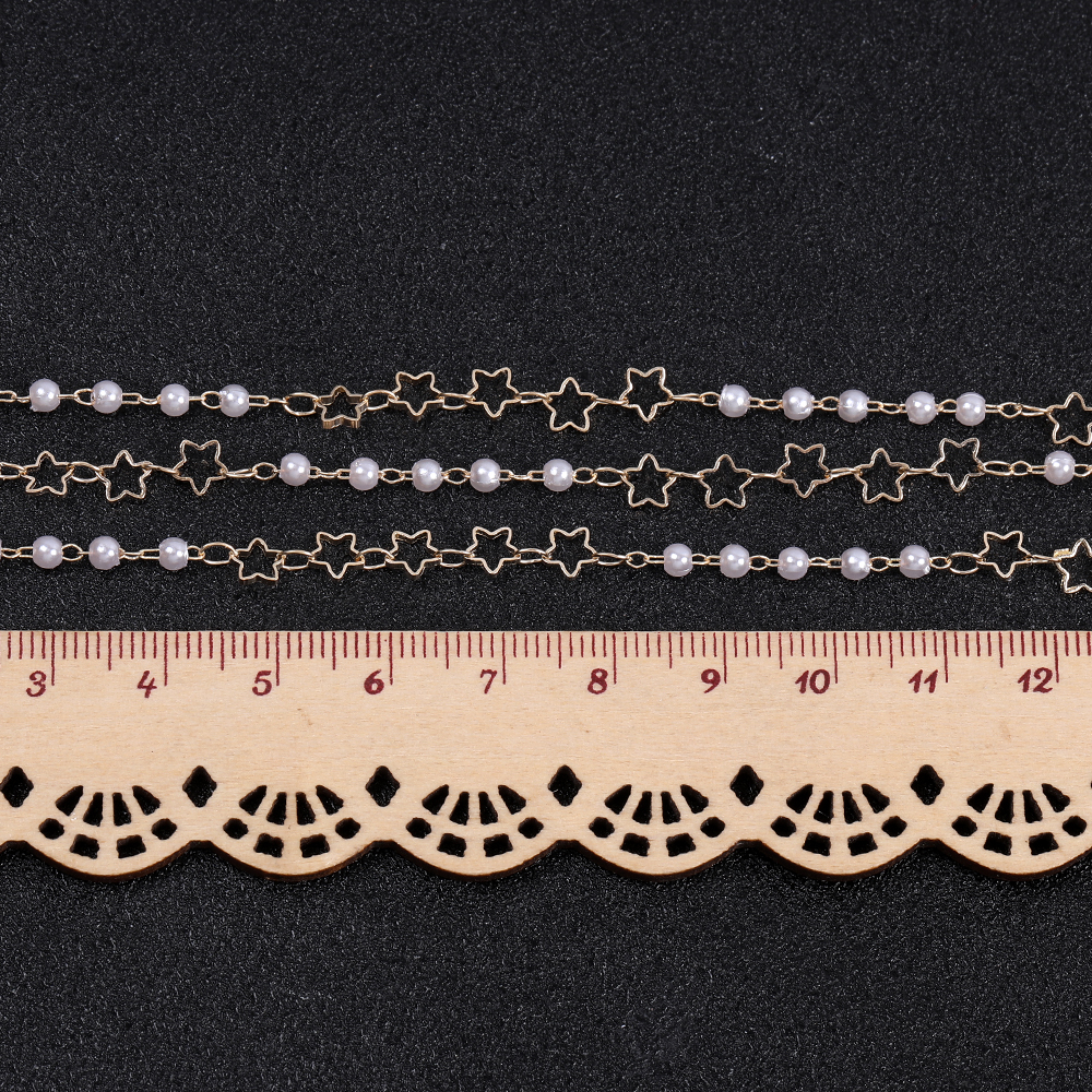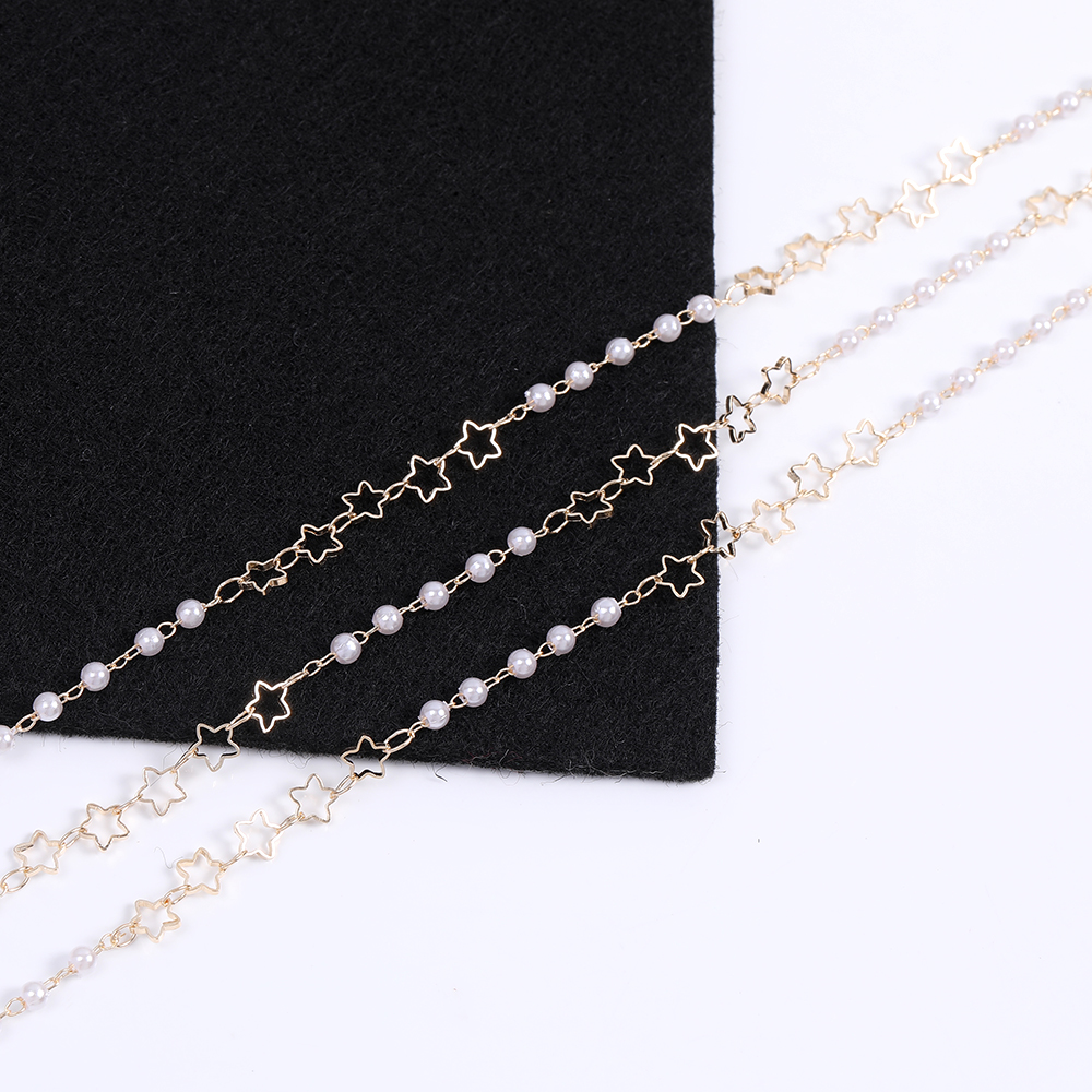 高品質パールチェーン ラウンド 星形付き 5mm ハンドメードチェーン ゴールド(10cm)