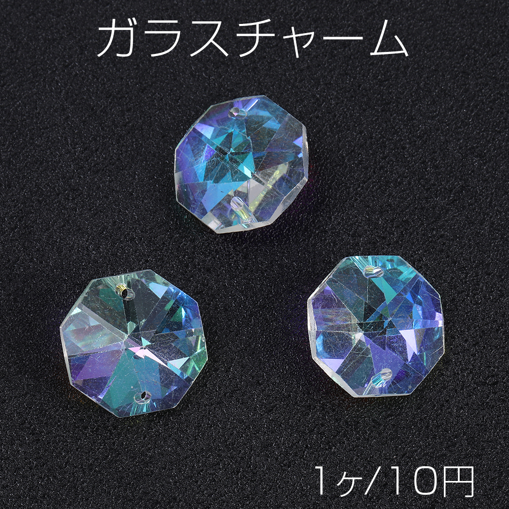ガラスチャーム 八角形カット 2穴 22×22mm クリアABカラー(1ヶ)