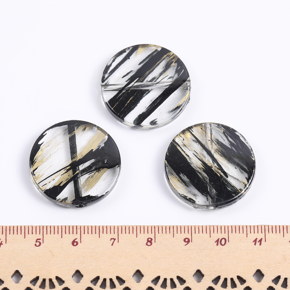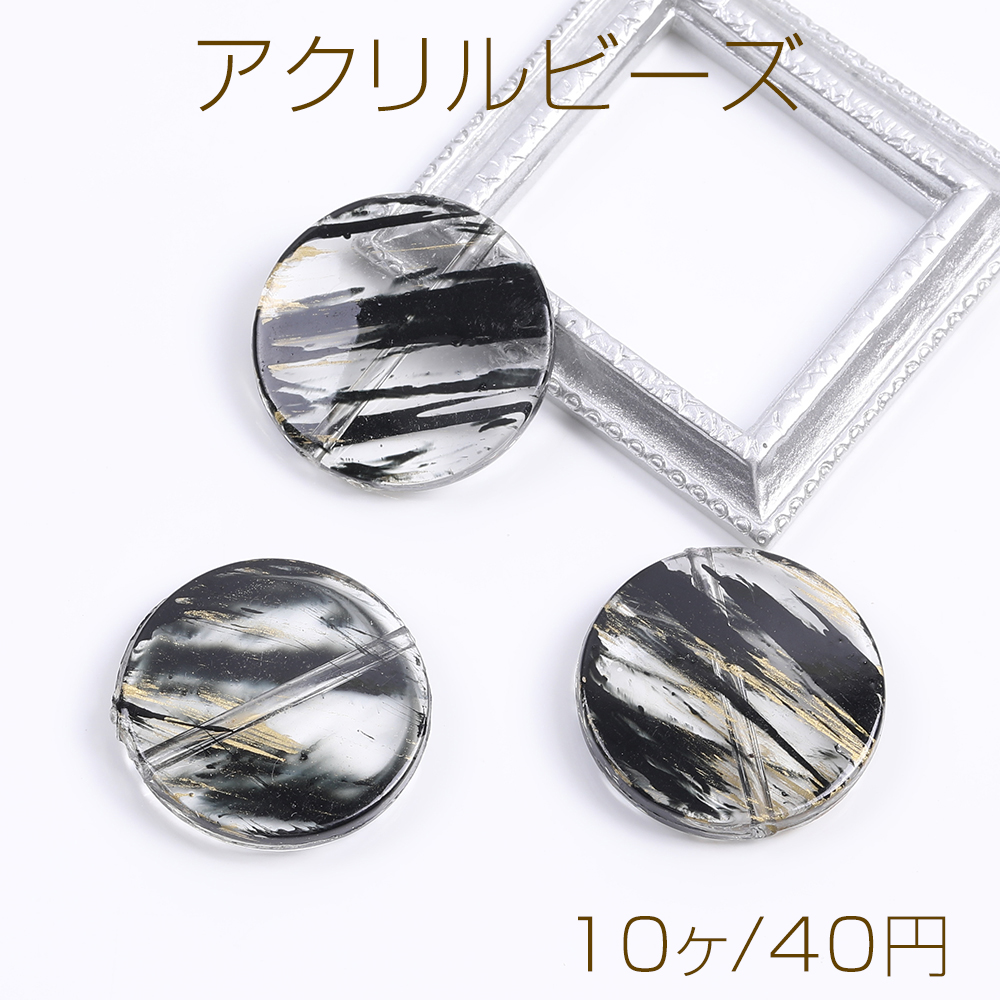 アクリルビーズ コイン型 25mm クリア ブラック/ゴールド(10ヶ)