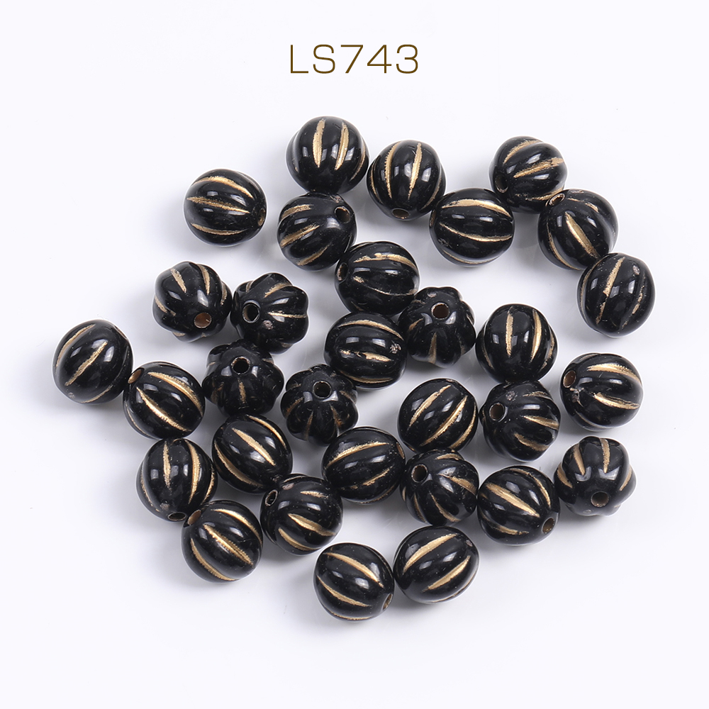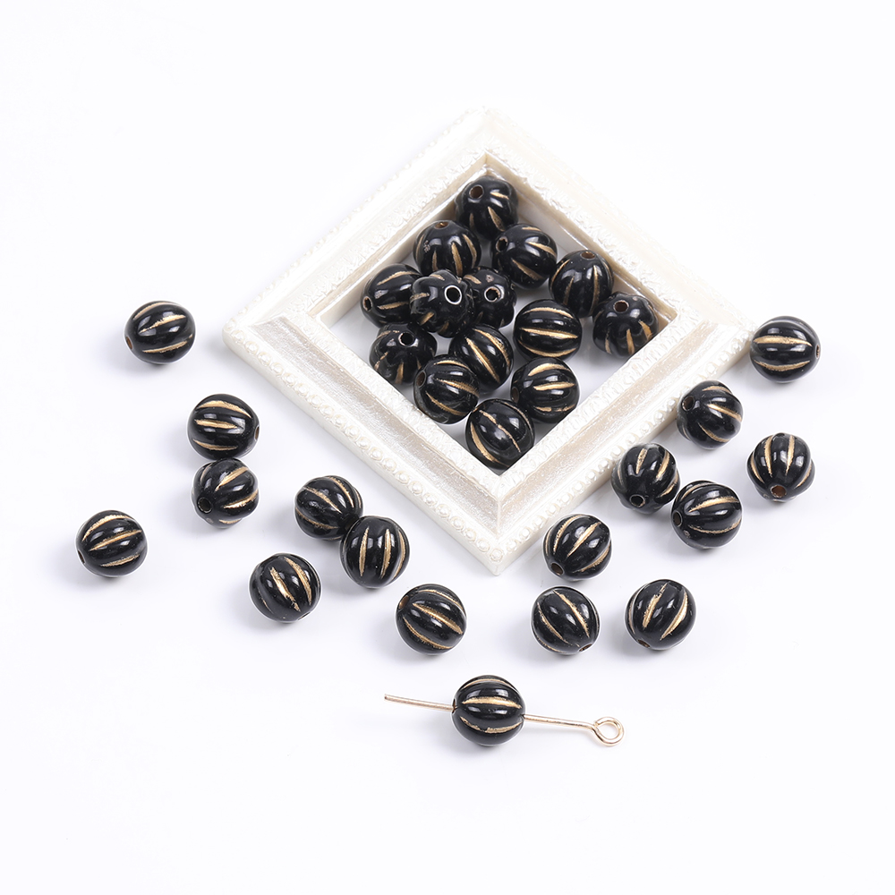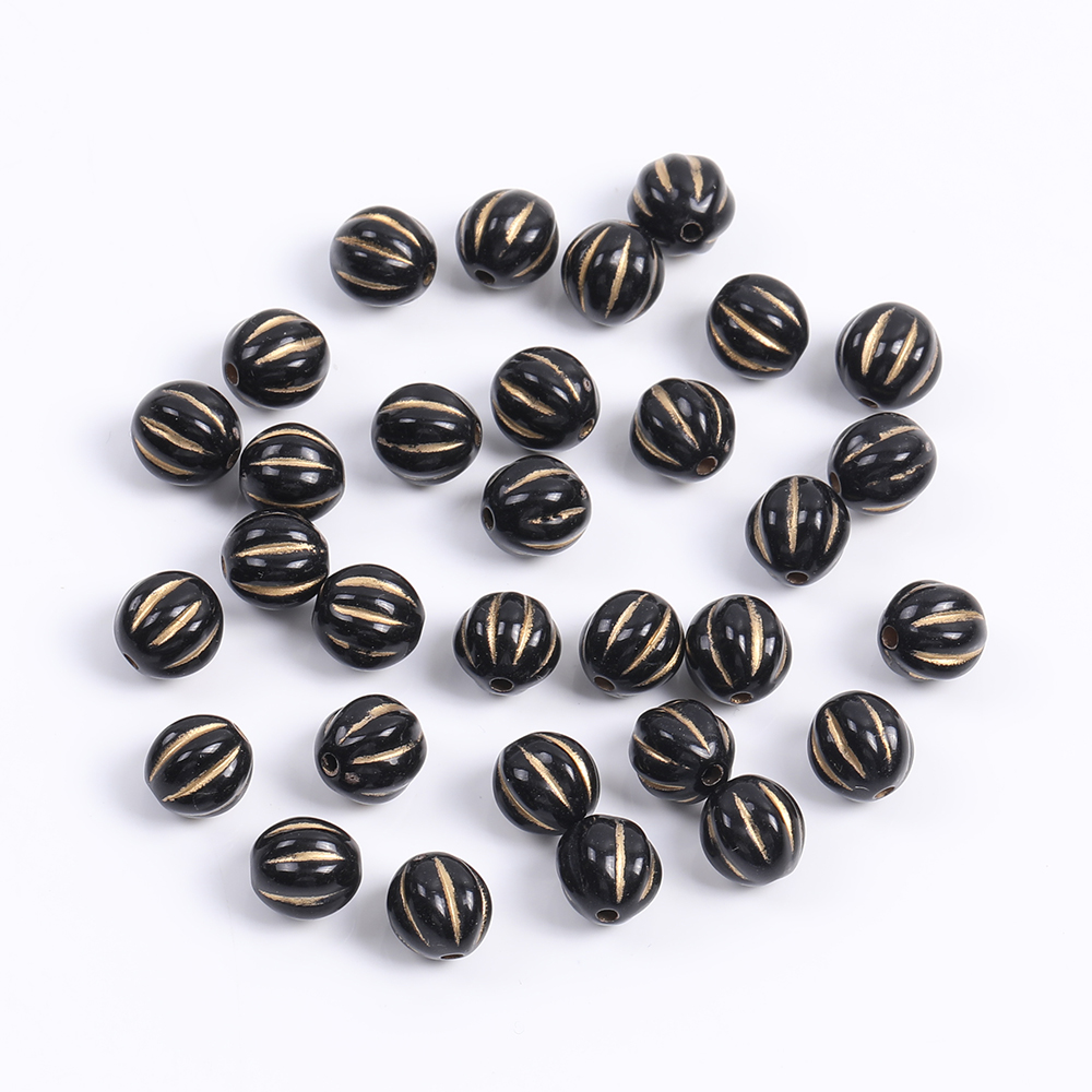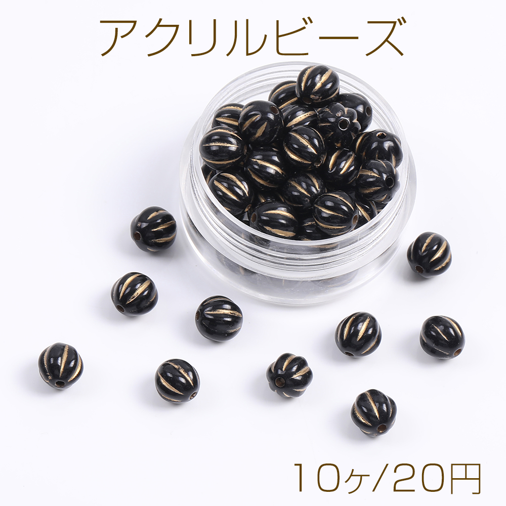 アクリルビーズ 筋入り丸玉 8mm ブラックアンティークゴールド(10ヶ)