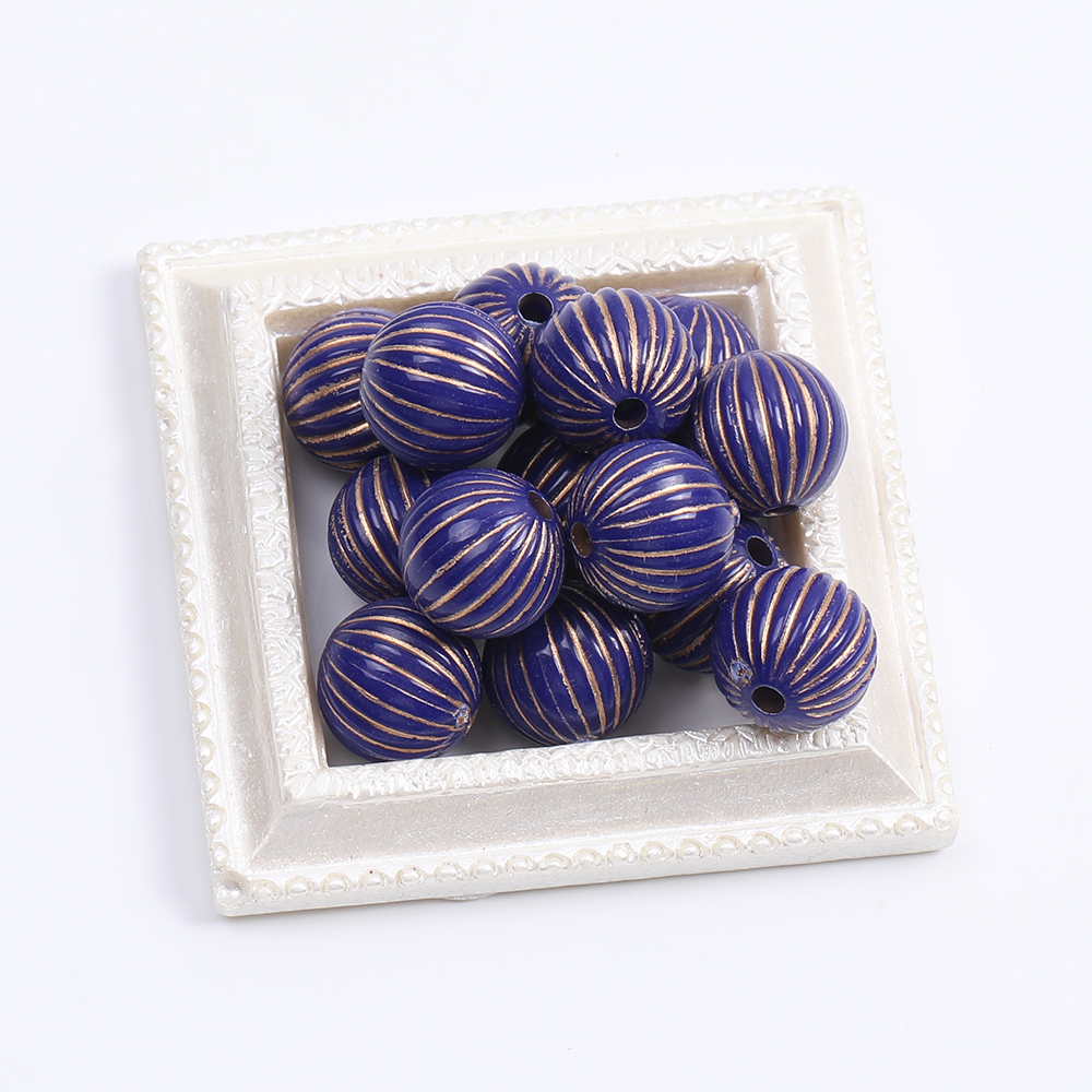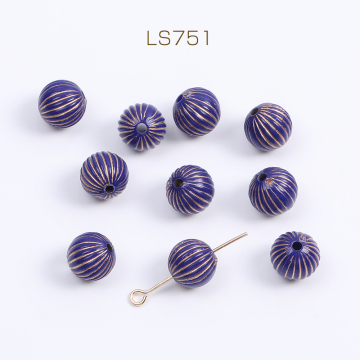 アクリルビーズ 筋入り丸玉 10mm ブルーアンティークゴールド(10ヶ)