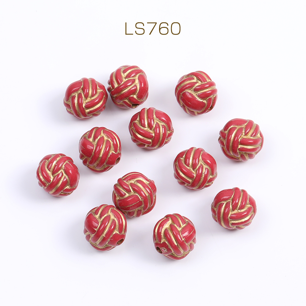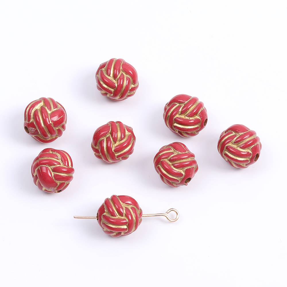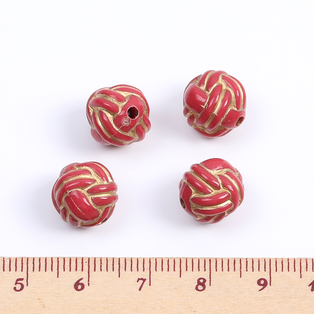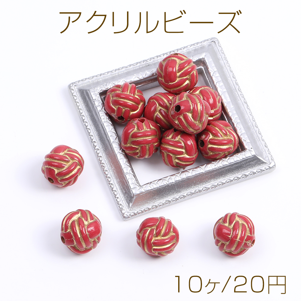 アクリルビーズ 模様入り丸玉 11mm レッドアンティークゴールド(10ヶ)