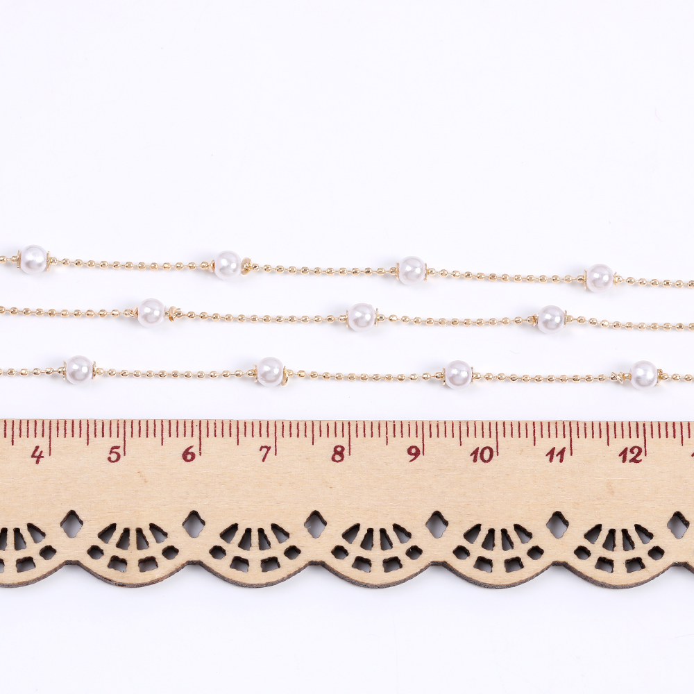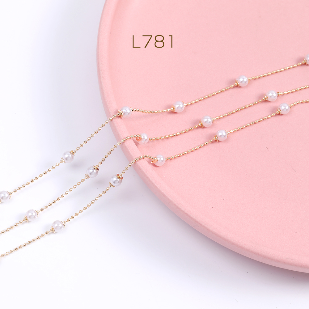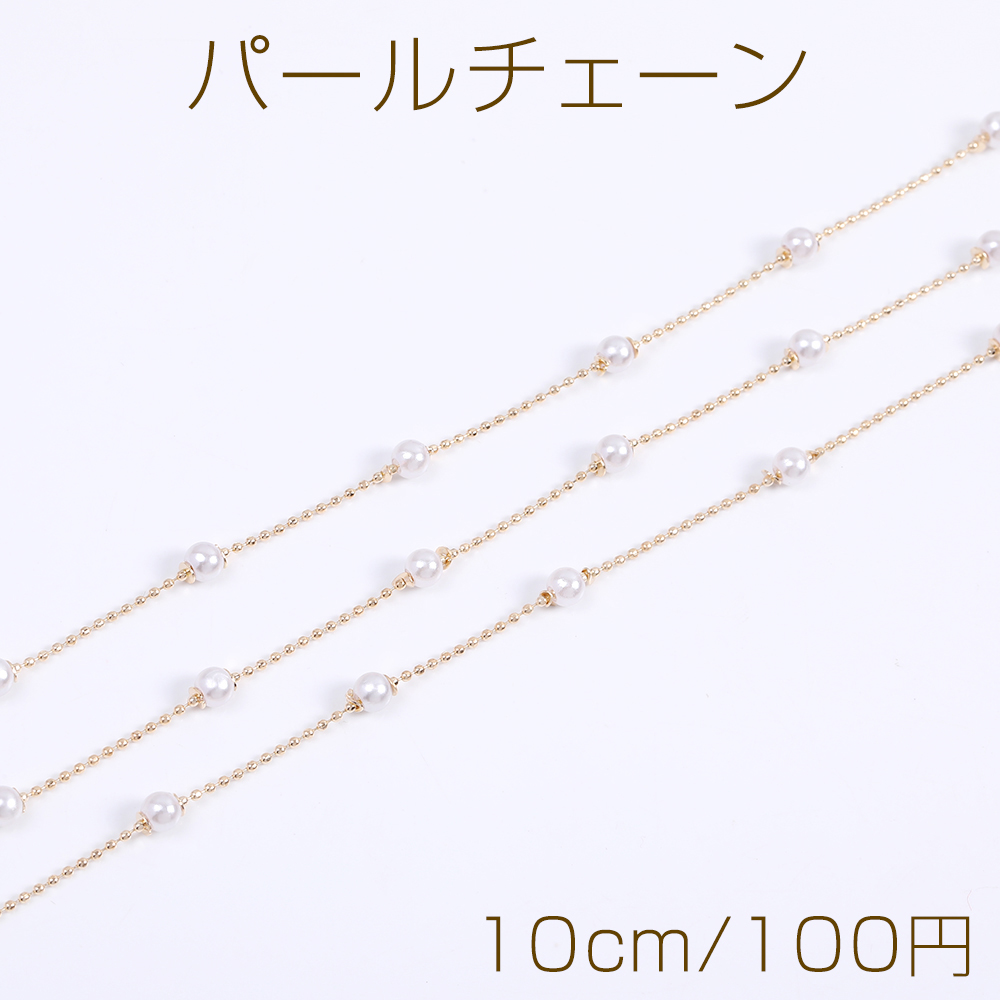 高品質パールチェーン ボールチェーン 4mm ハンドメードチェーン ゴールド(10cm)