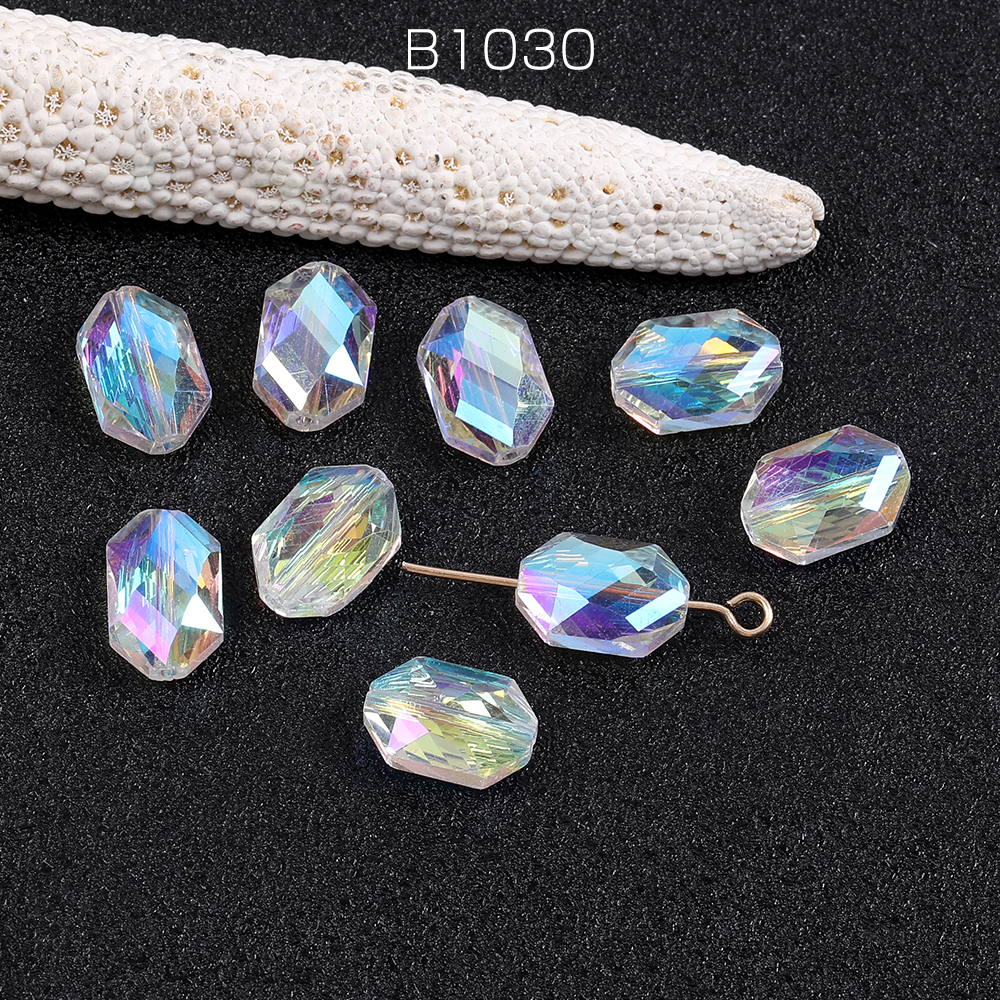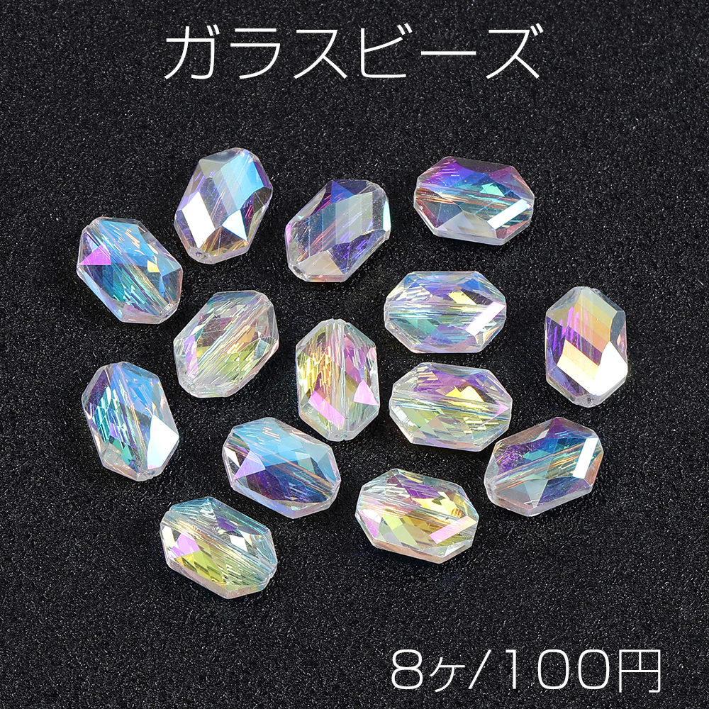 メッキガラスビーズ 長方形型カット 8×12mm クリアABカラー(8ヶ)