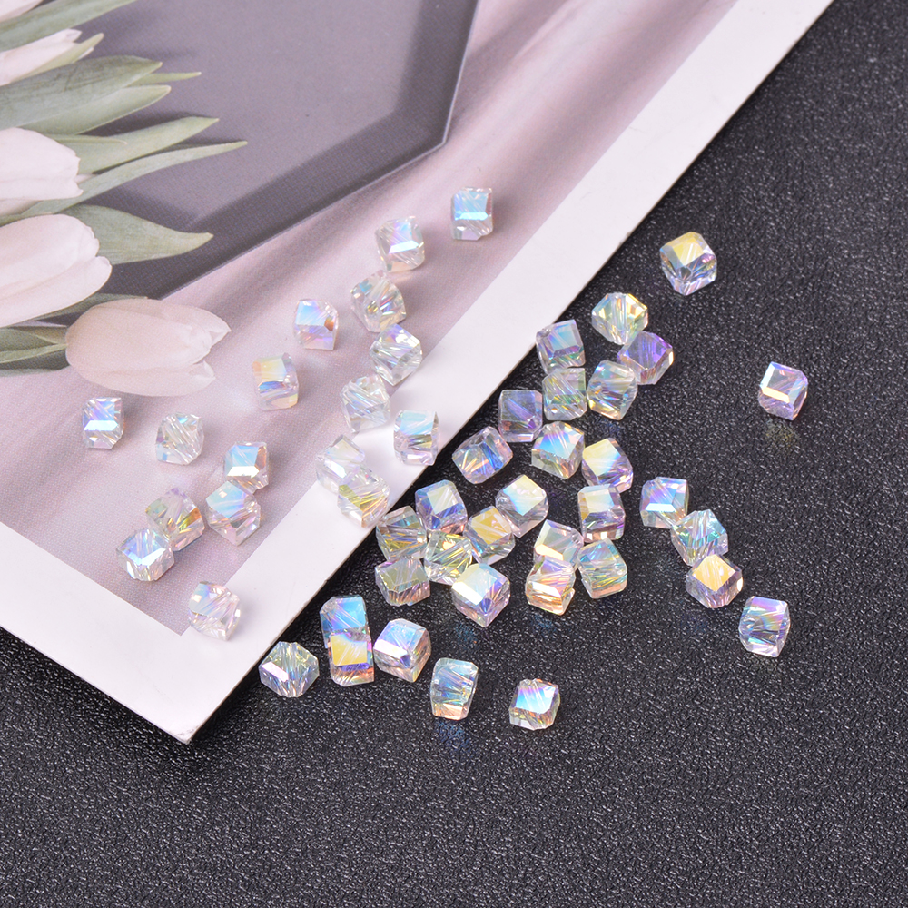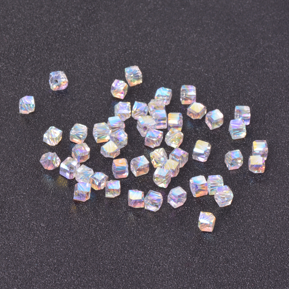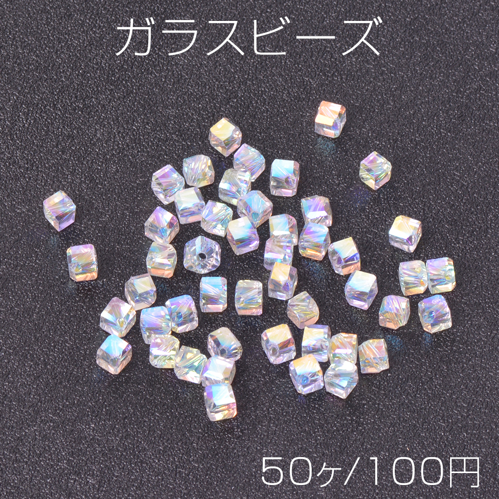 メッキガラスビーズ ひし形カット 5×5mm クリアABカラー(50ヶ)