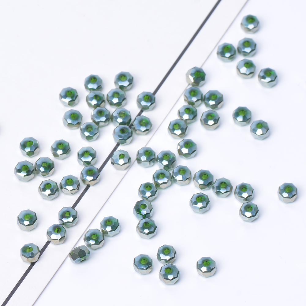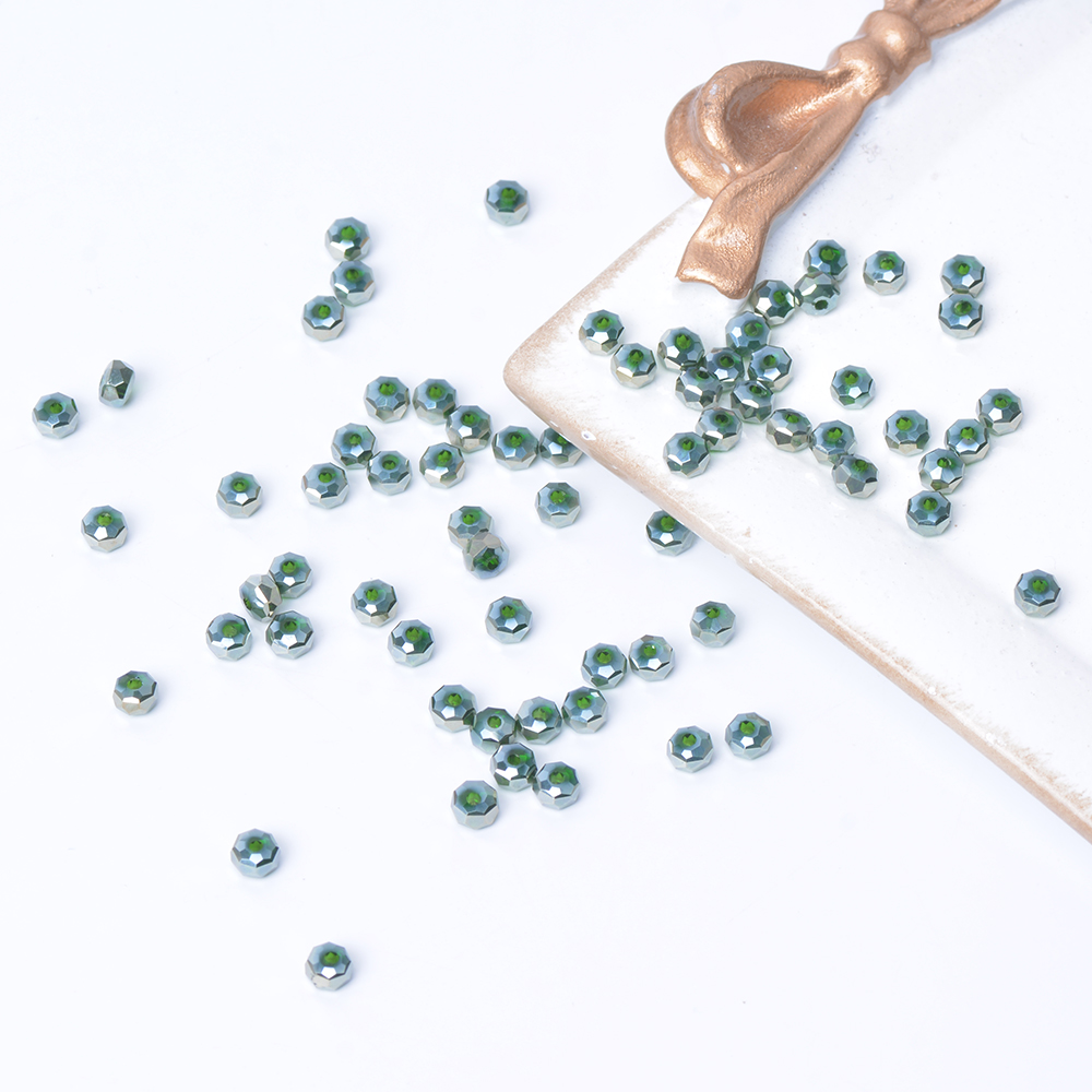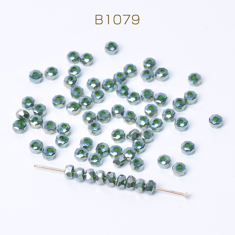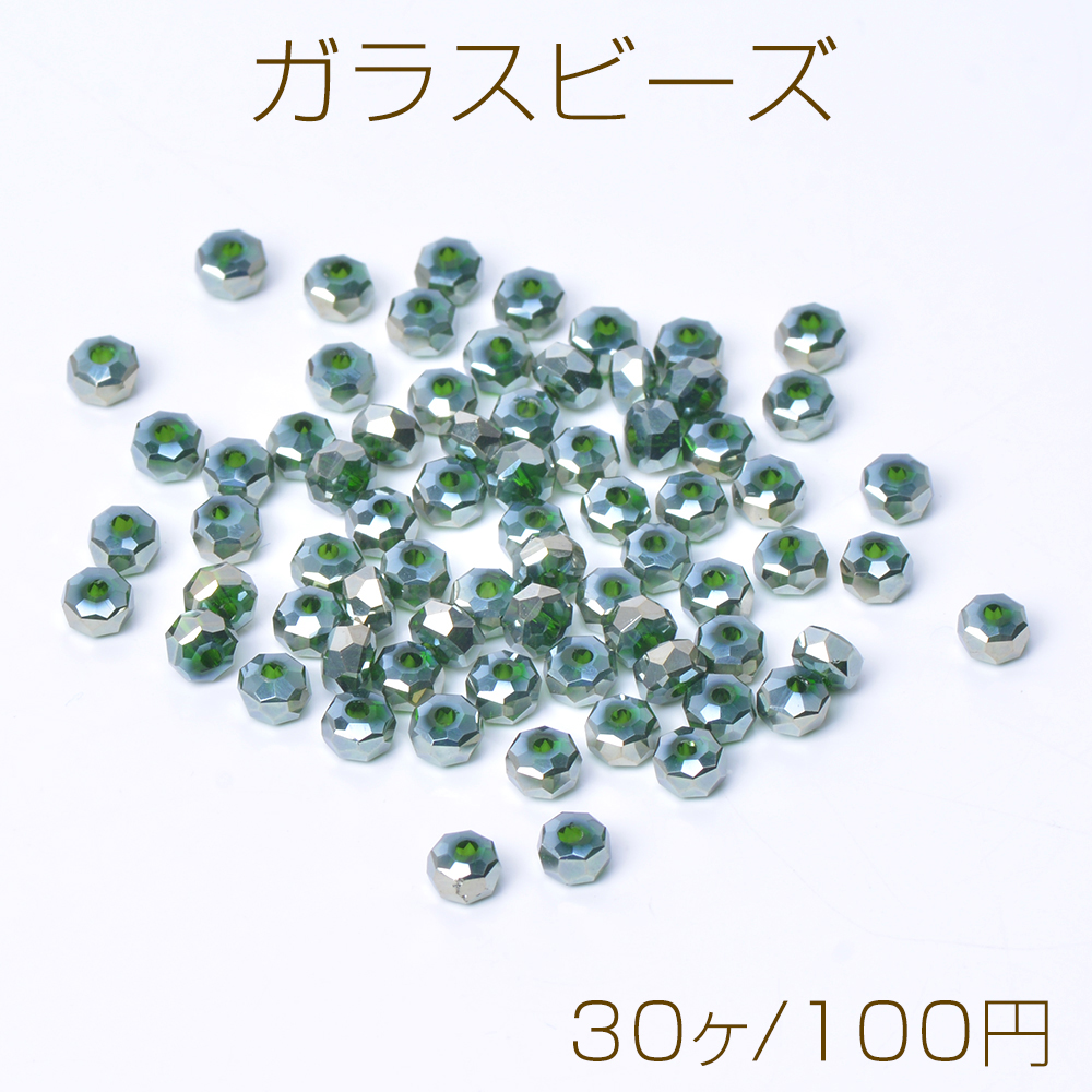 メッキガラスビーズ ボタンカット 3×4.5mm グリーン(30ヶ)