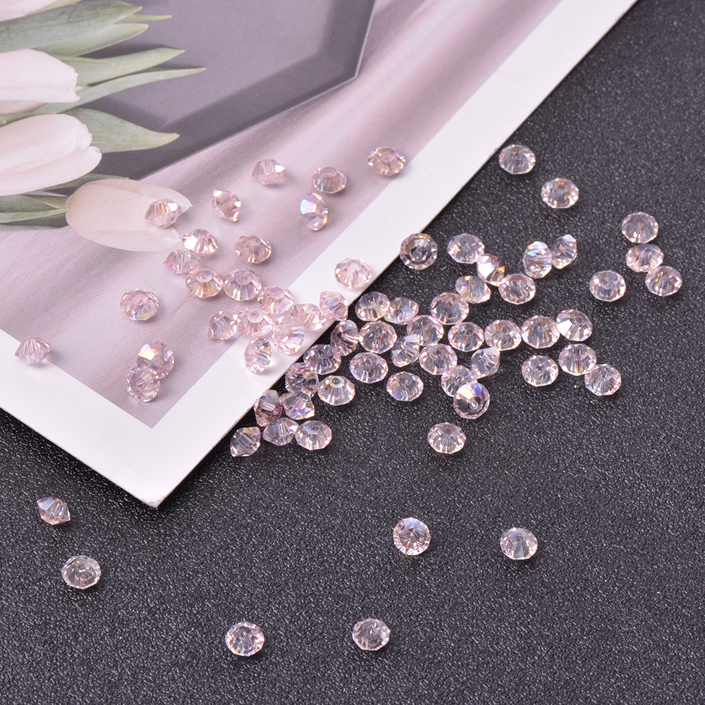 メッキガラスビーズ ソロバンカット 3×4.5mm ピンクABカラー(50ヶ)