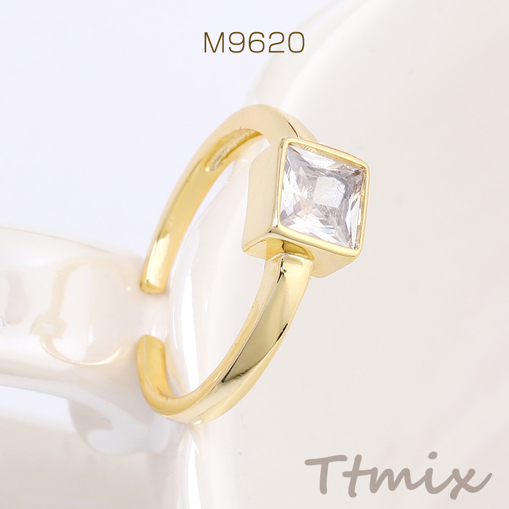 高品質デザインリング 指輪 ジルコニアリング スクエア型 幅約7mm ゴールド(1ヶ)