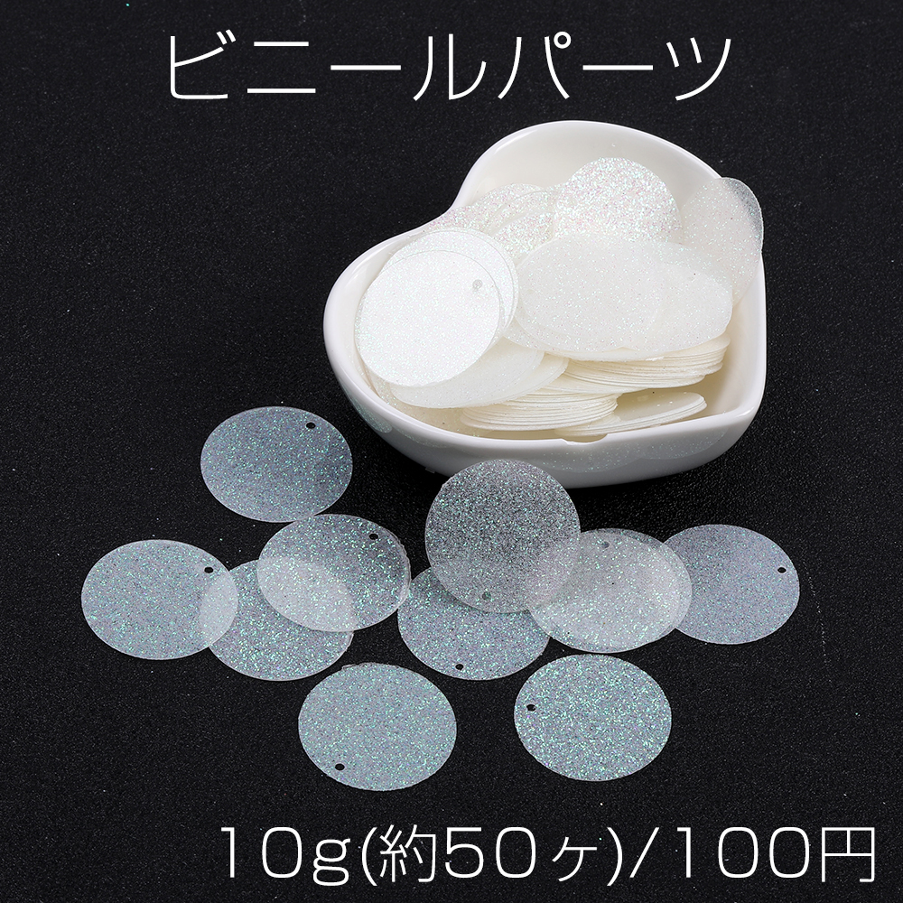 ビニールパーツ ラメ付きラウンド 1穴 25mm ホワイト 10g(約50ヶ)