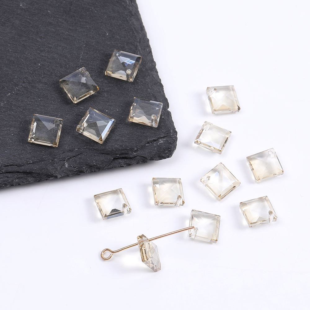 メッキガラスチャーム ひし形 1穴 11×11mm クリアブラウン(10ヶ)