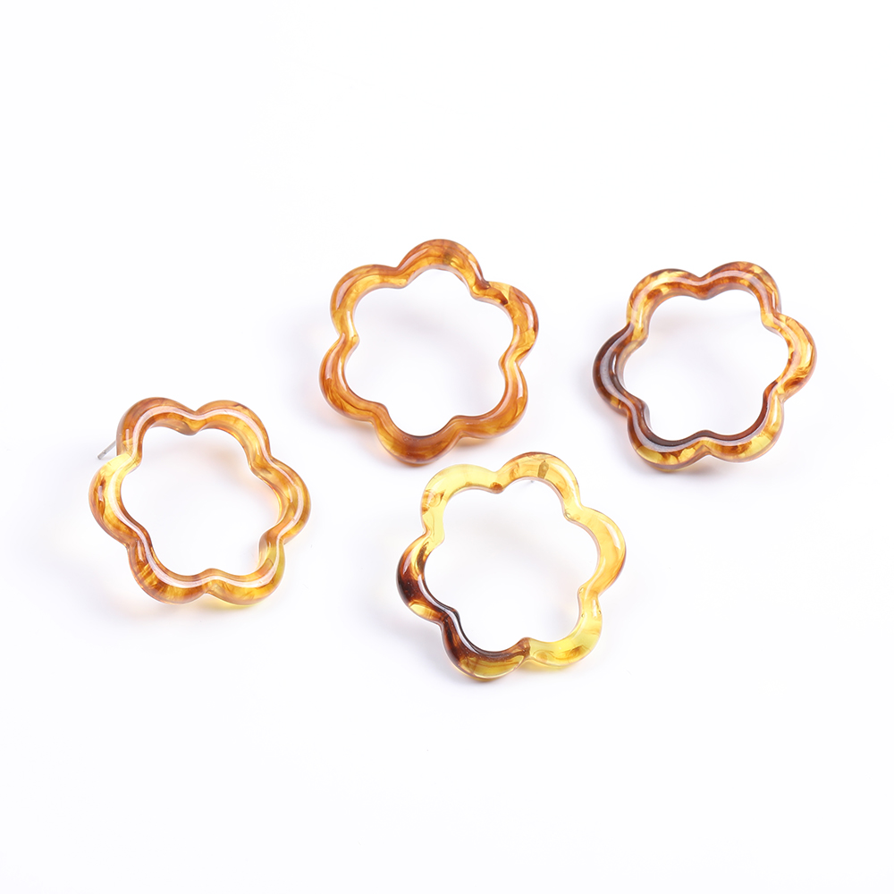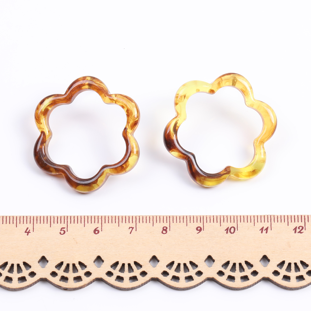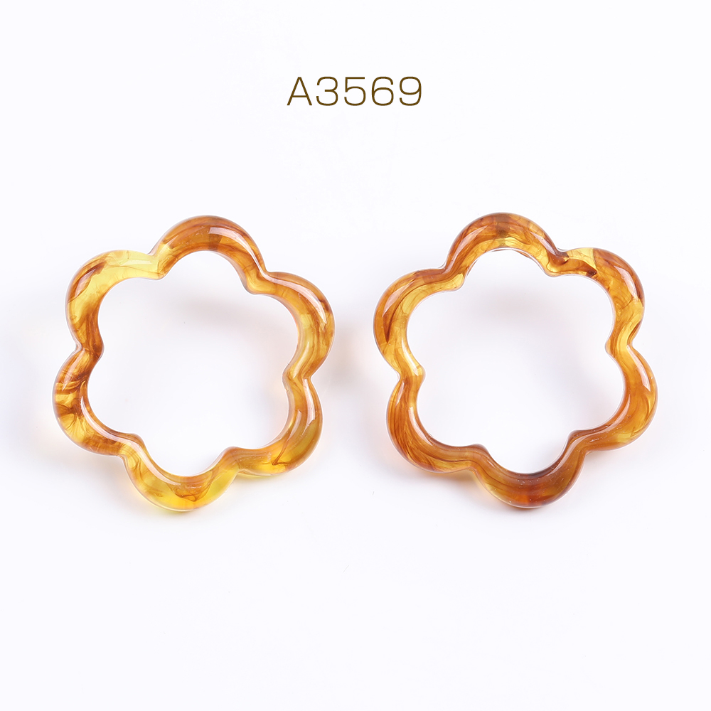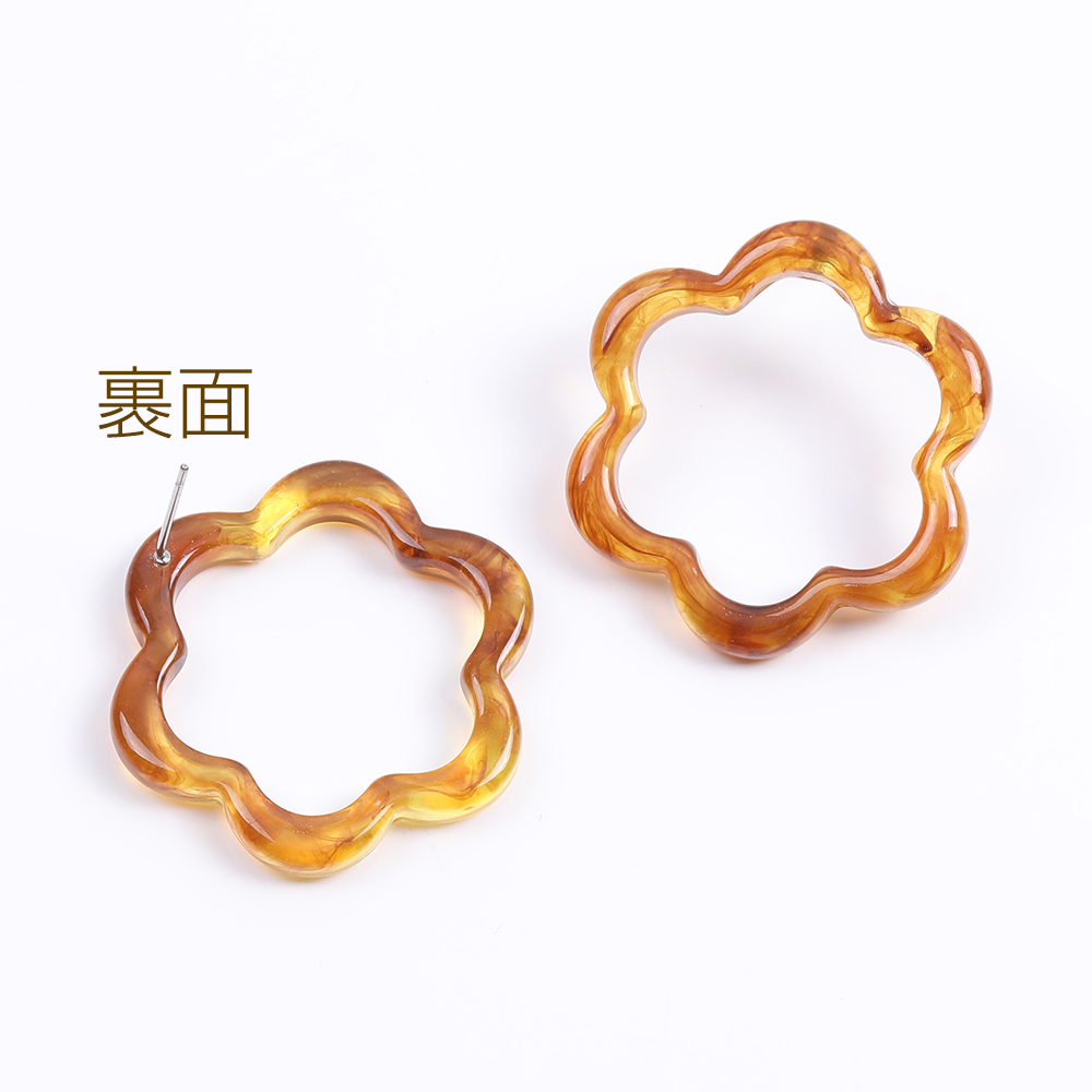 樹脂ピアス フラワー 32mm 琥珀色(2ヶ)