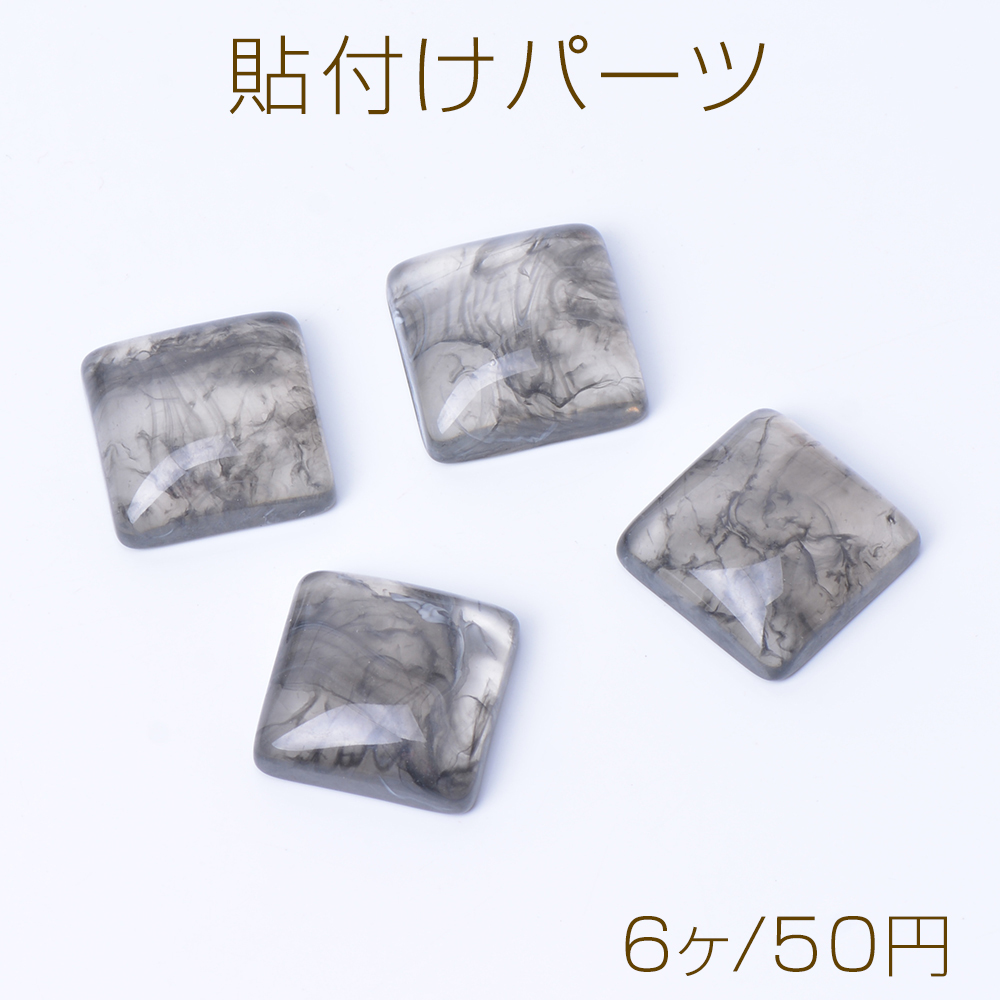 貼付けパーツ 樹脂貼付けパーツ 樹脂カボション スクエア型 17×17mm クリアグレー(6ヶ)