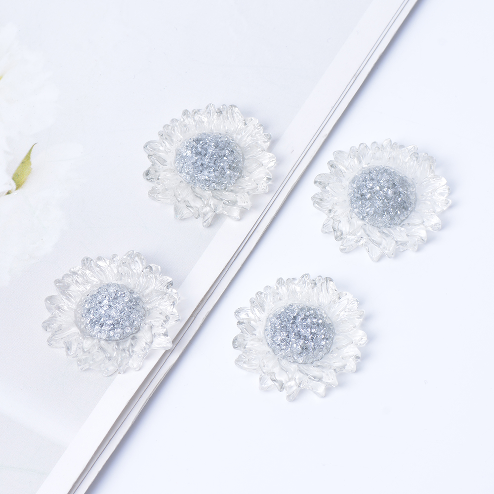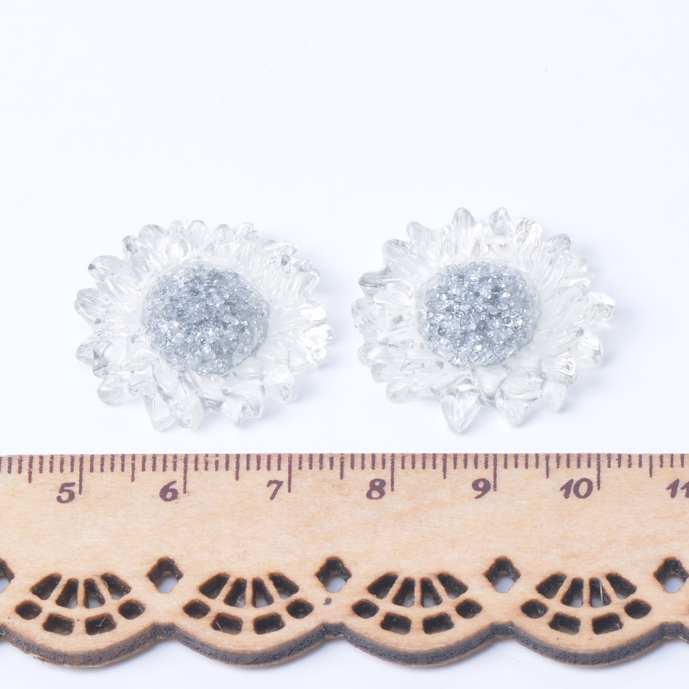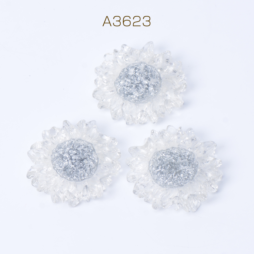 貼付けパーツ 樹脂貼付けパーツ 樹脂カボション 銀箔入り フラワー 菊 25mm(6ヶ)