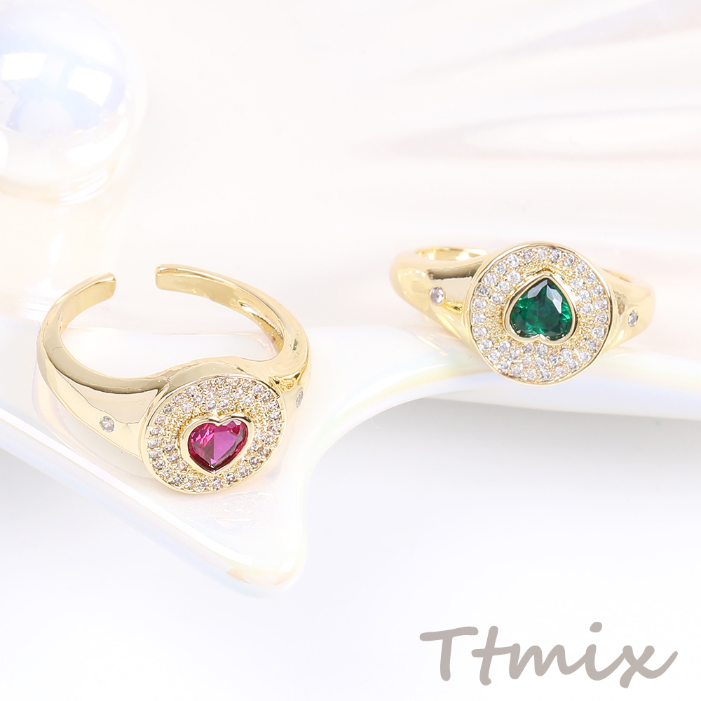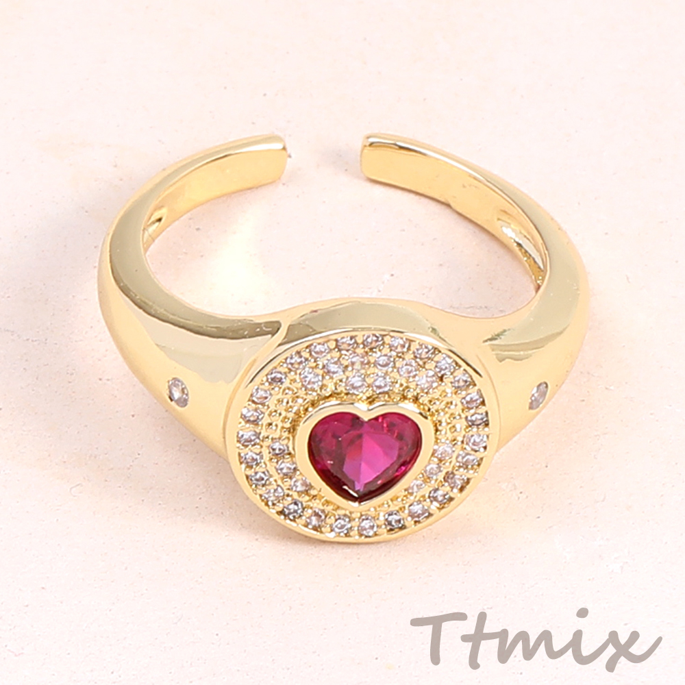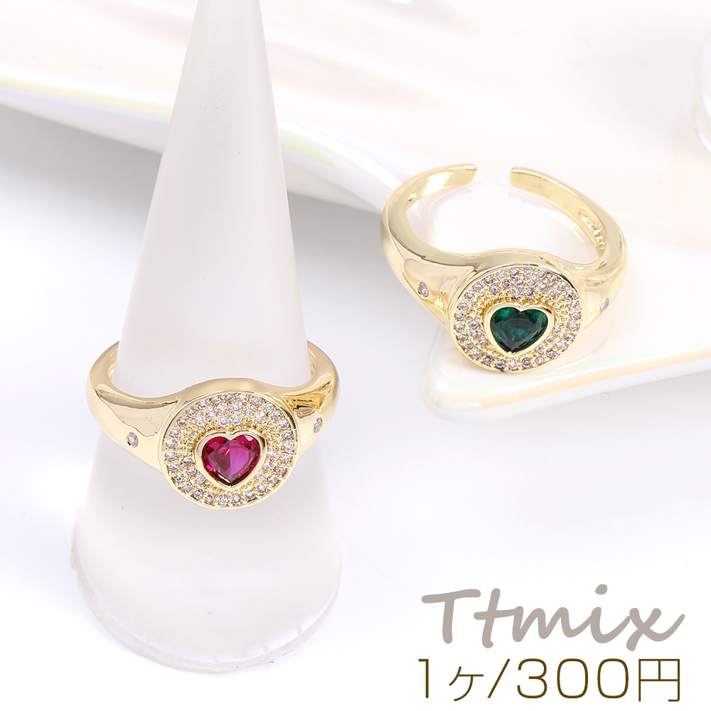 高品質デザインリング 指輪 ジルコニアリング ハート型 幅約12mm ゴールド(1ヶ)