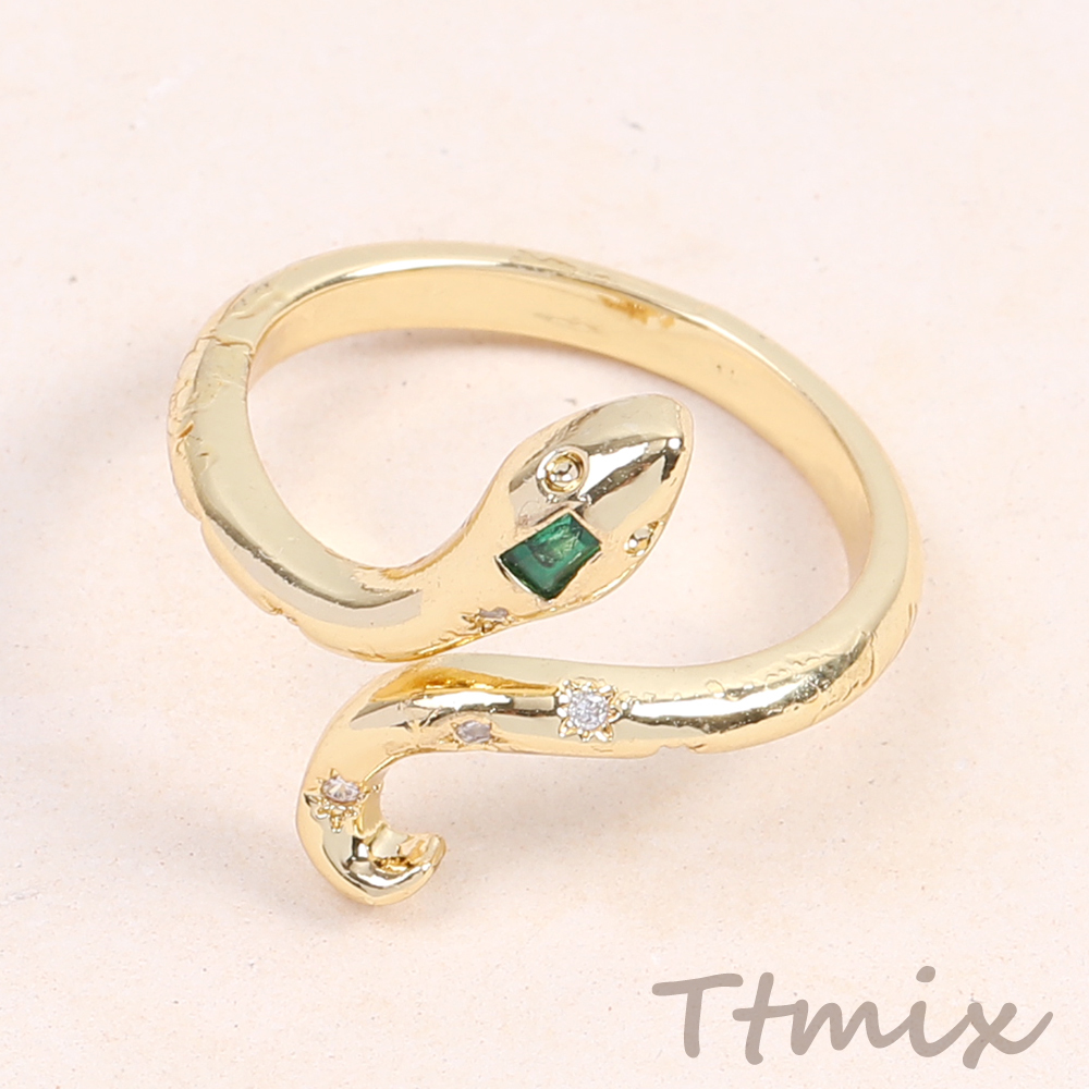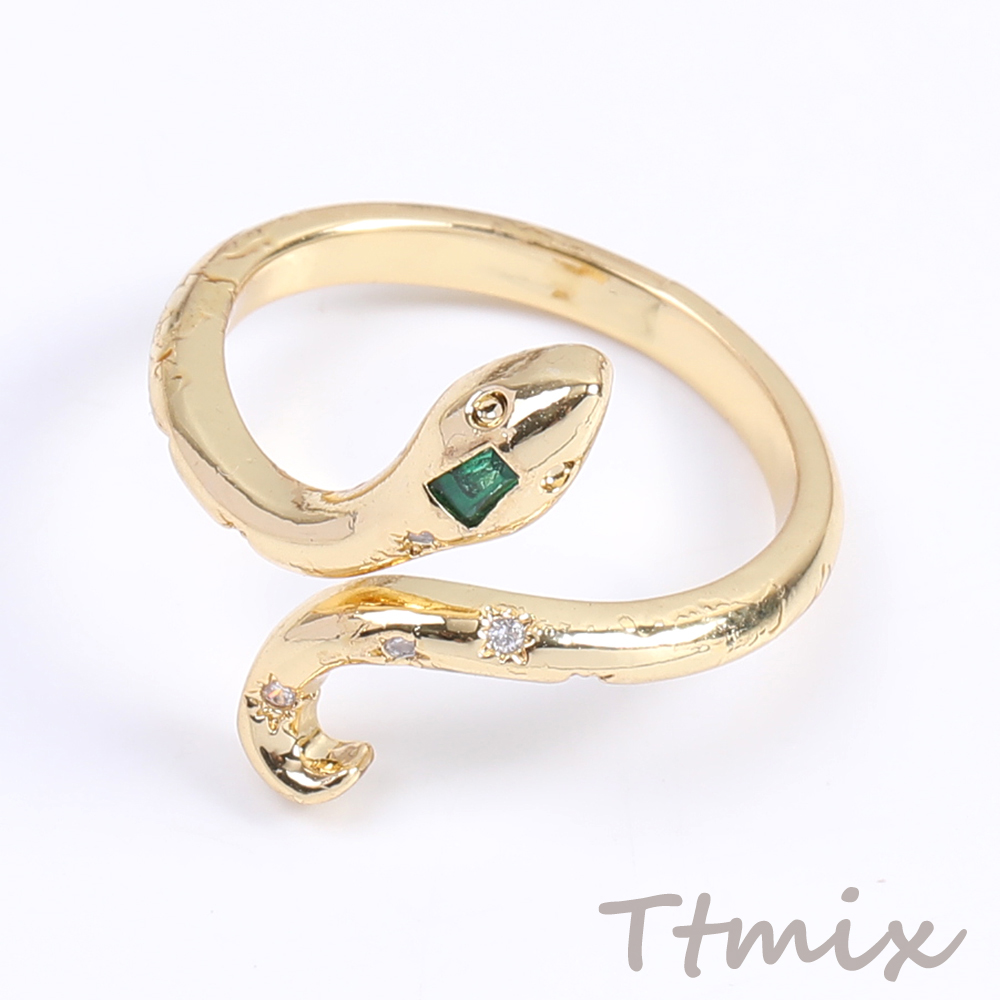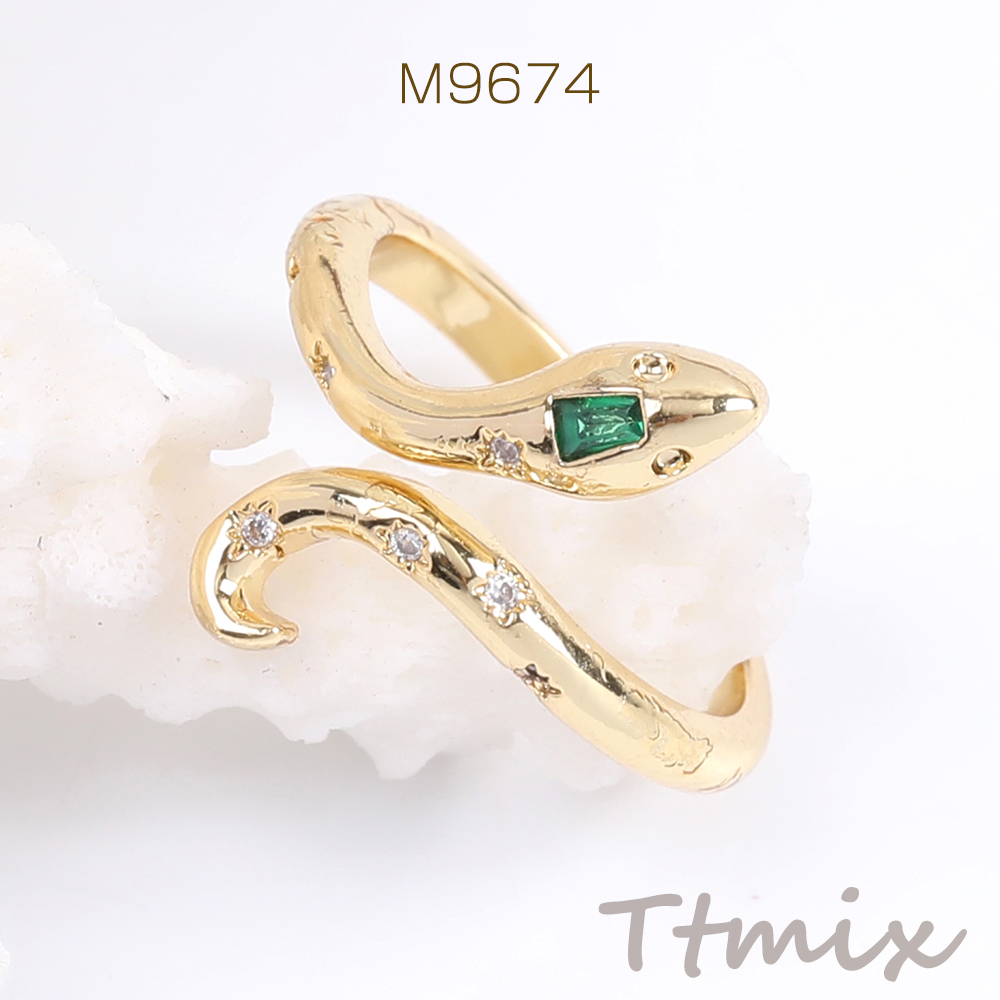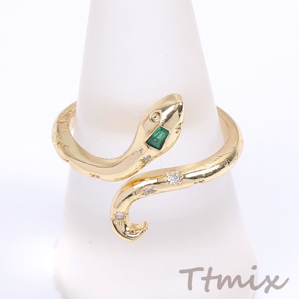 高品質デザインリング 指輪 ジルコニアリング ヘビ型 幅約15mm ゴールド(1ヶ)