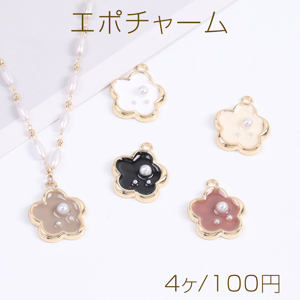 エポチャーム パール付き フラワー 16×19mm ゴールド(4ヶ)