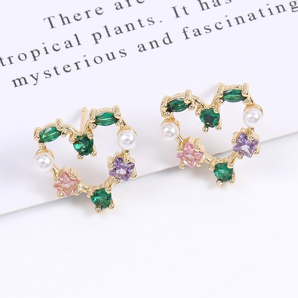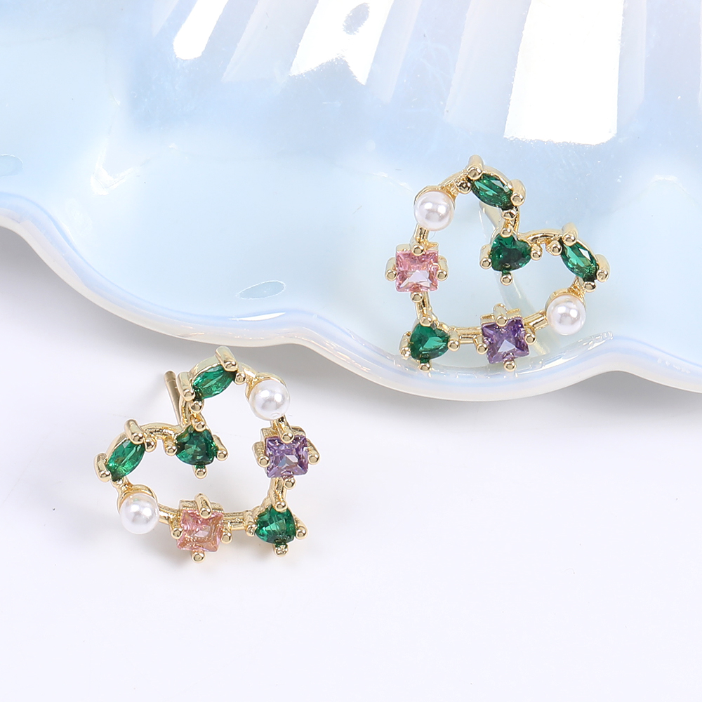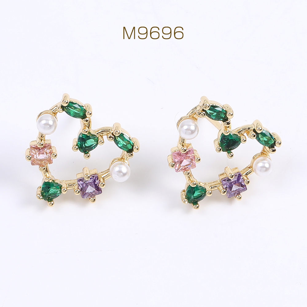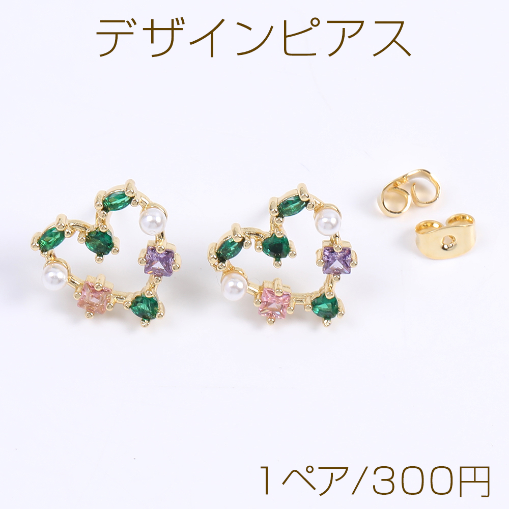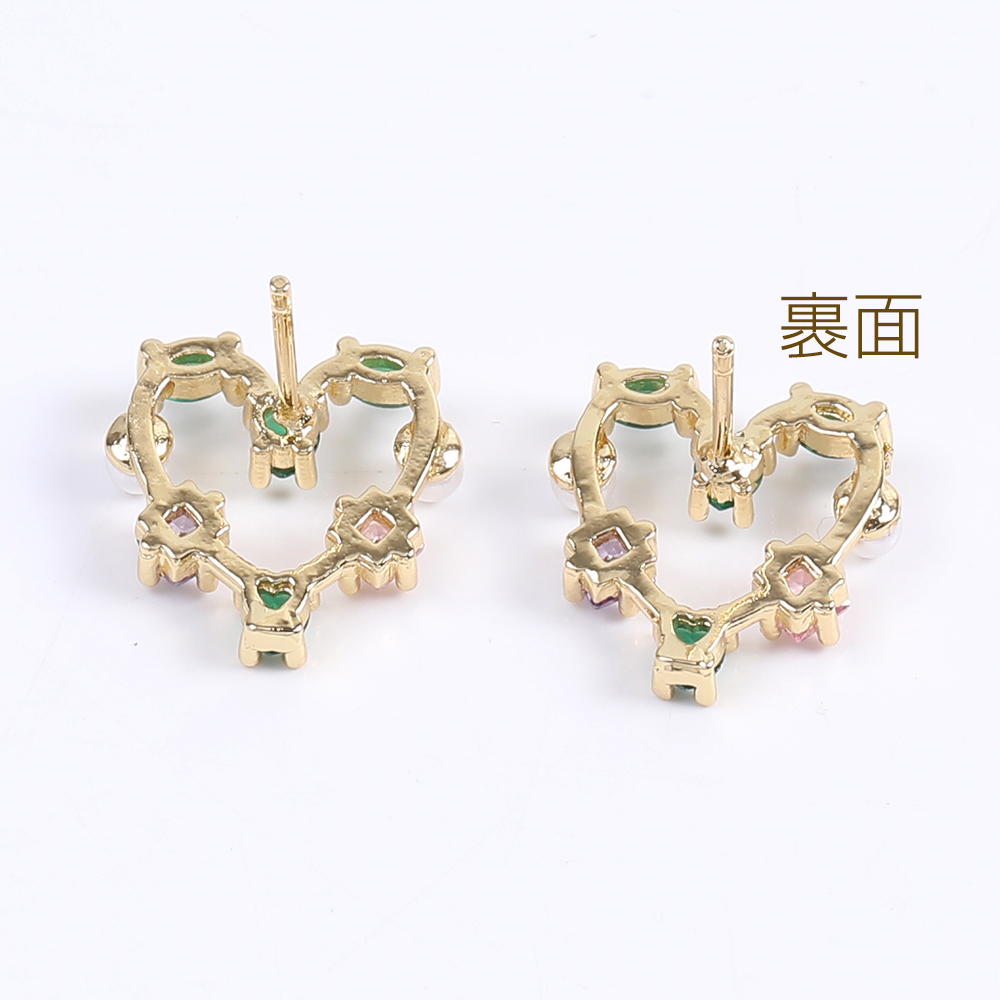 高品質デザインピアス ジルコニアピアス ハート型 15×15mm ゴールド(1ペア)