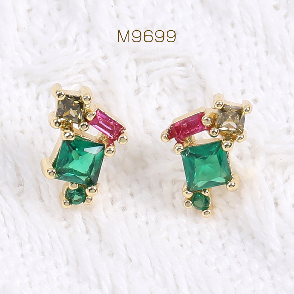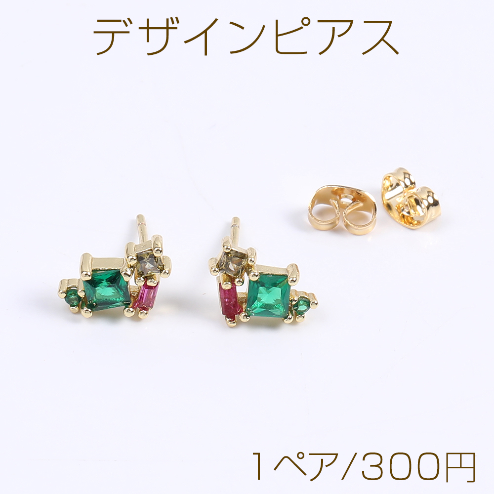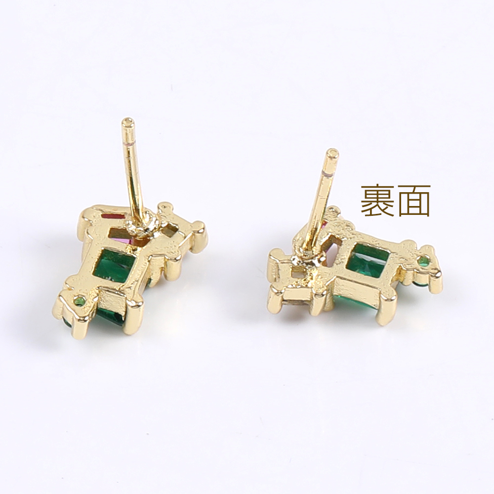高品質デザインピアス ジルコニアピアス 8×11mm ゴールド(1ペア)
