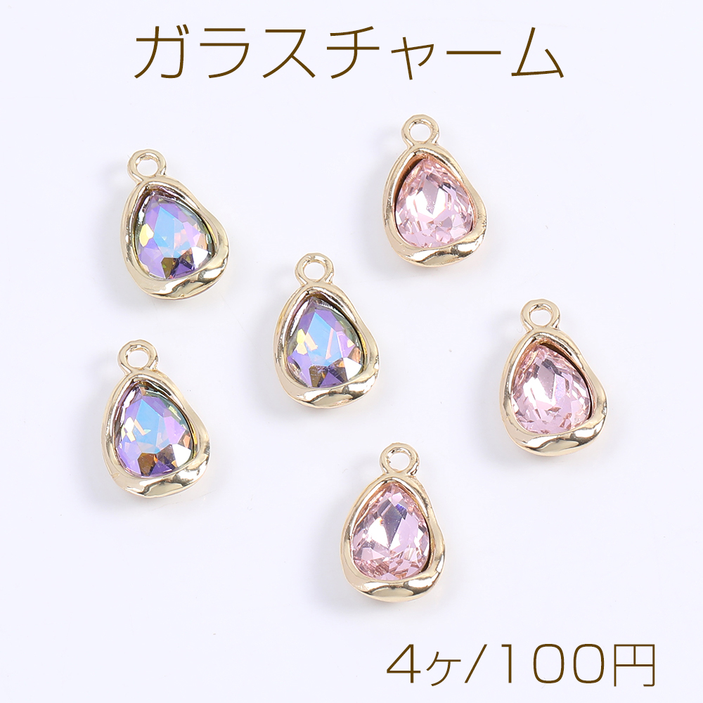 ガラスチャーム しずく型 10×16mm ゴールド(4ヶ)