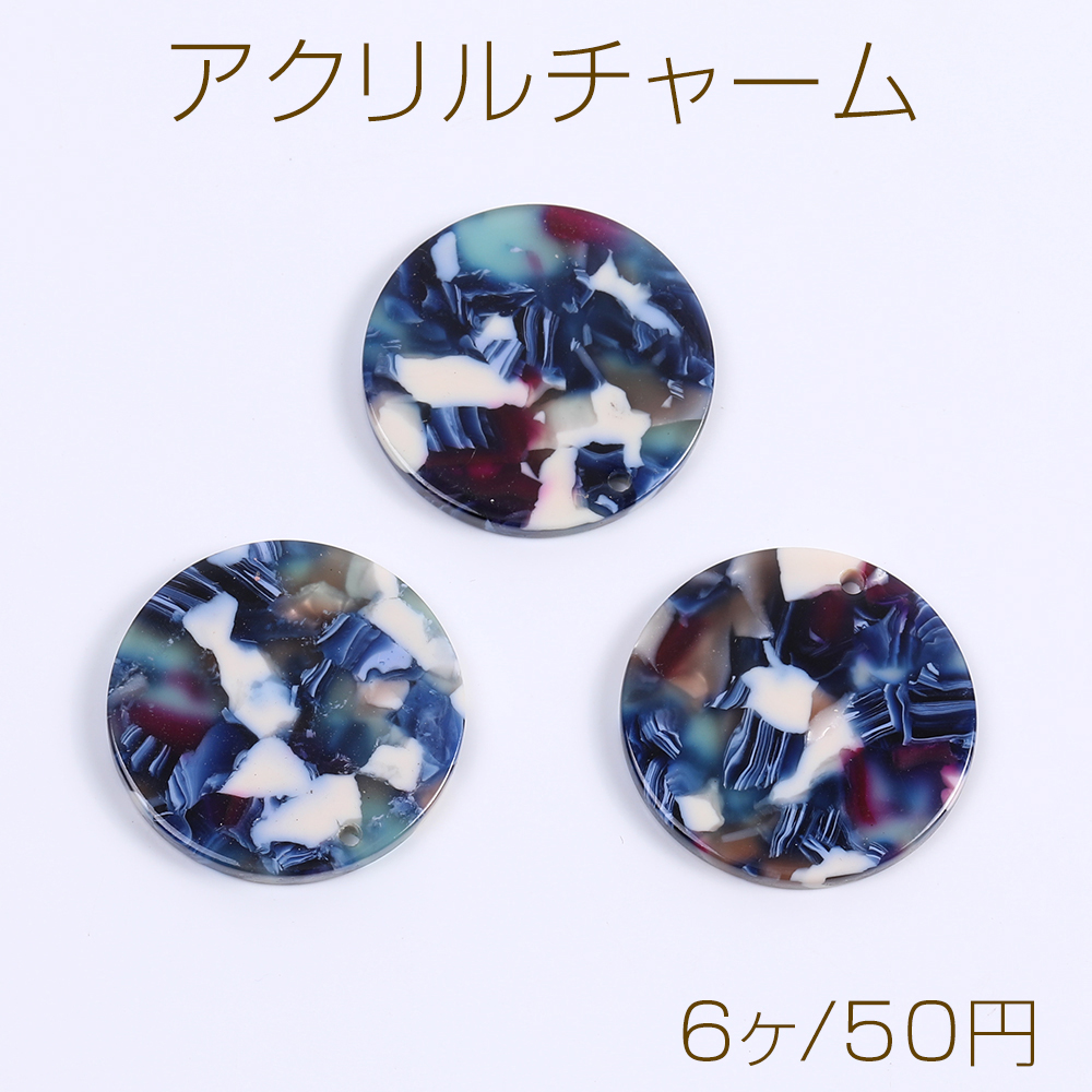 アクリルチャーム ラウンド 1穴 26.5mm ブルー(6ヶ)