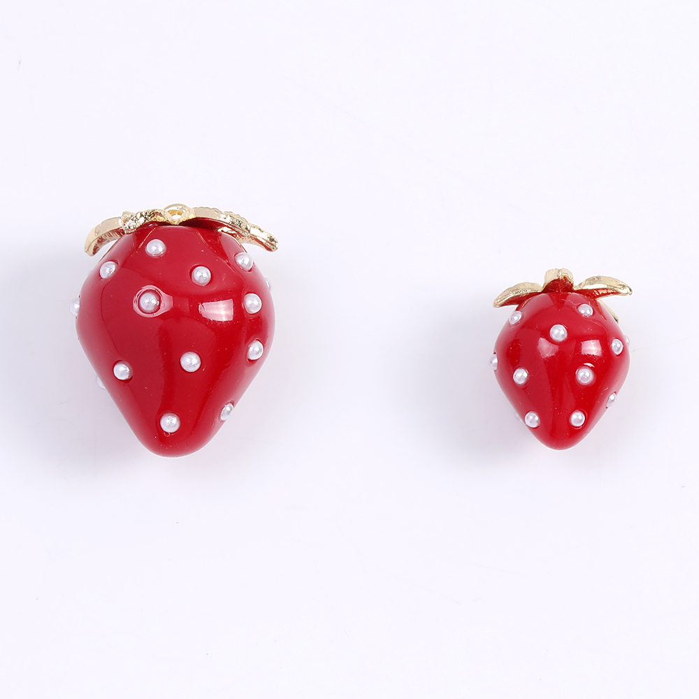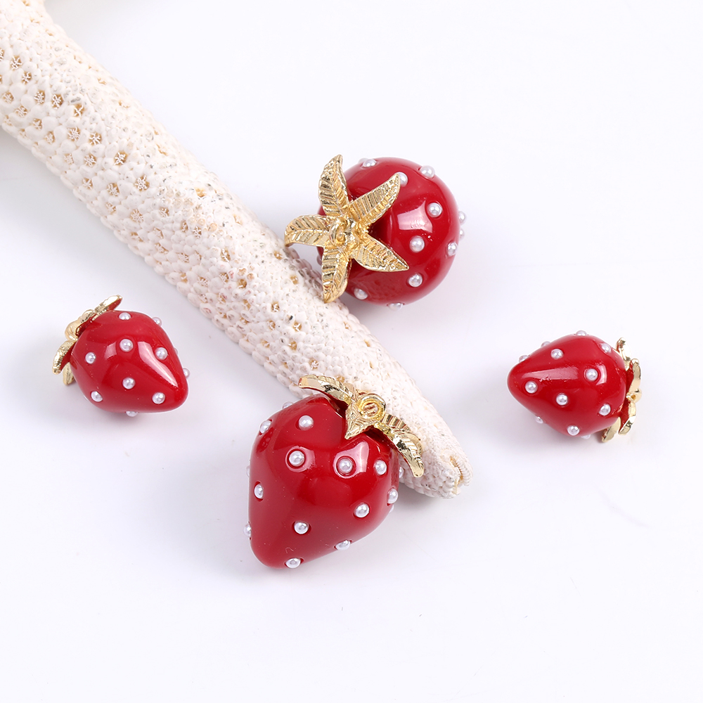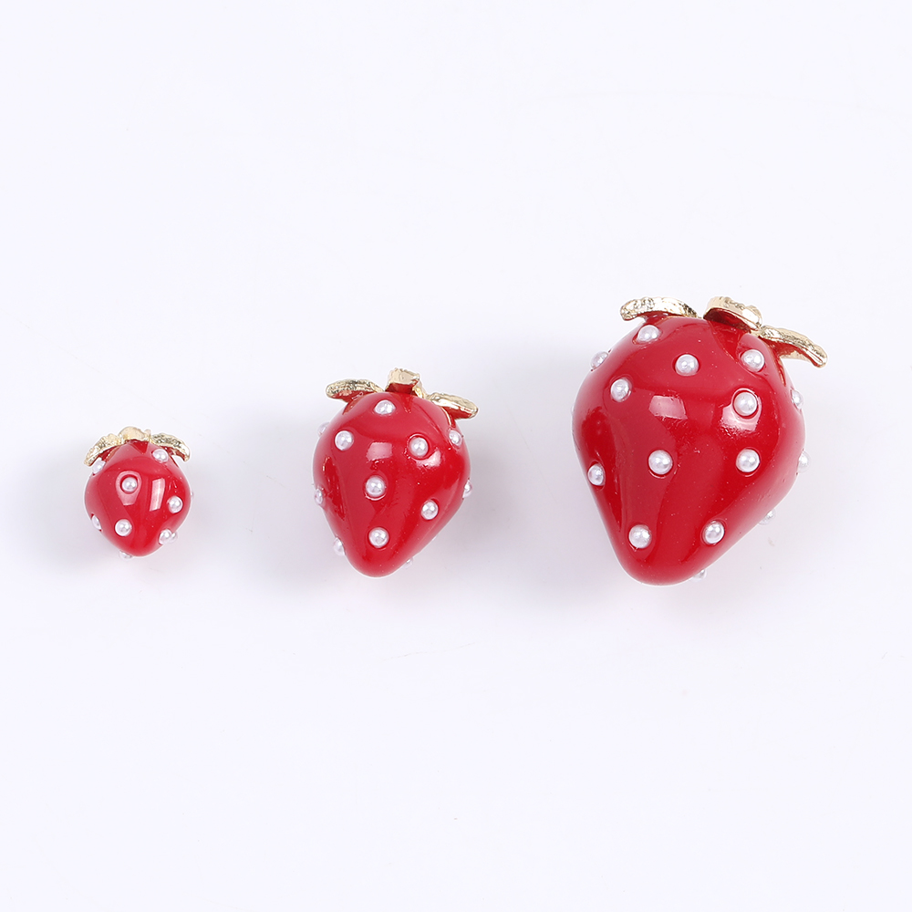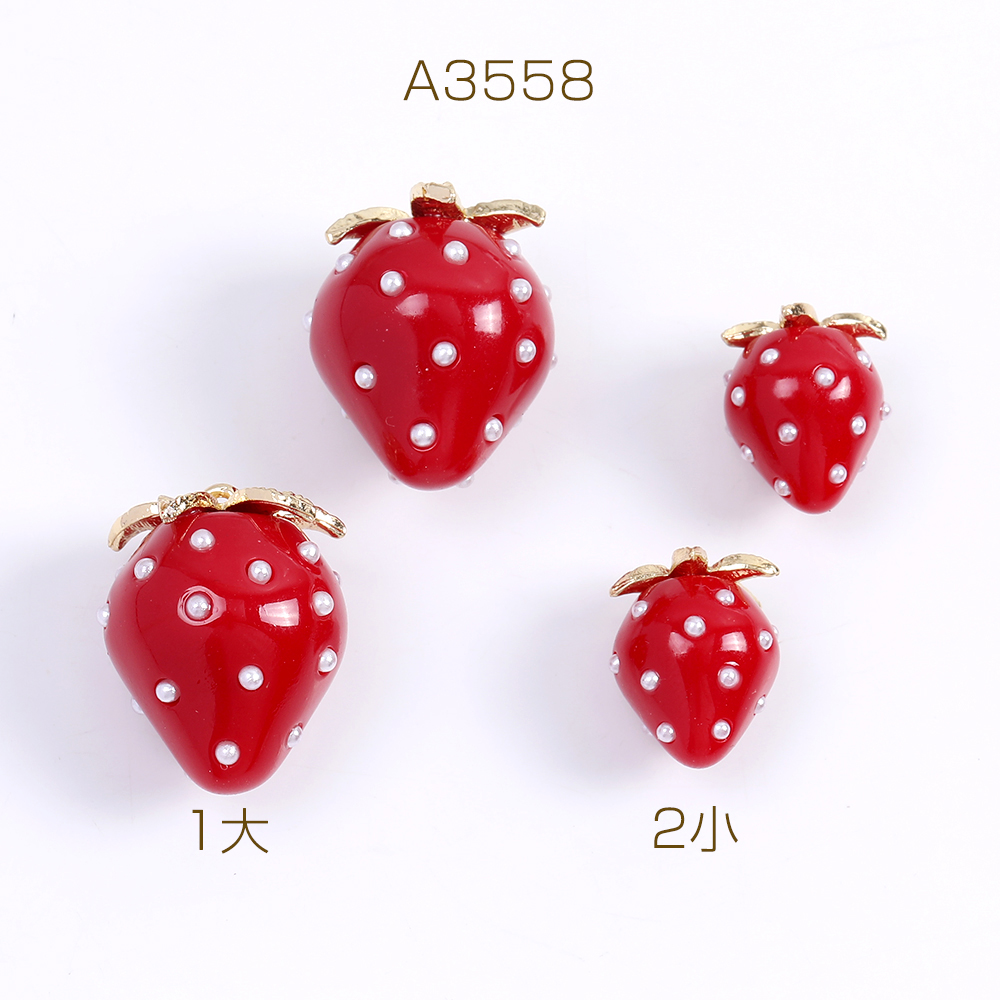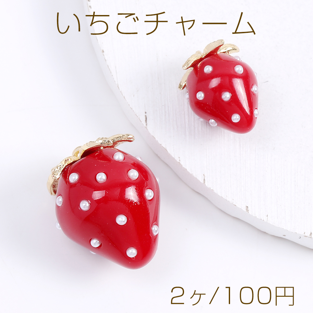 いちごチャーム 樹脂製イチゴチャーム かわいいフルーツチャーム 苺 パール付き レッド(2ヶ)