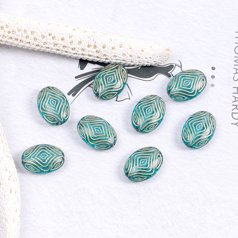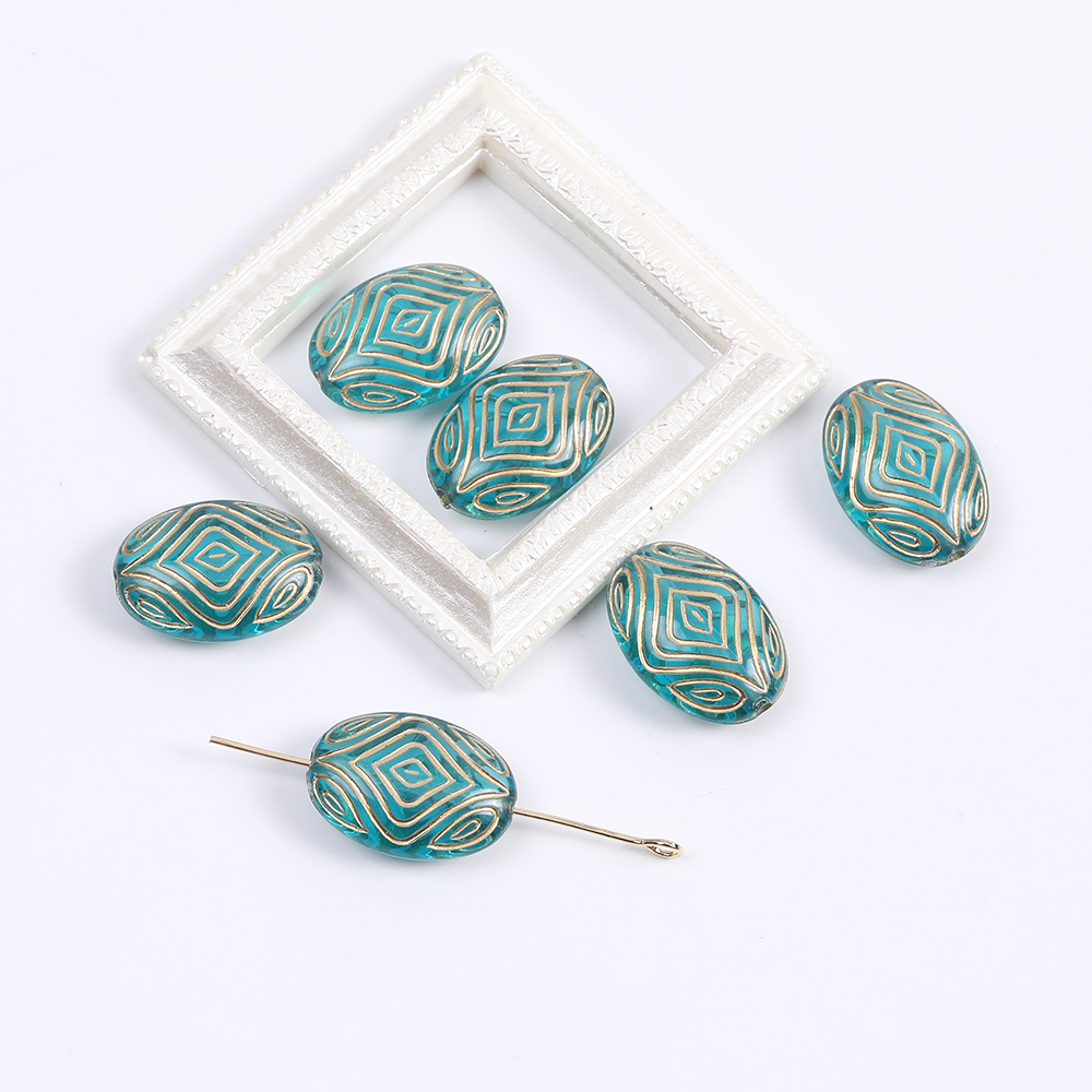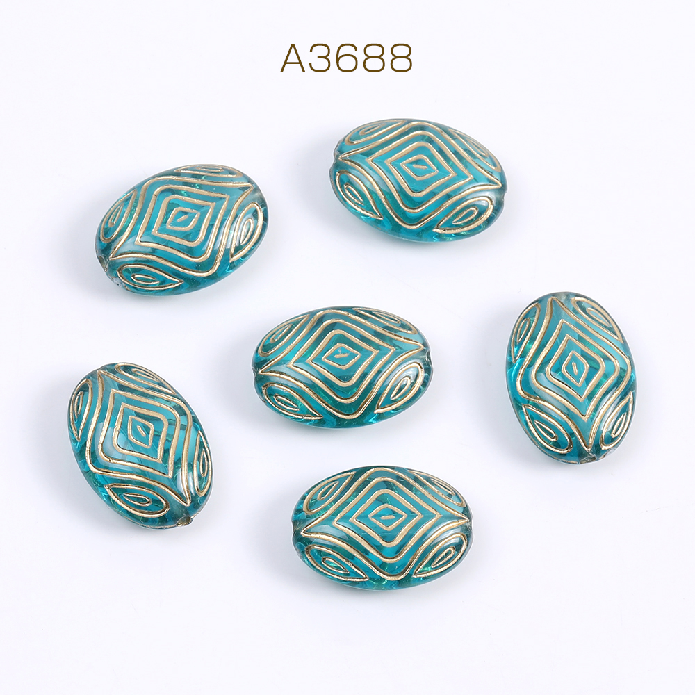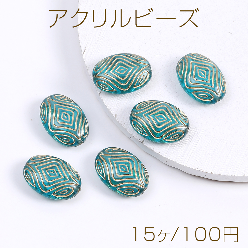 アクリルビーズ オーバル 13×18mm ブルーアンティークゴールド(15ヶ)