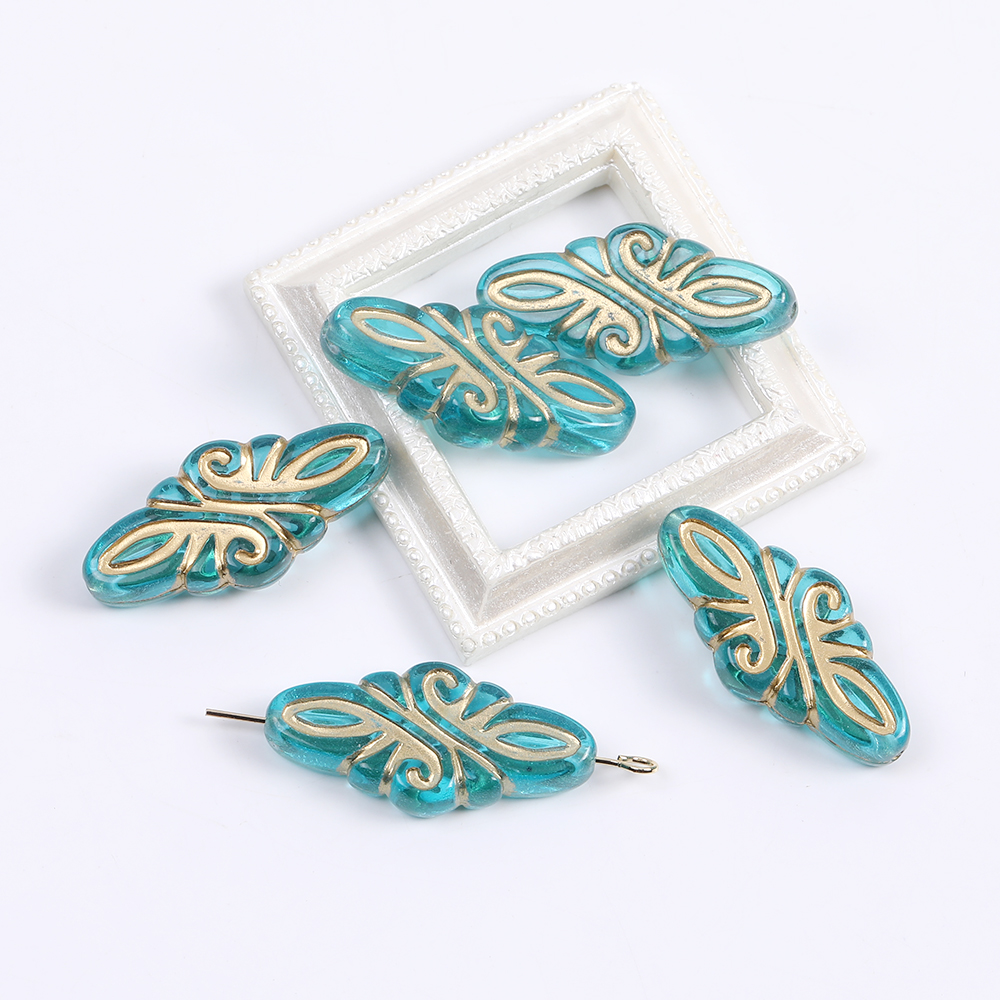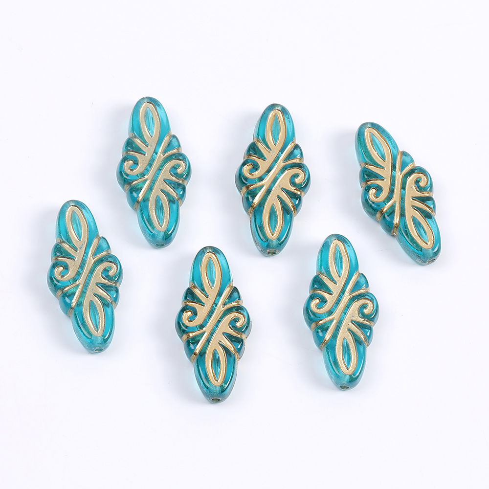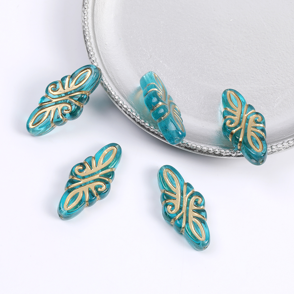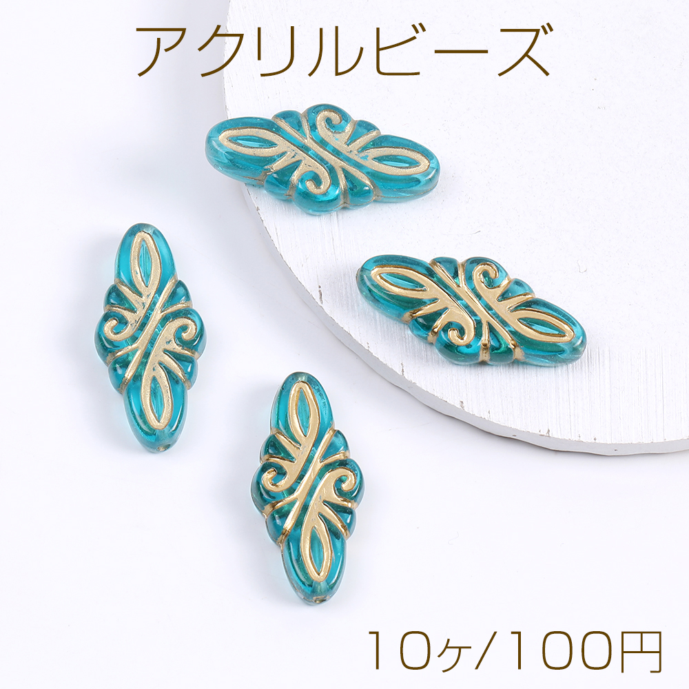 アクリルビーズ ロングオーバル 14×30mm ブルーアンティークゴールド(10ヶ)