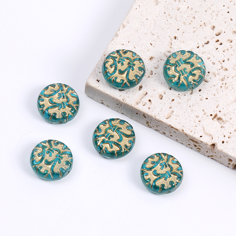 アクリルビーズ コイン型 14mm ブルーアンティークゴールド(25ヶ)