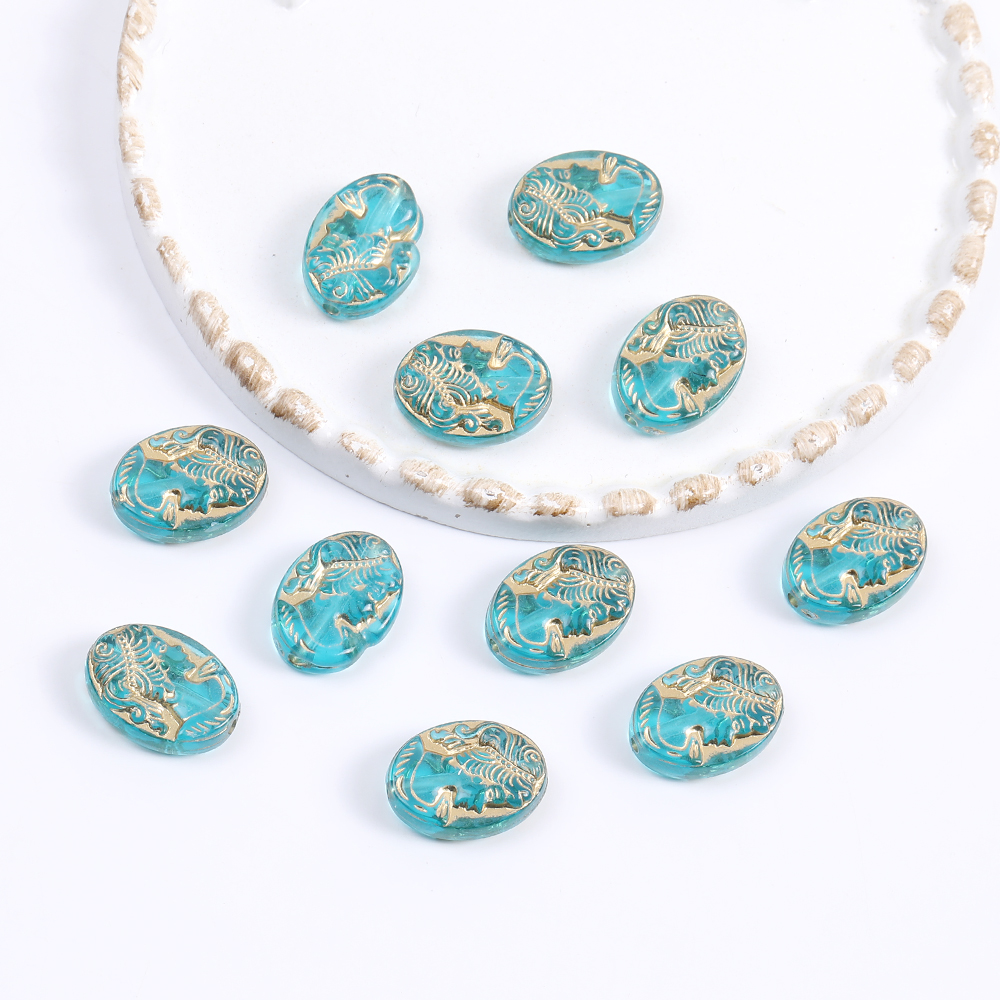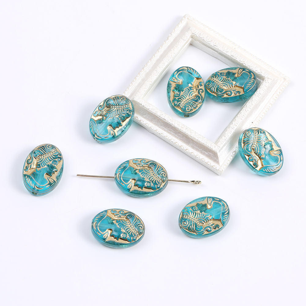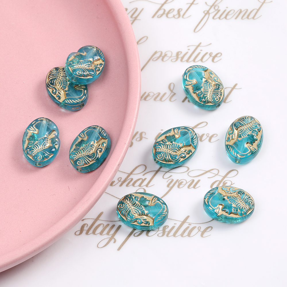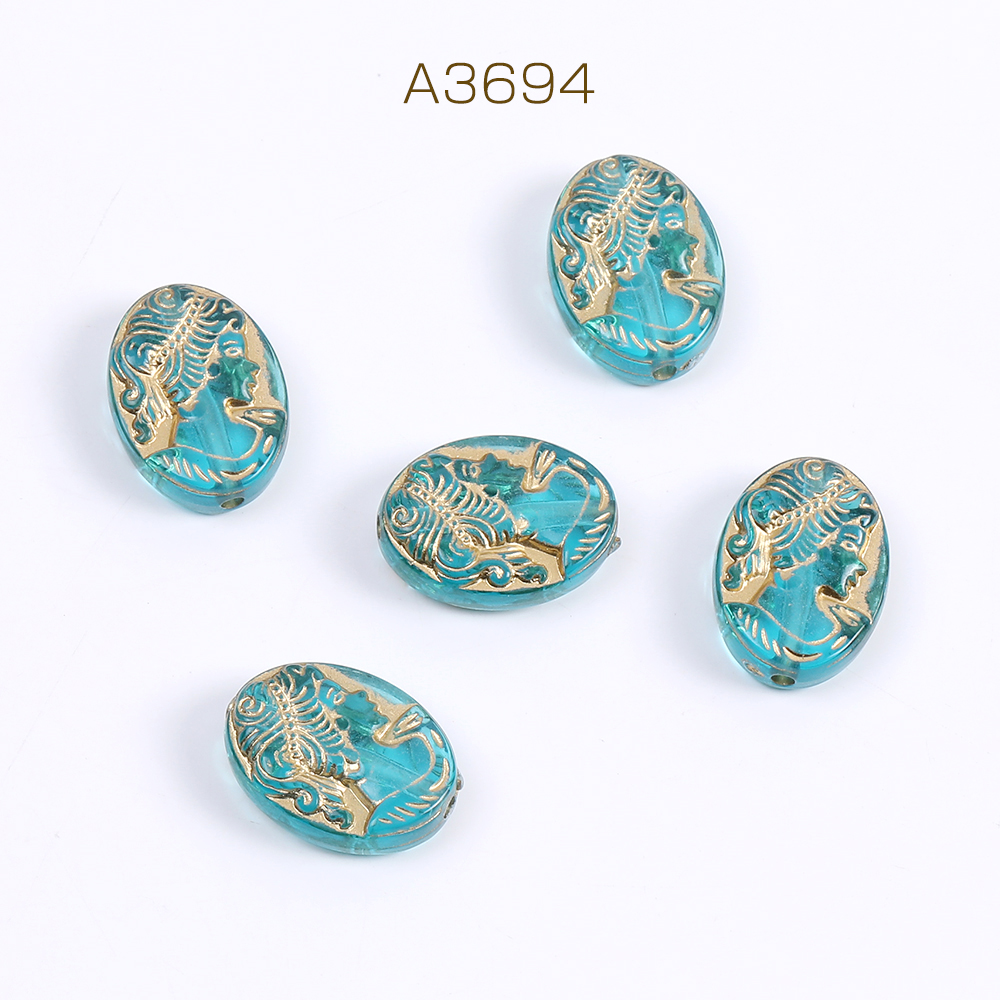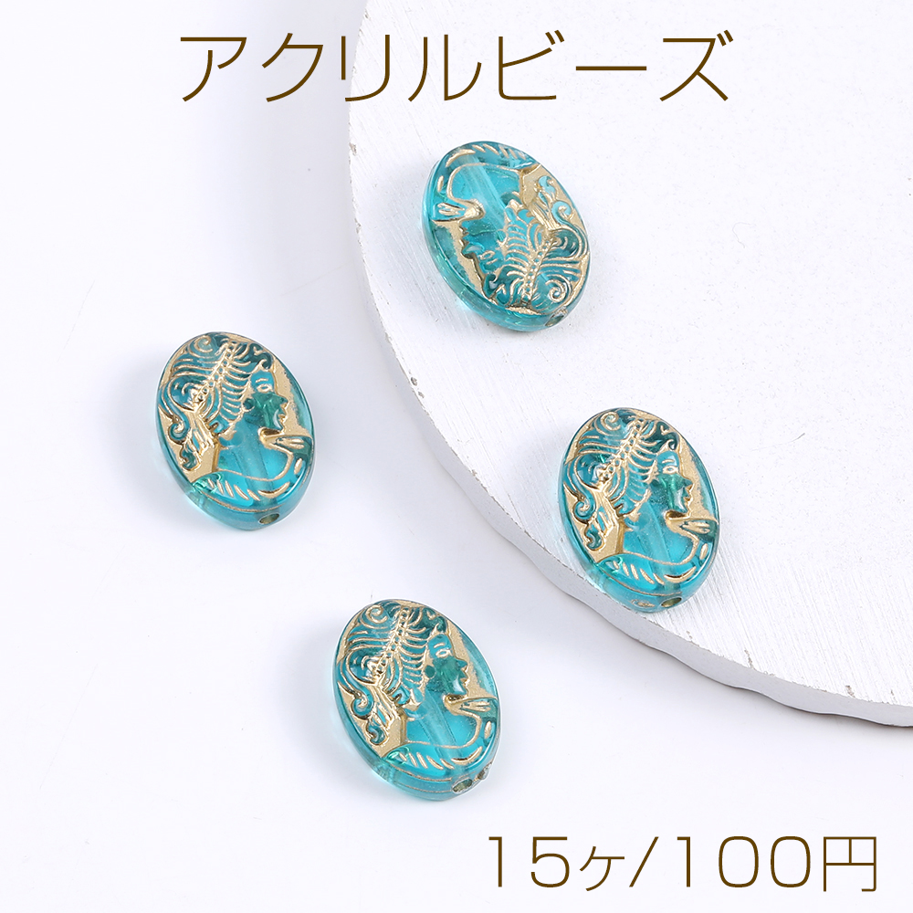 アクリルビーズ オーバル 13×18mm ブルーアンティークゴールド(15ヶ)