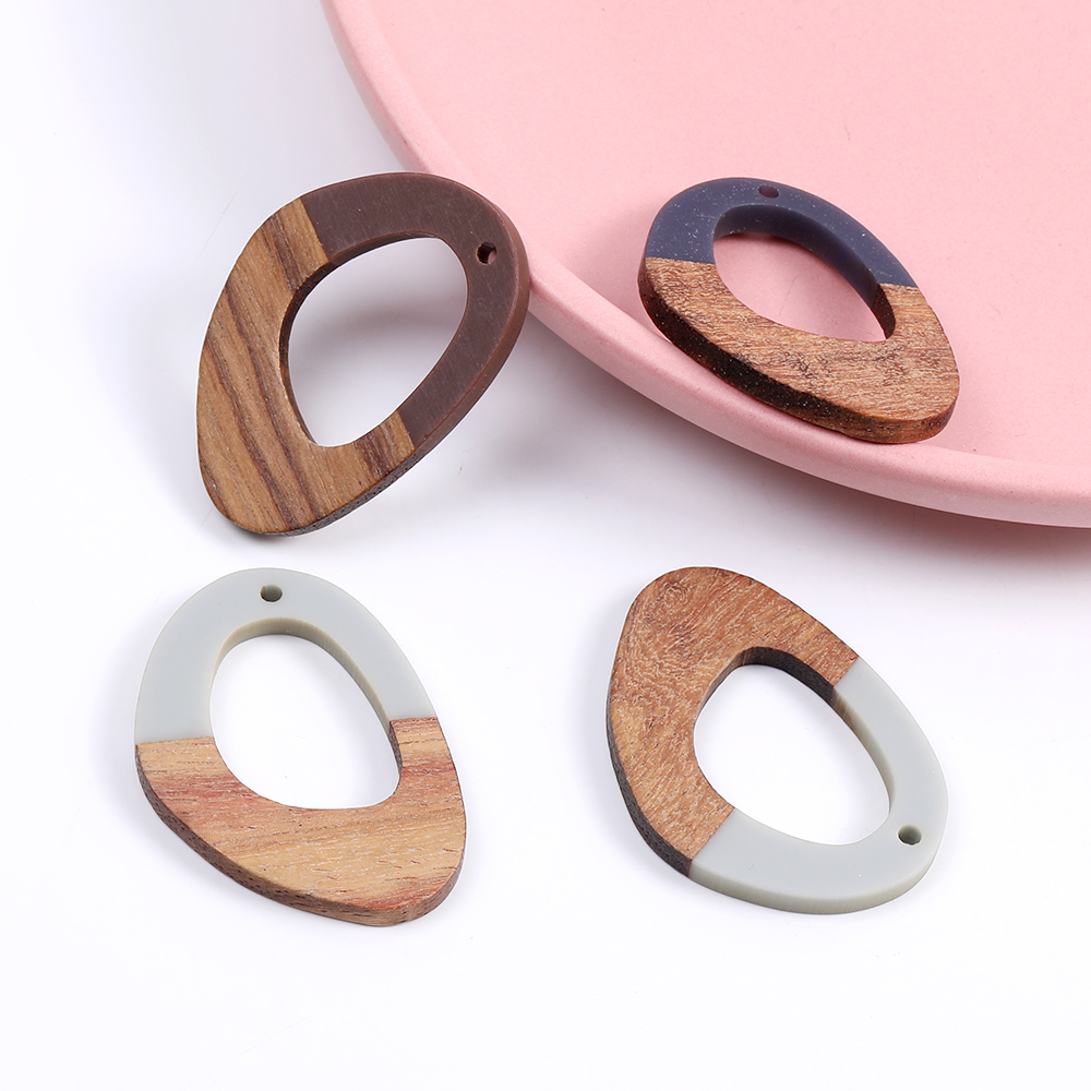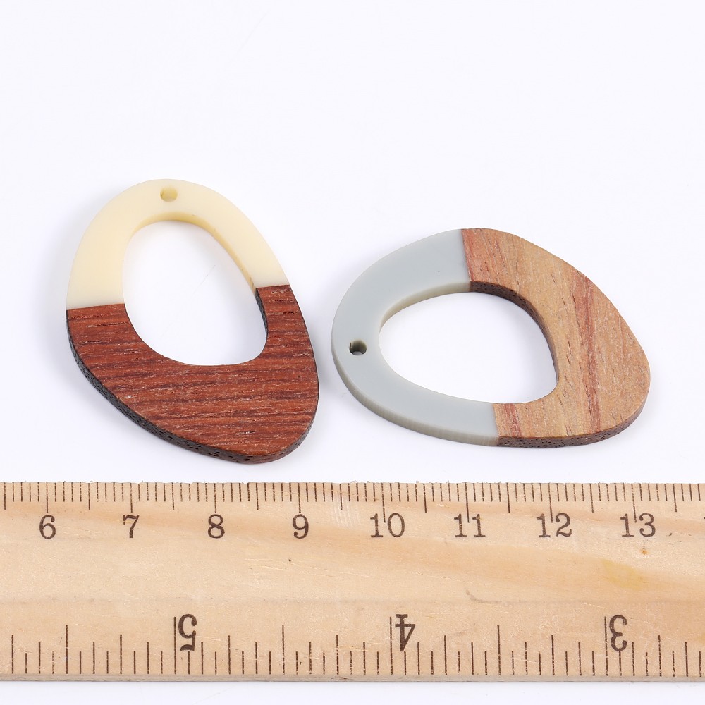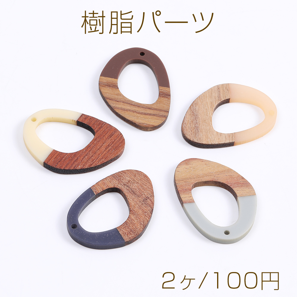 樹脂パーツ 木目付き 不規則型 1穴 28×39mm(2ヶ)