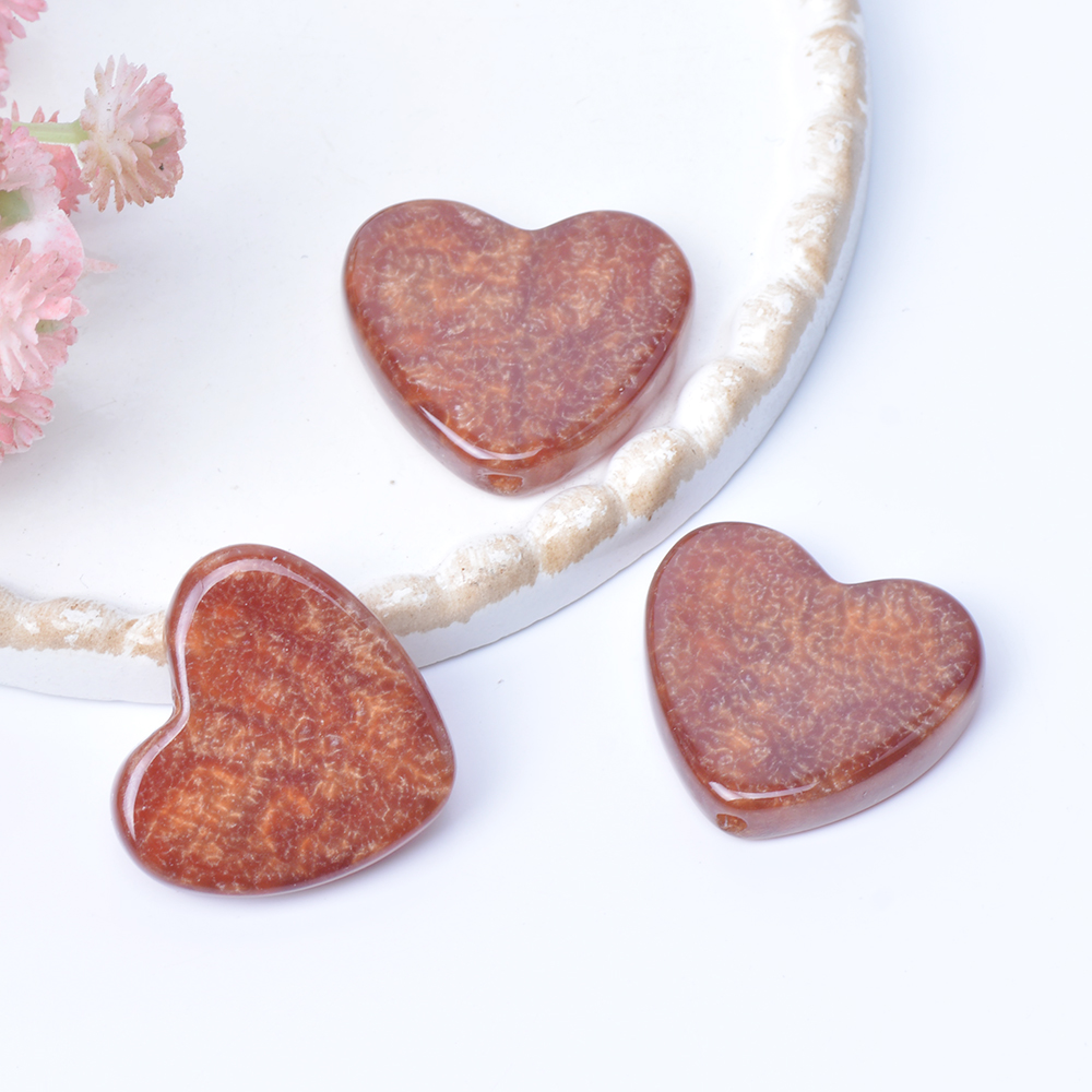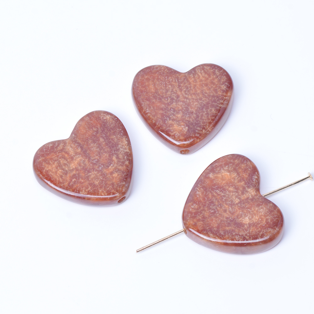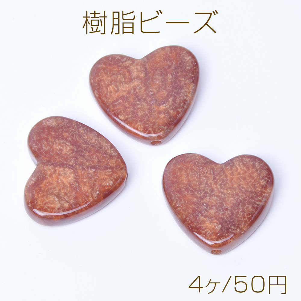 樹脂ビーズ ハート型 23×24mm ブラウン(4ヶ)