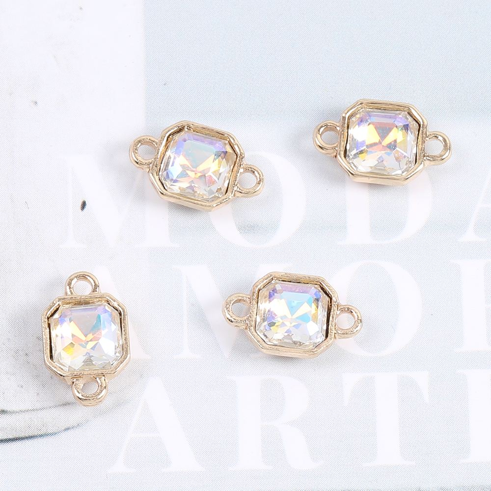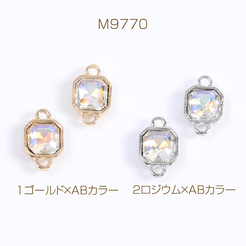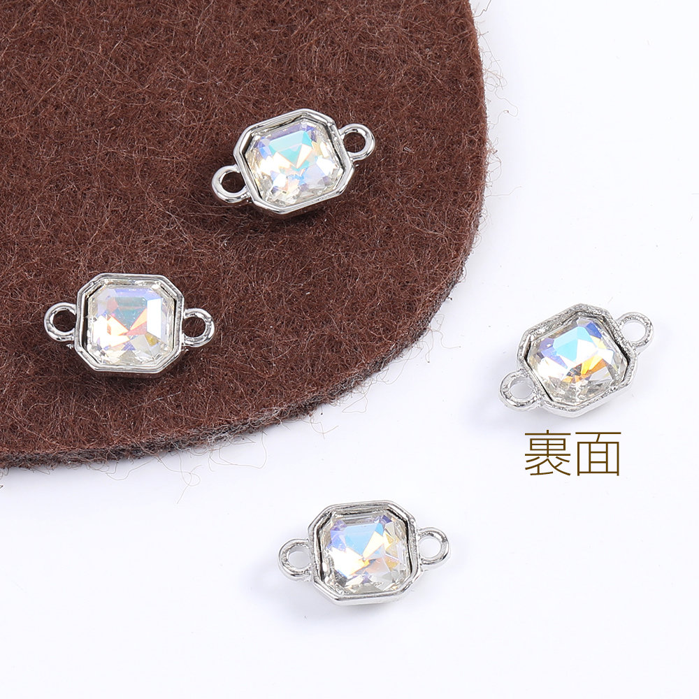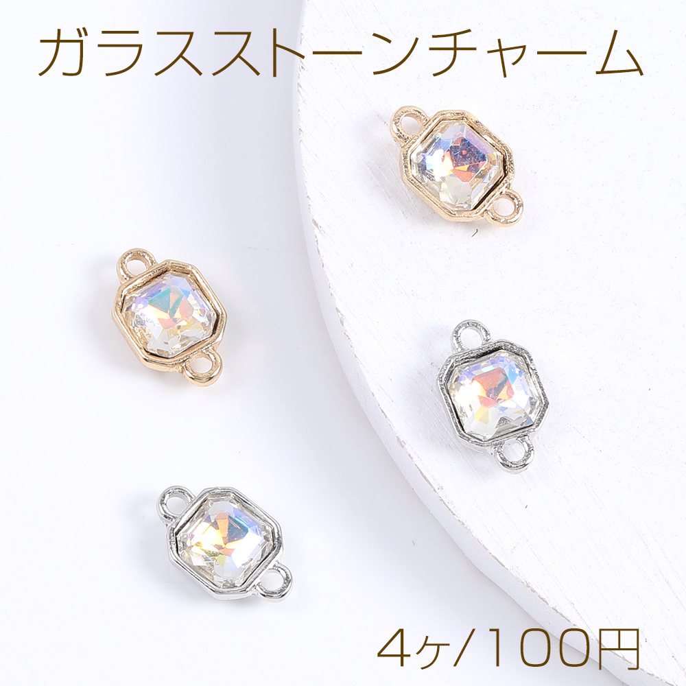 ガラスストーンチャーム ガラスストーンコネクターチャーム スクエア型 2カン付き 7.5×12mm(4ヶ)