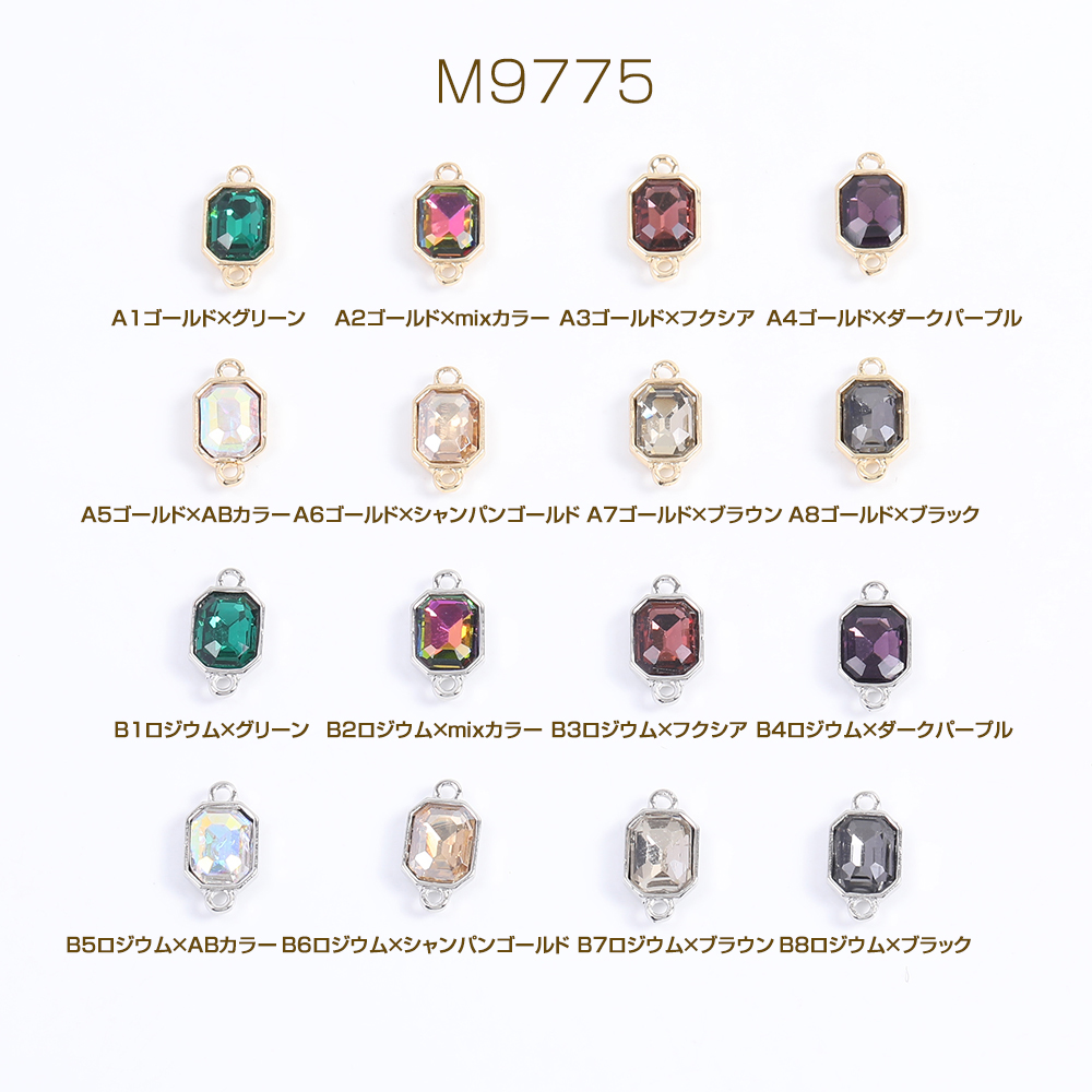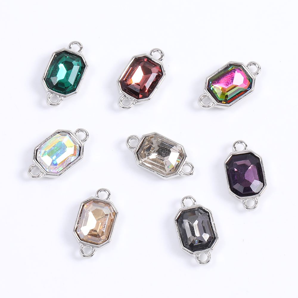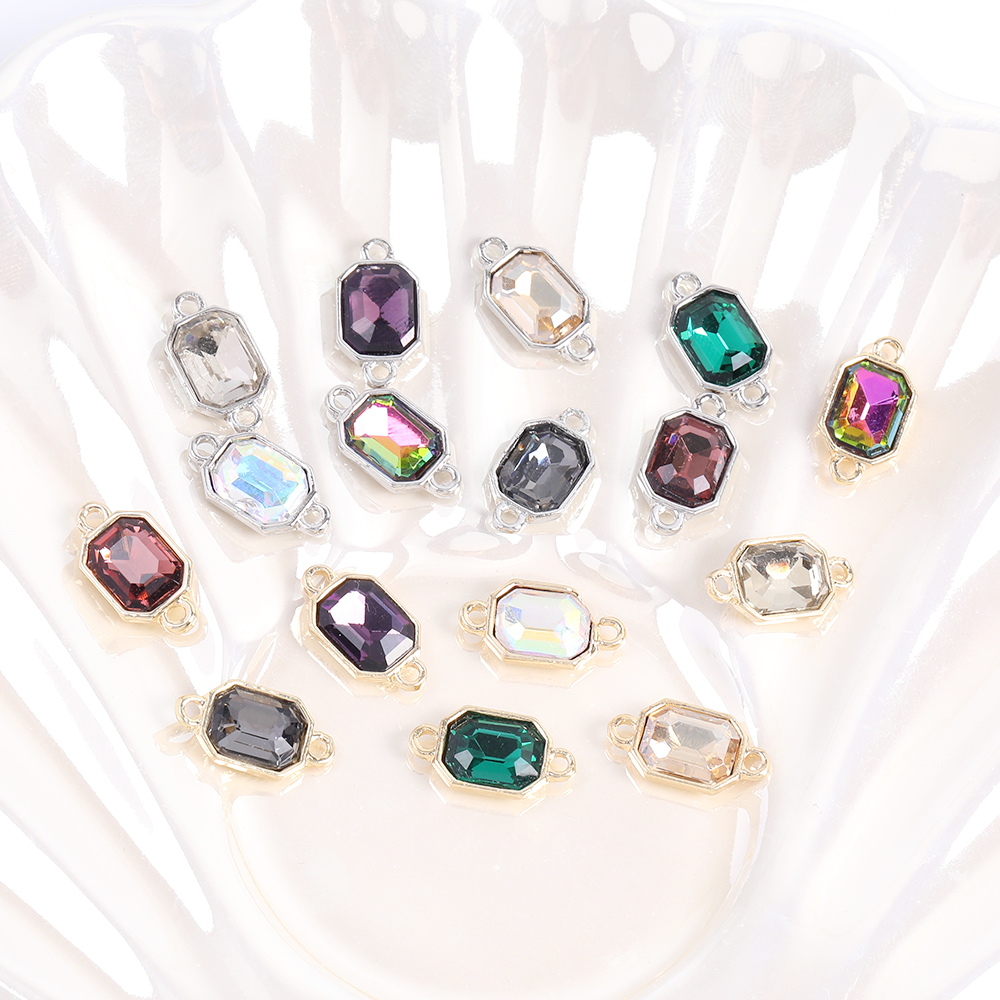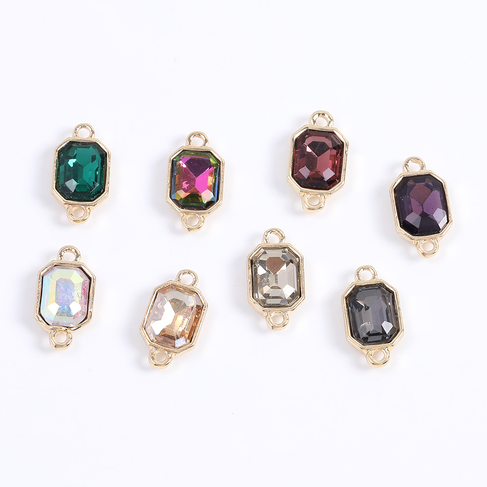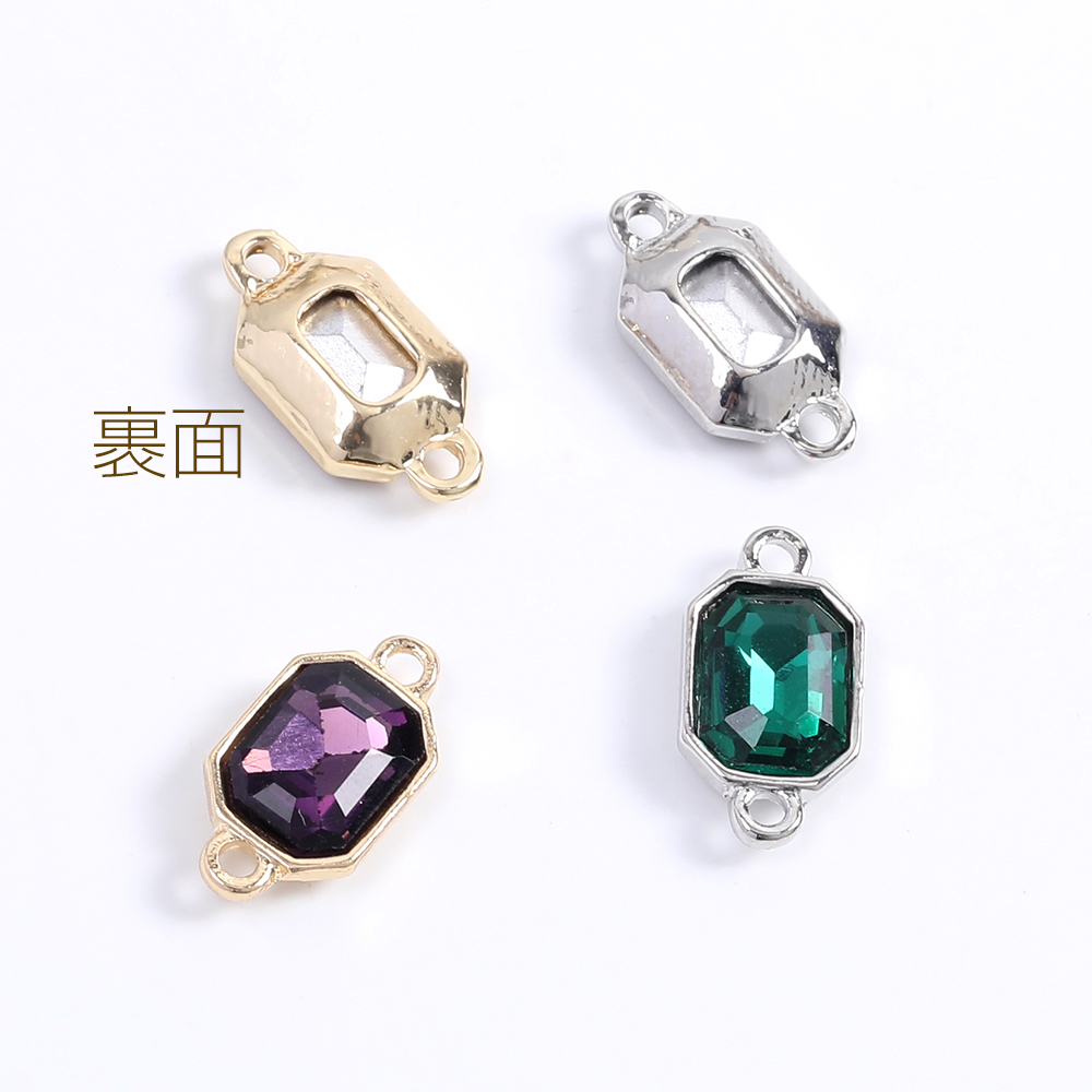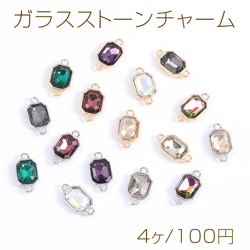 ガラスストーンチャーム ガラスストーンコネクターチャーム 長方形型 2カン付き 8×15mm(4ヶ)